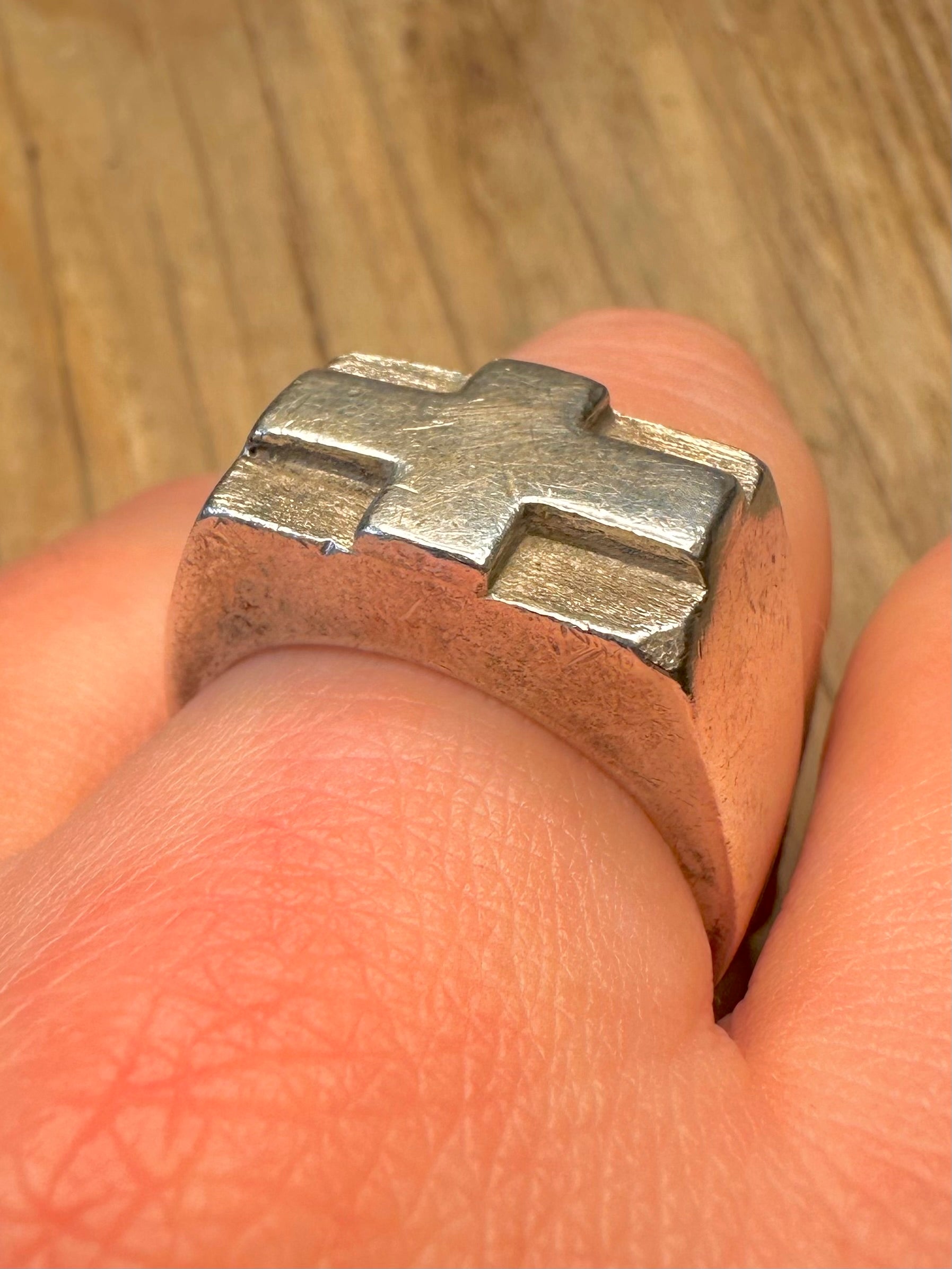 Vintage Chunky Heavy Cross 925 Sterling Silver Size W Ring