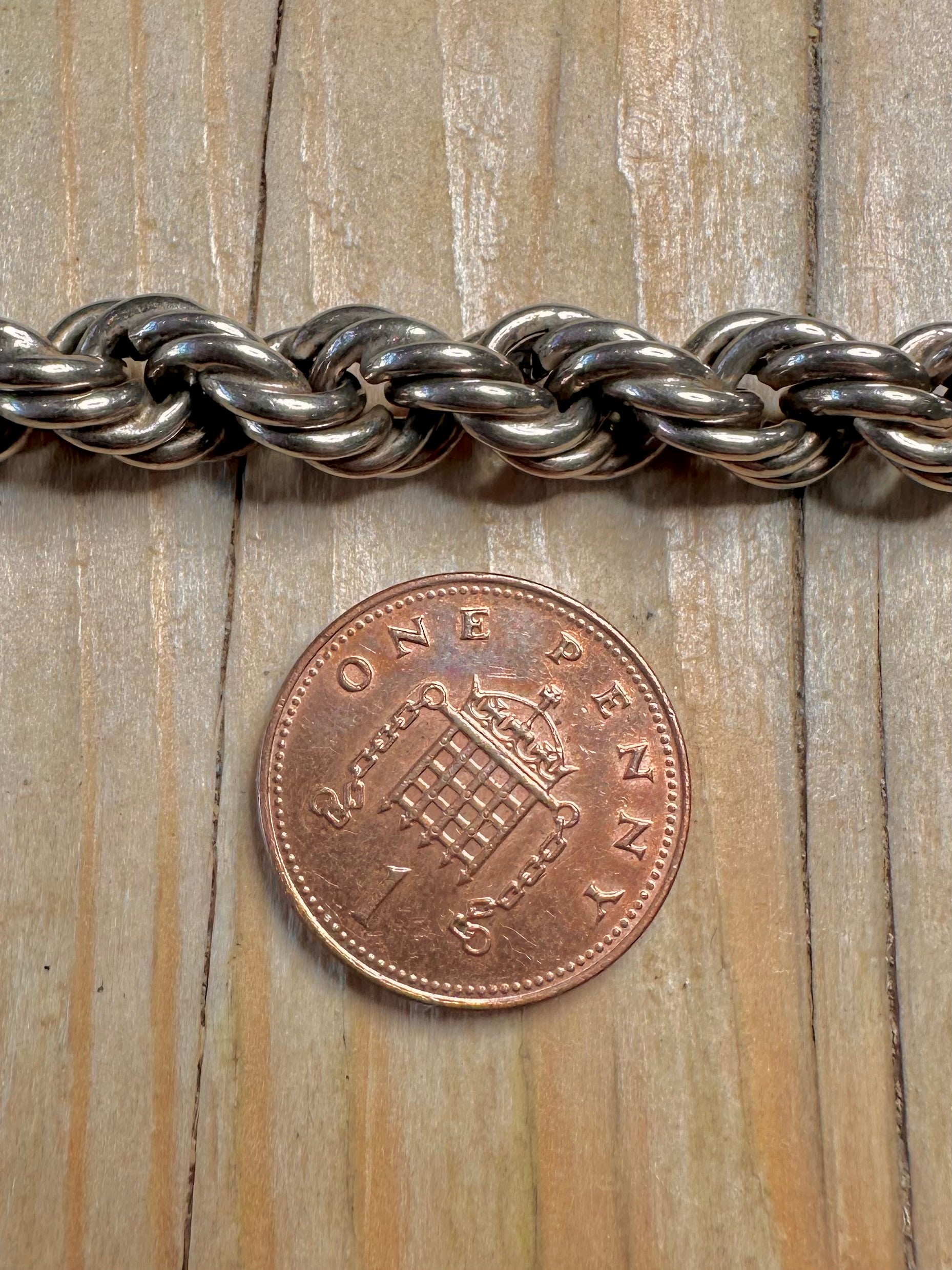 Vintage Chunky Rope Chain 925 Sterling Silver 7.8 inch Bracelet