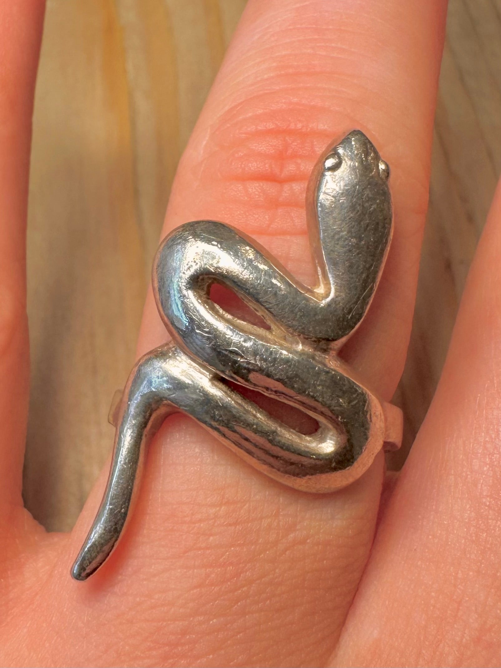 Vintage Chunky Snake 925 Sterling Silver Size R Ring