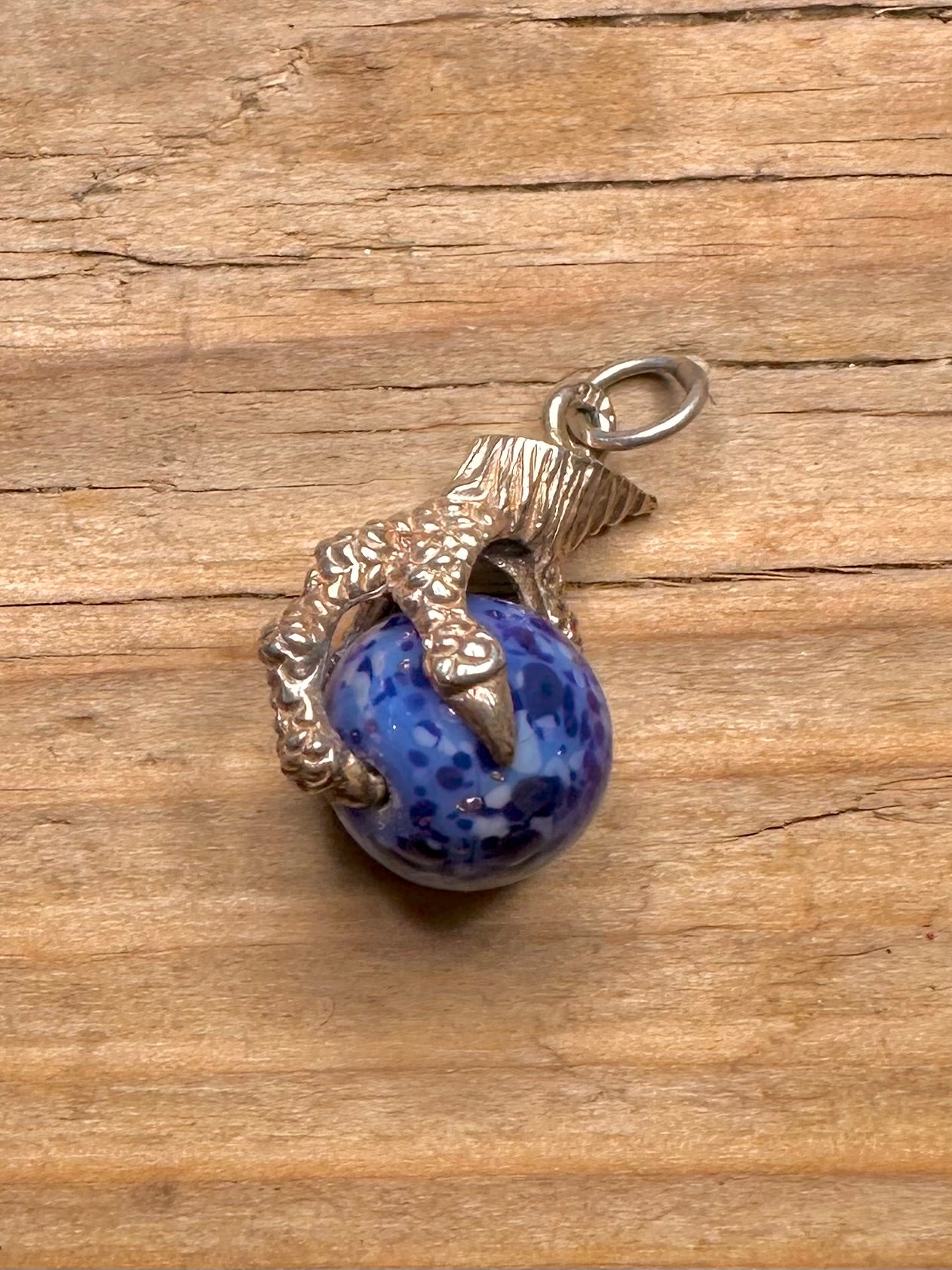 Vintage Claw Textured Blue and White Ball 925 Sterling Silver Charm Pendant