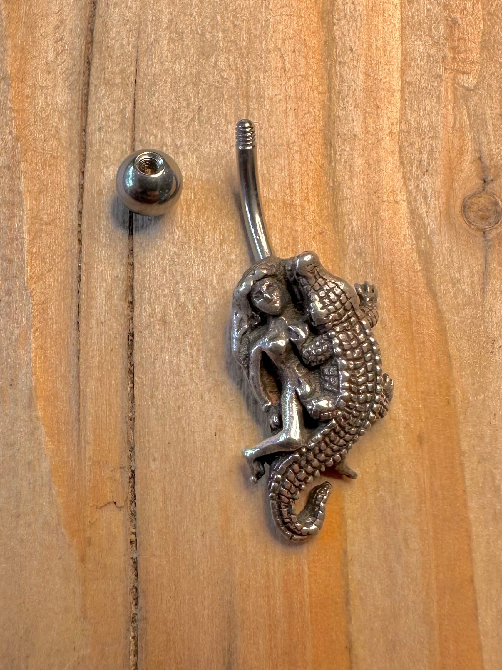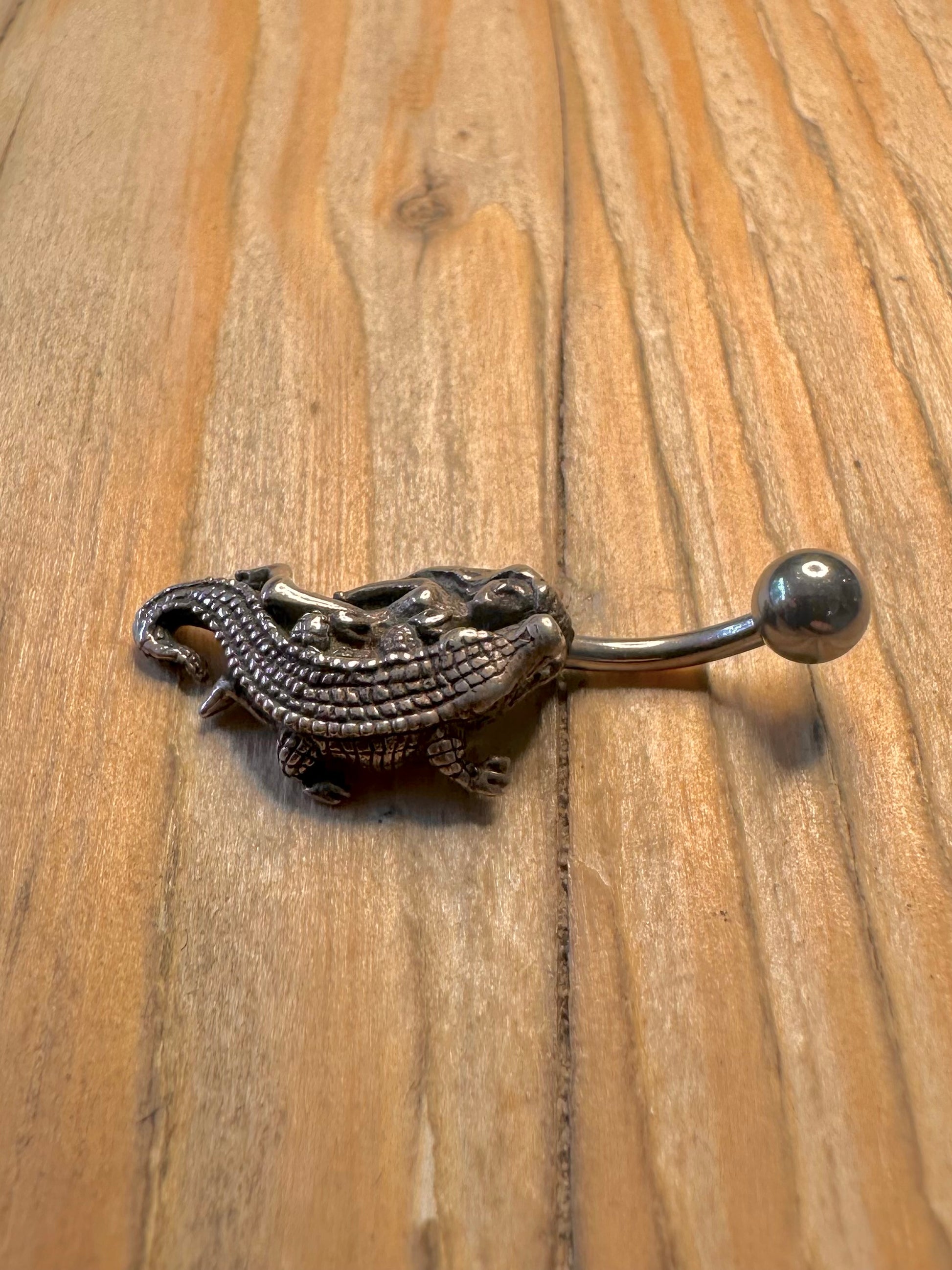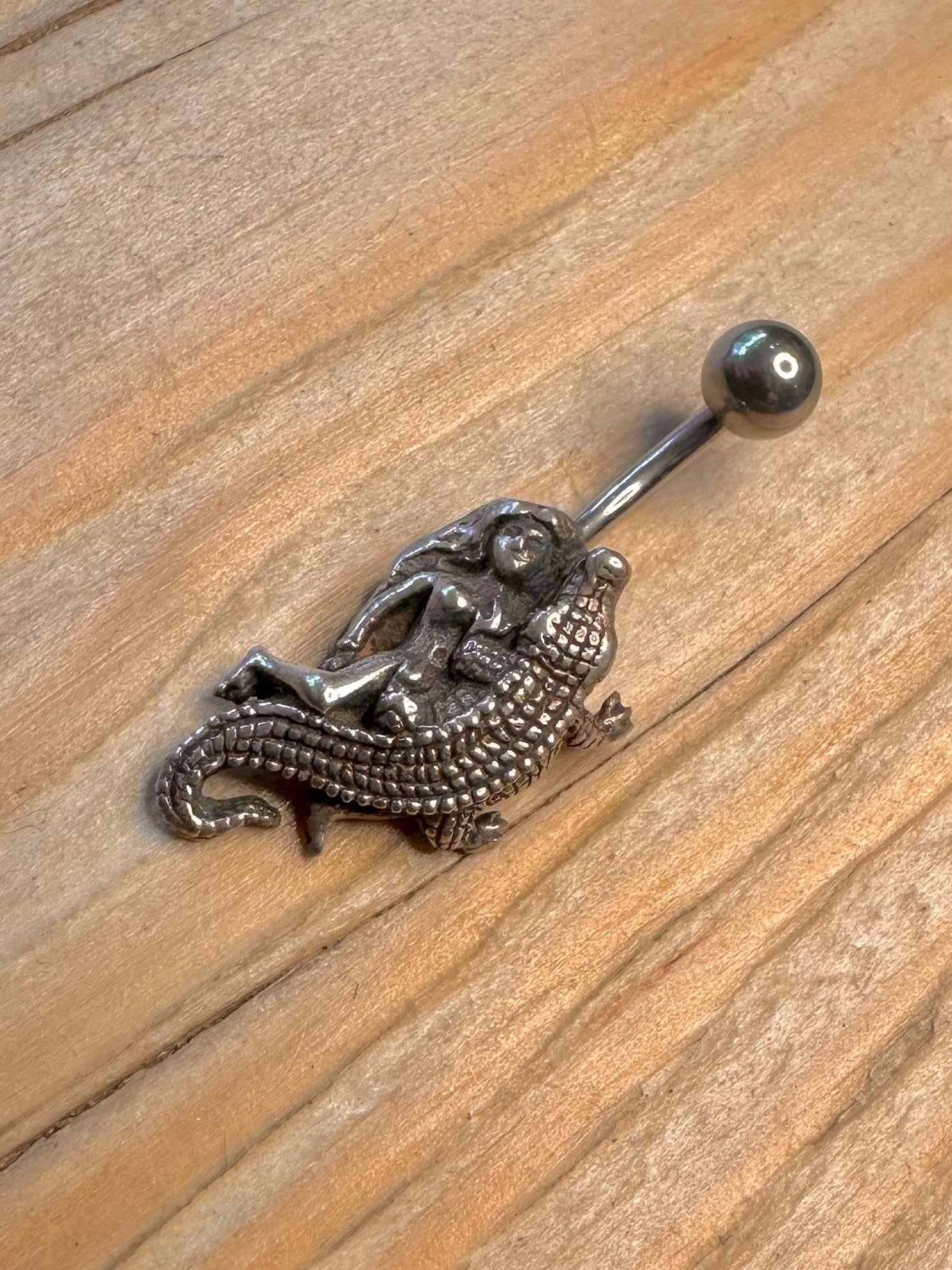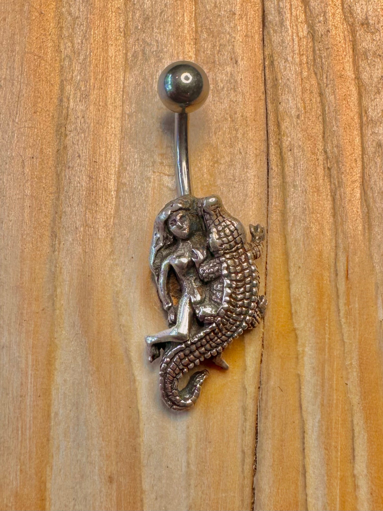 Vintage Crocodile and Mermaid 925 Sterling Silver Belly Bar Body Jewellery