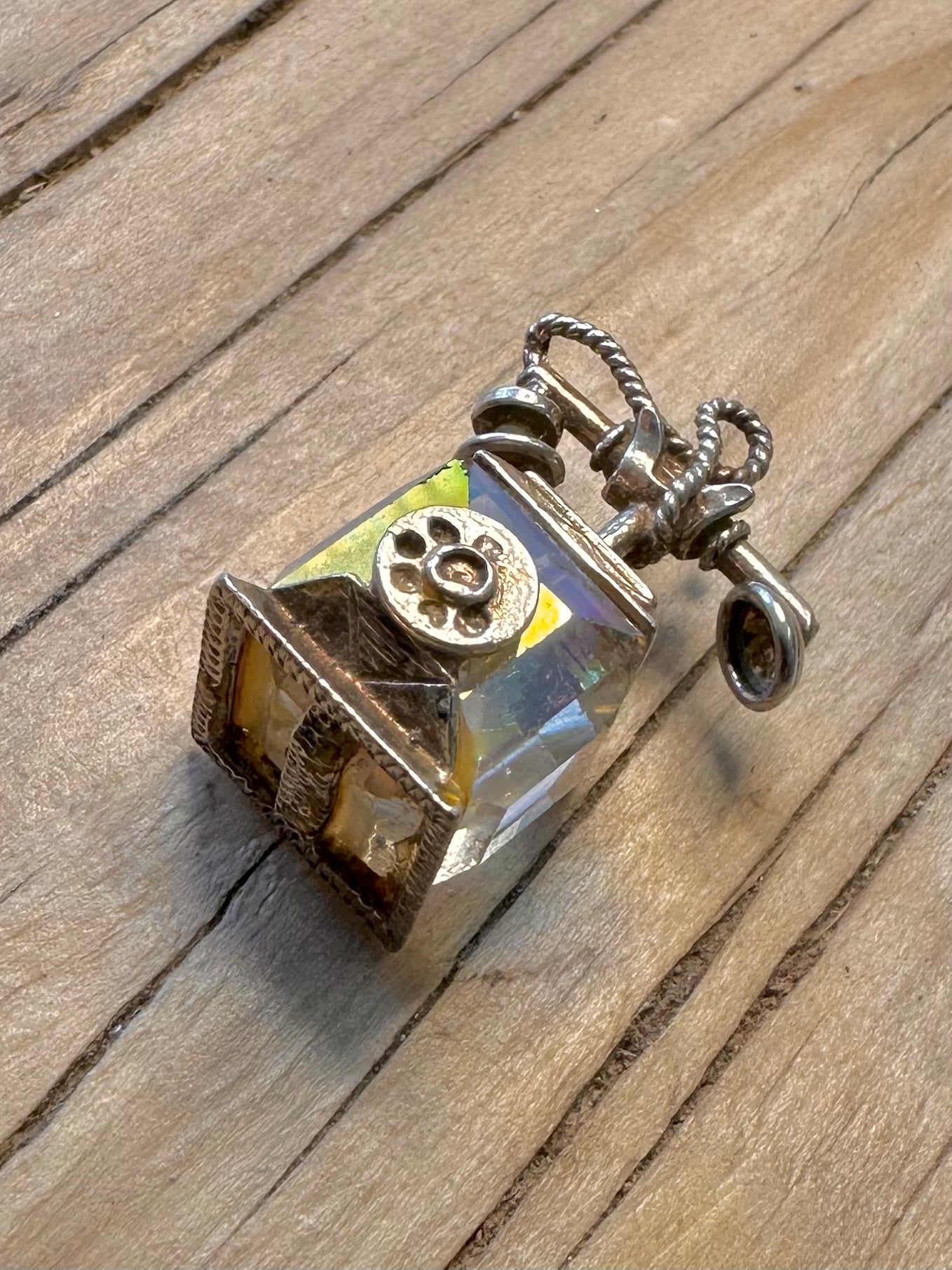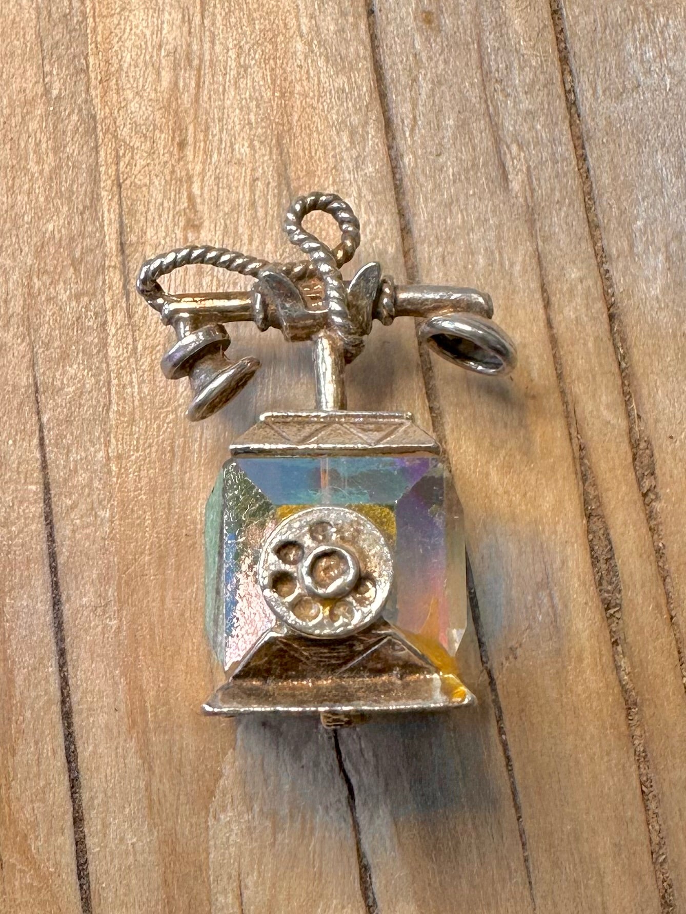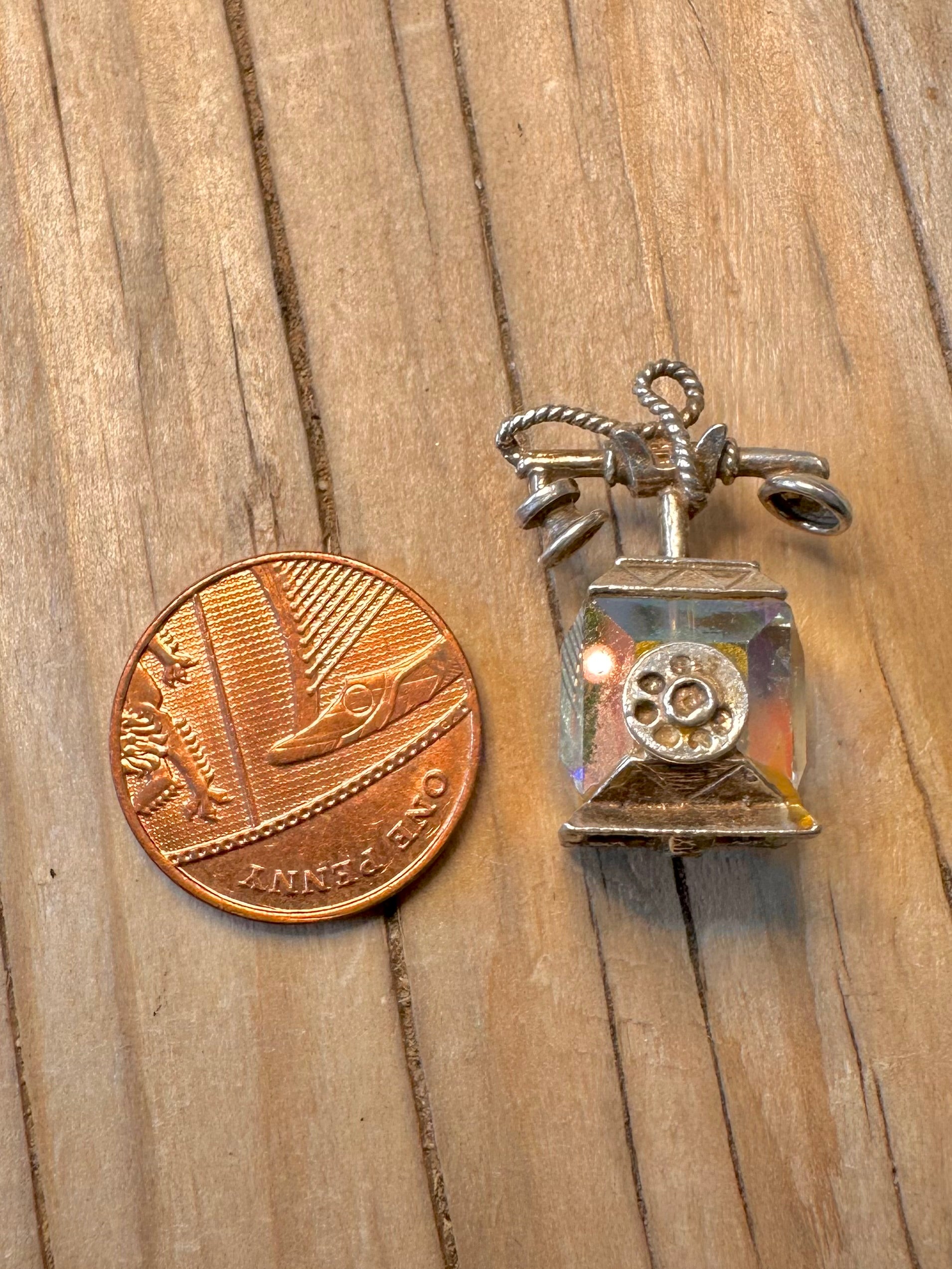 Vintage Crystal Telephone 925 Silver Charm Pendant