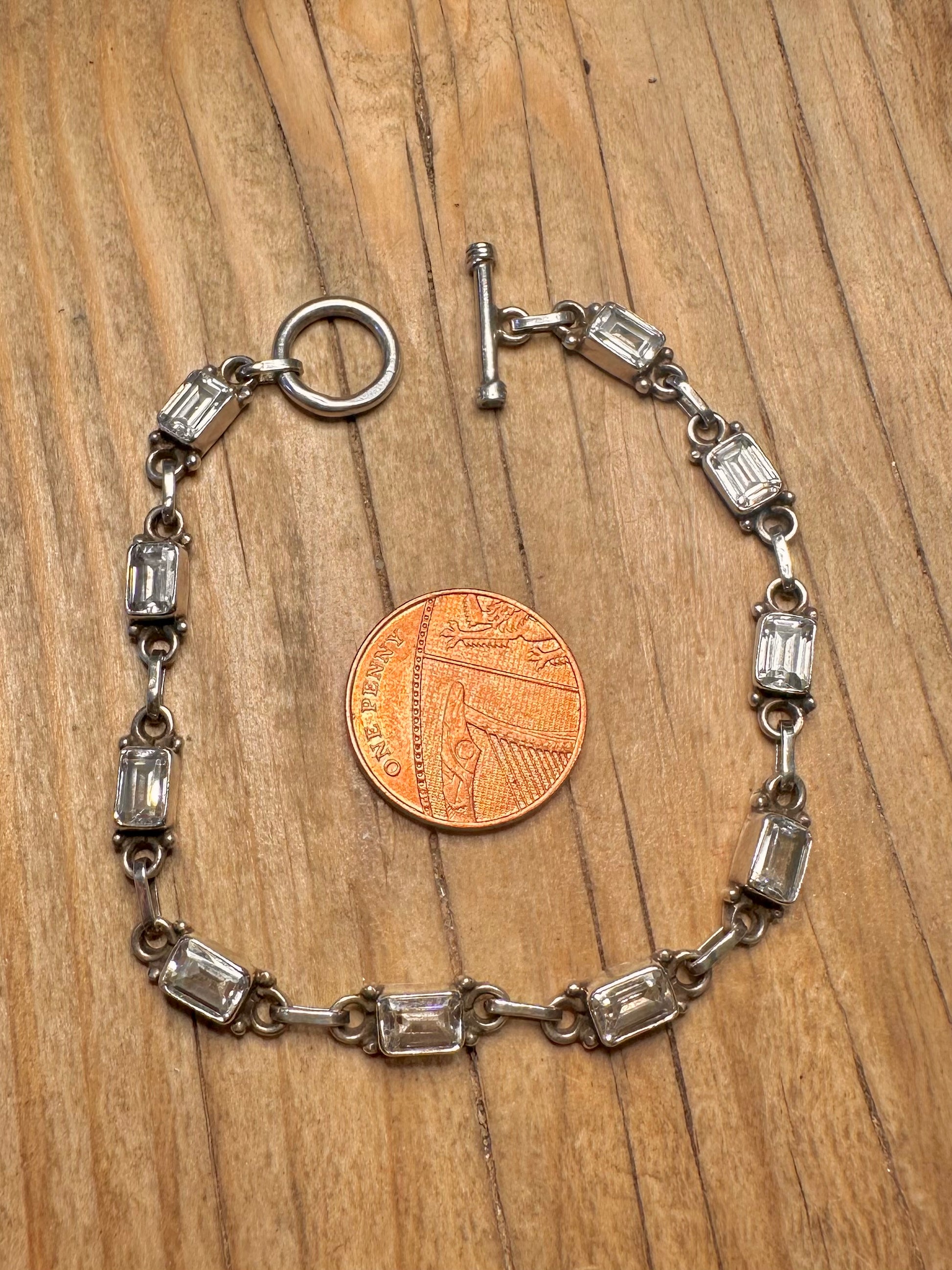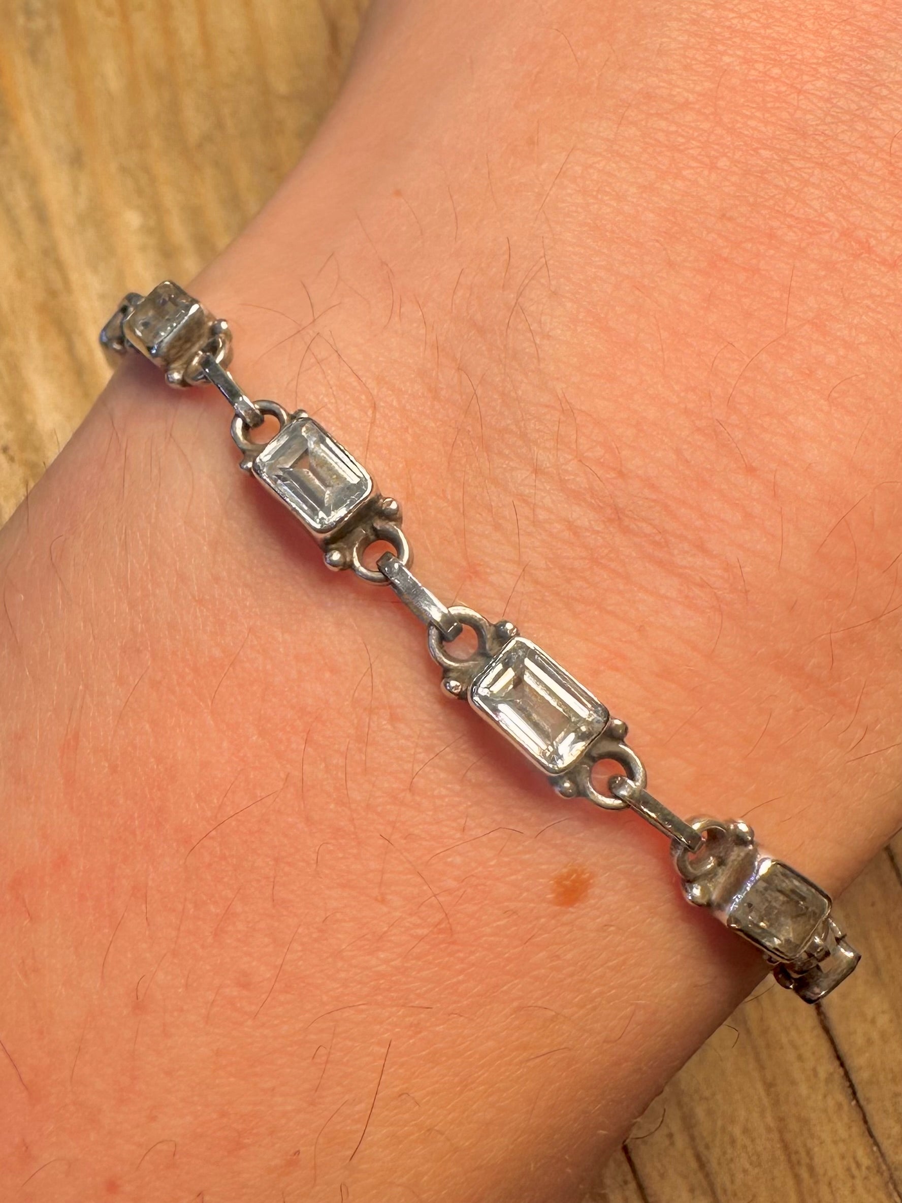 Vintage CZ Rectangle T Bar 925 Sterling Silver 7.3 inch Bracelet