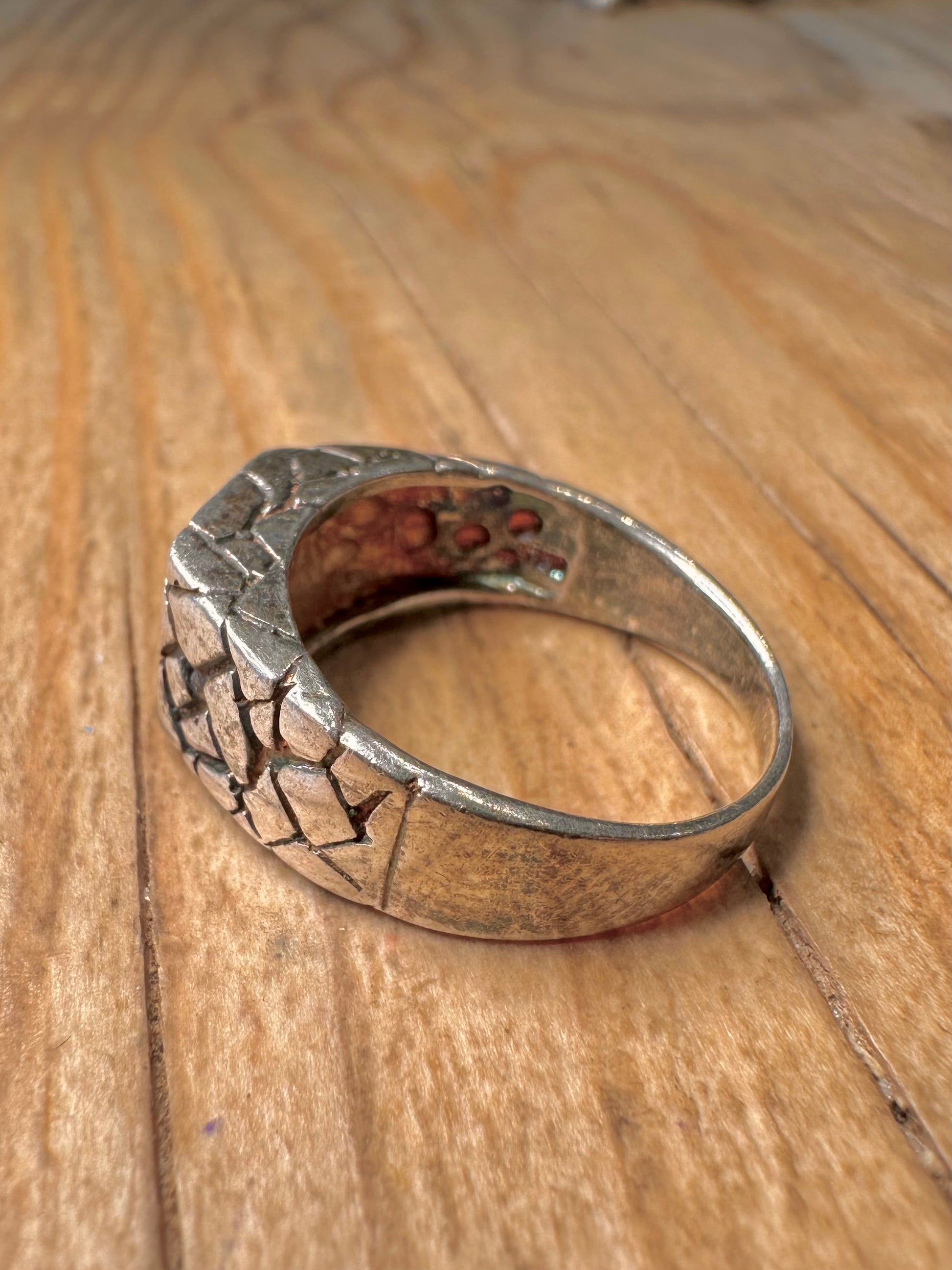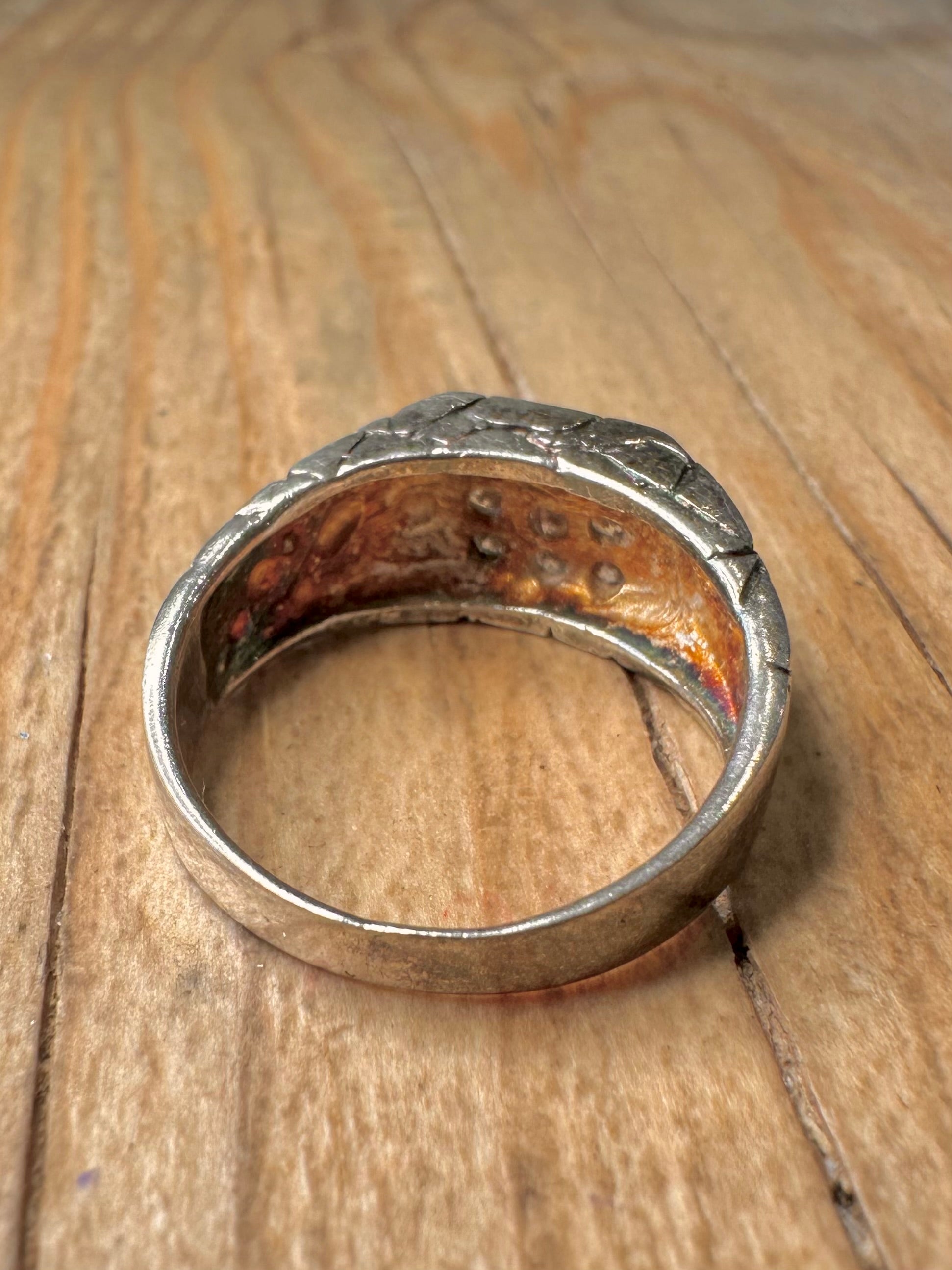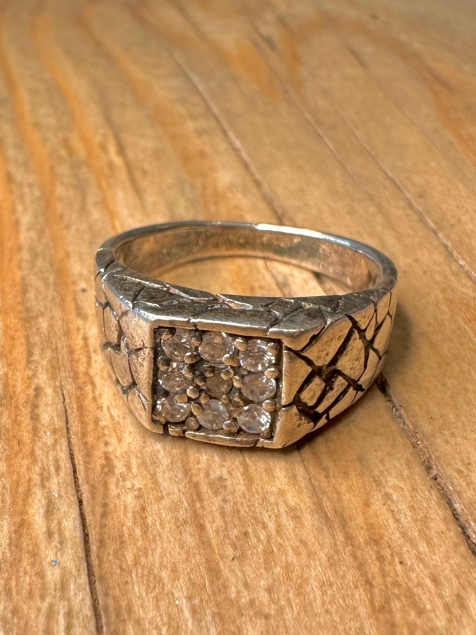 Vintage CZ Signet Textured 925 Sterling Silver Size P Ring