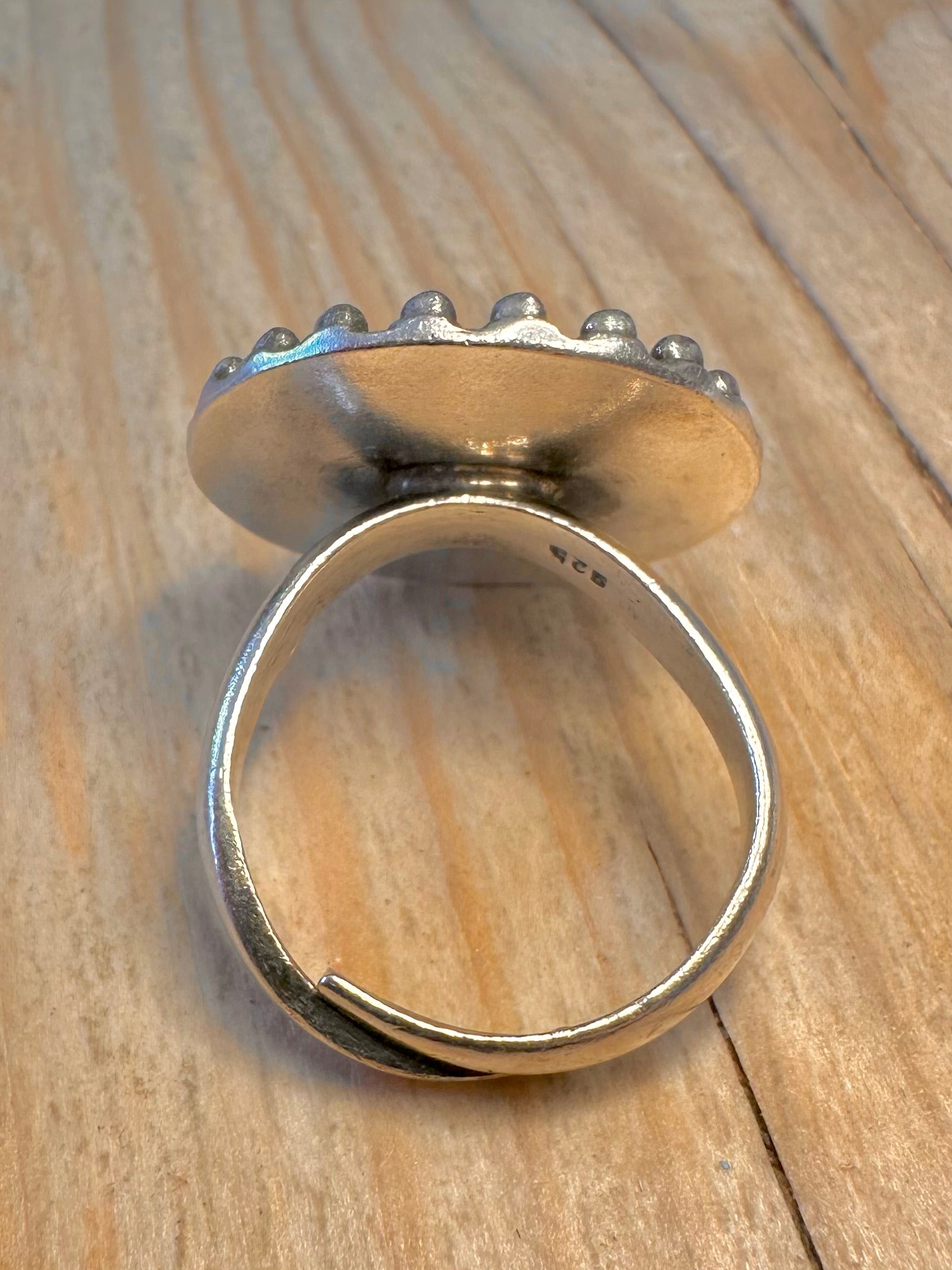Vintage Disc Tribal Oxides 925 Sterling Silver Adjustable Size S Ring