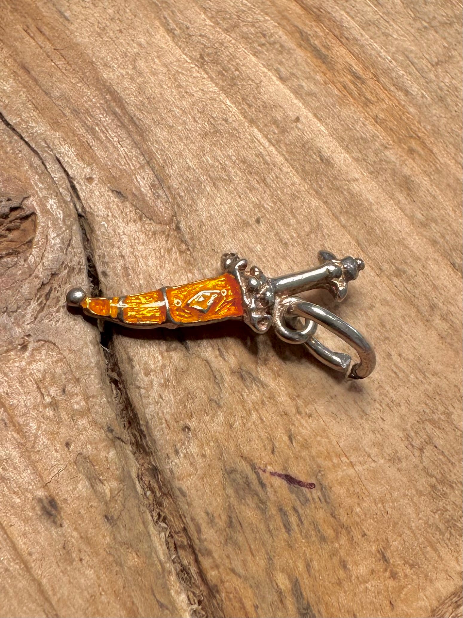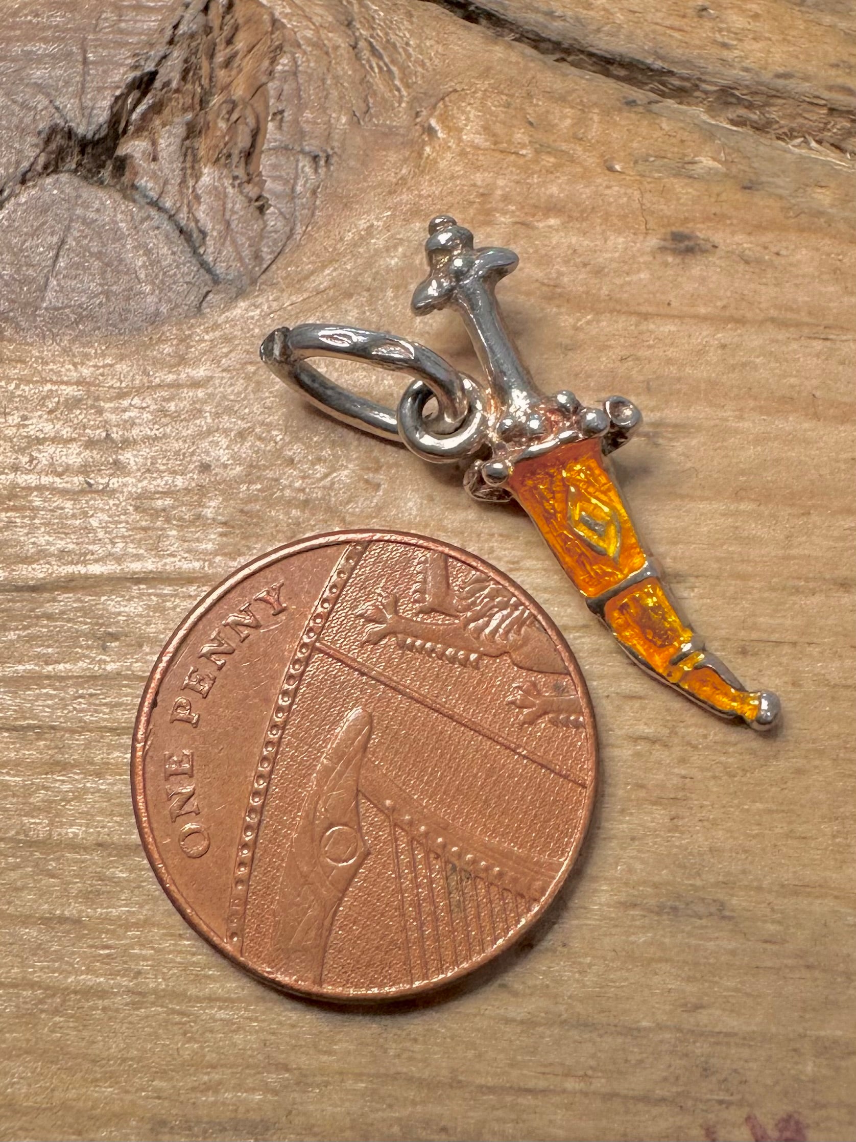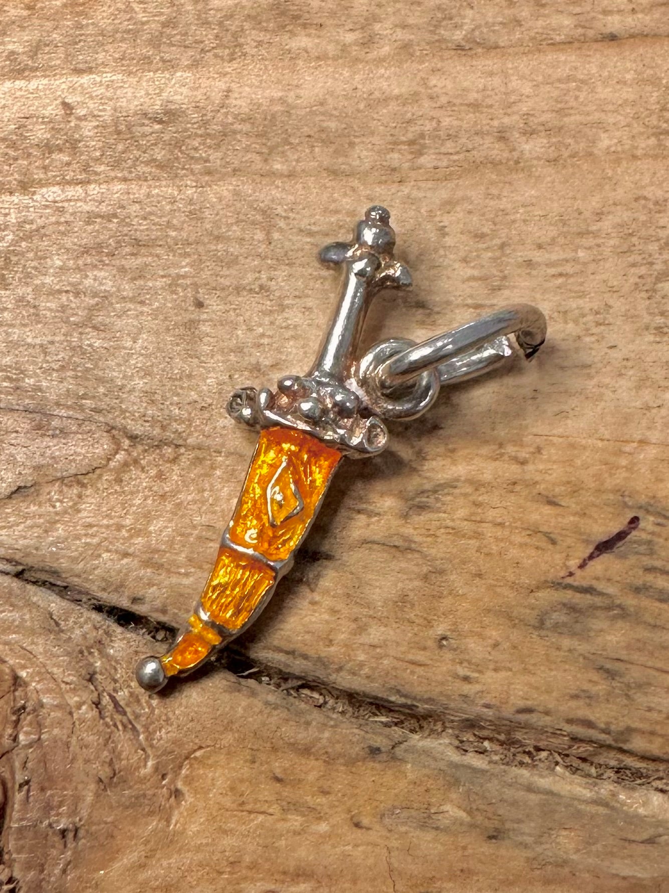 Vintage Enamel Dagger 925 Silver Pendant