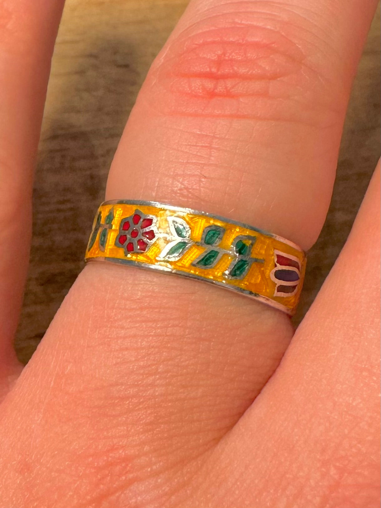 Vintage Enamel Flower Siam 925 Silver Size P1/2 Ring