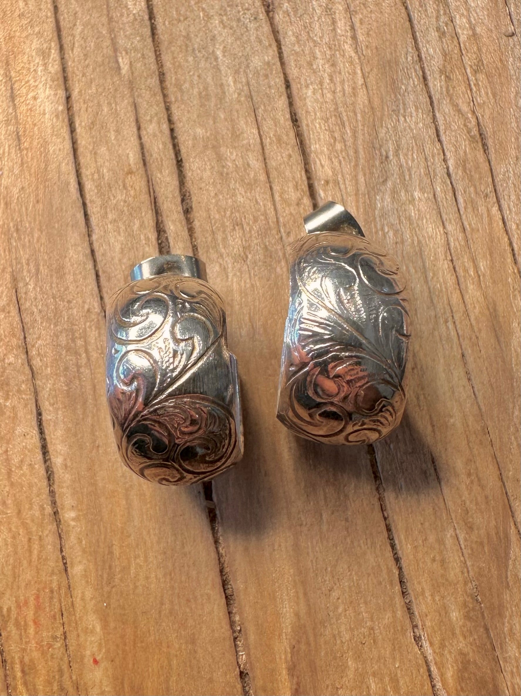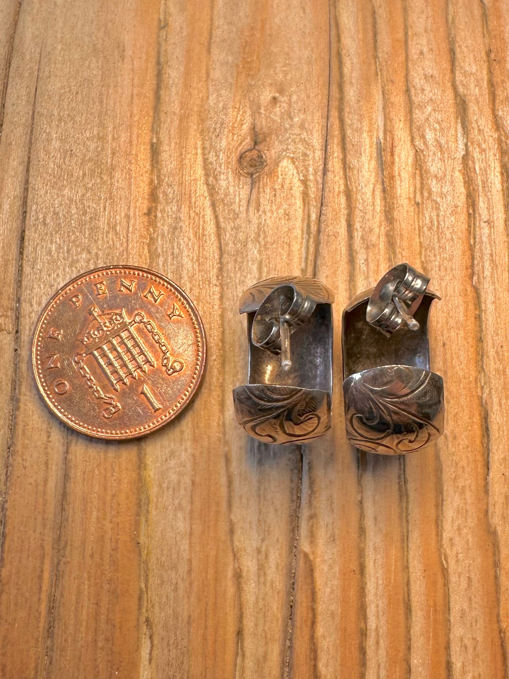 Vintage Floral Chunky Half Hoops 925 Sterling Silver Earrings