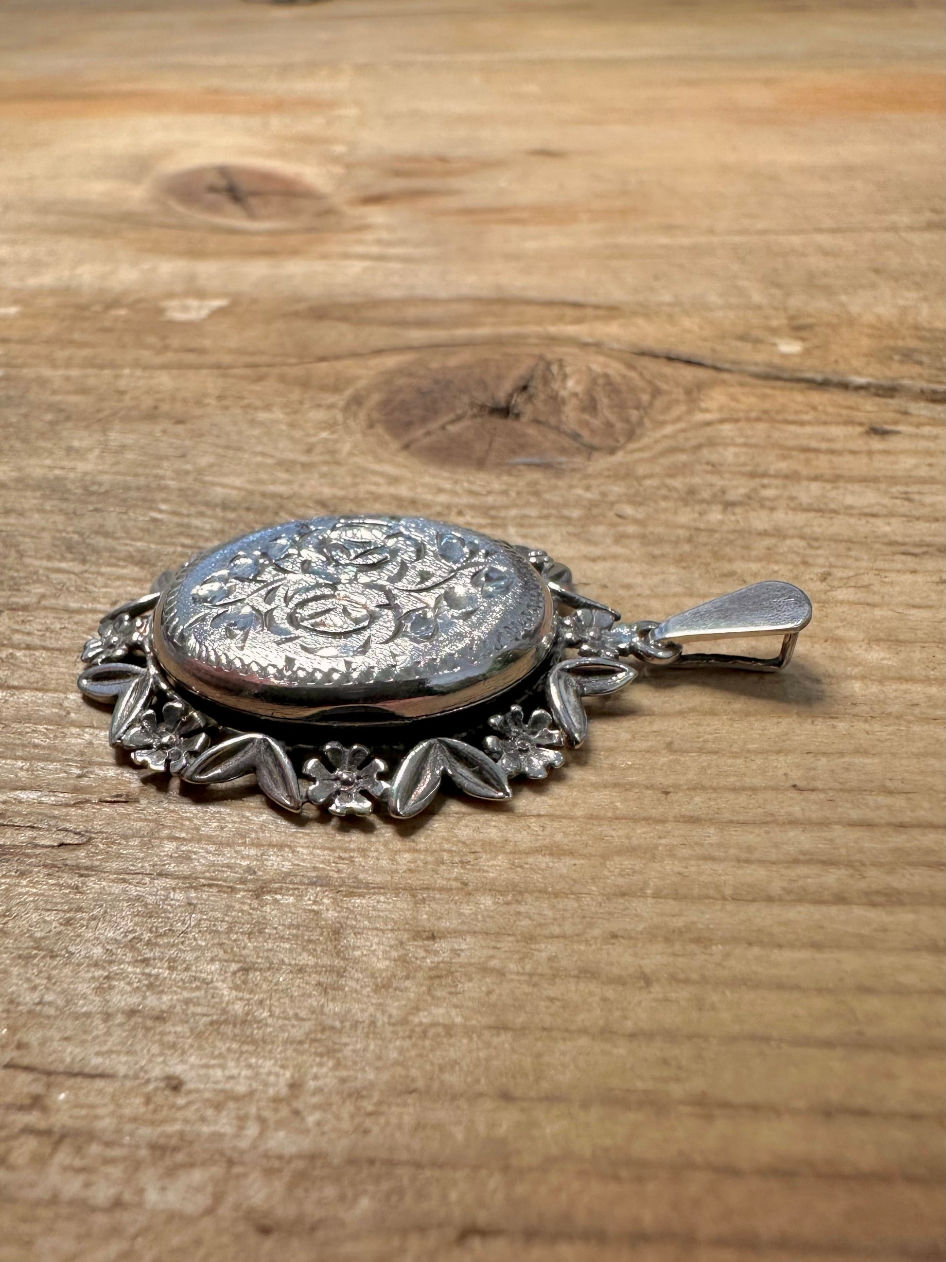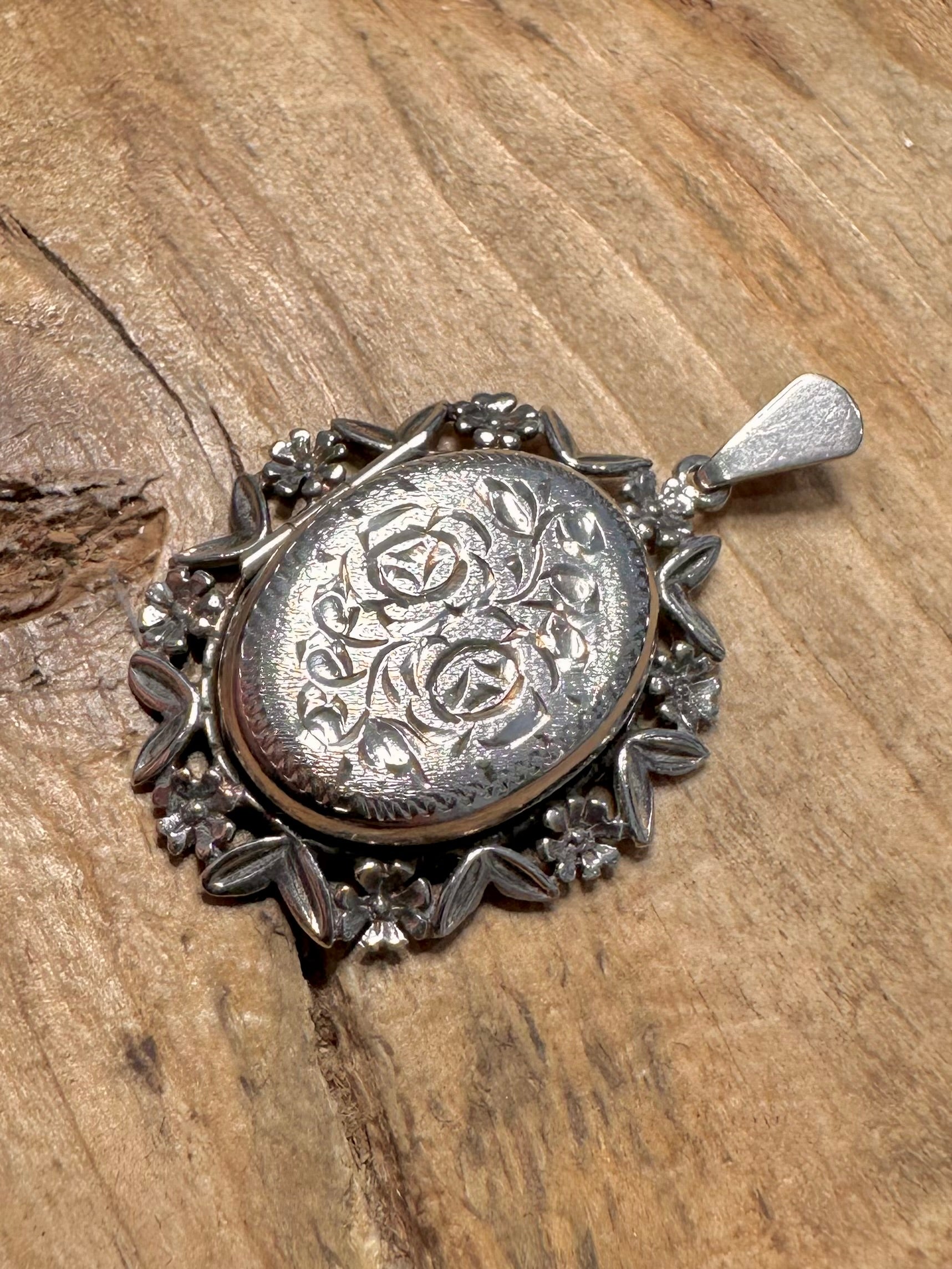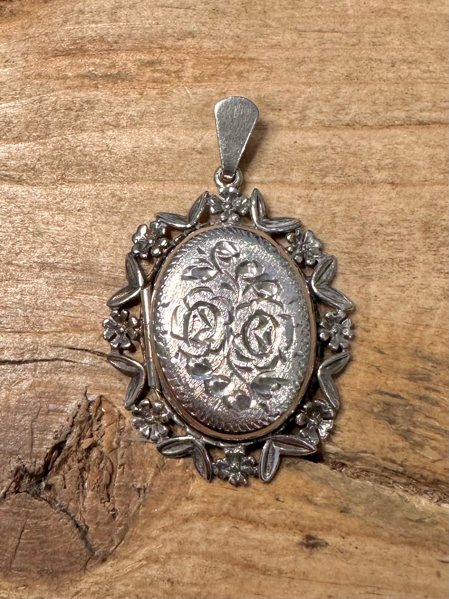 Vintage Floral Engraved Locket 925 Silver Pendant
