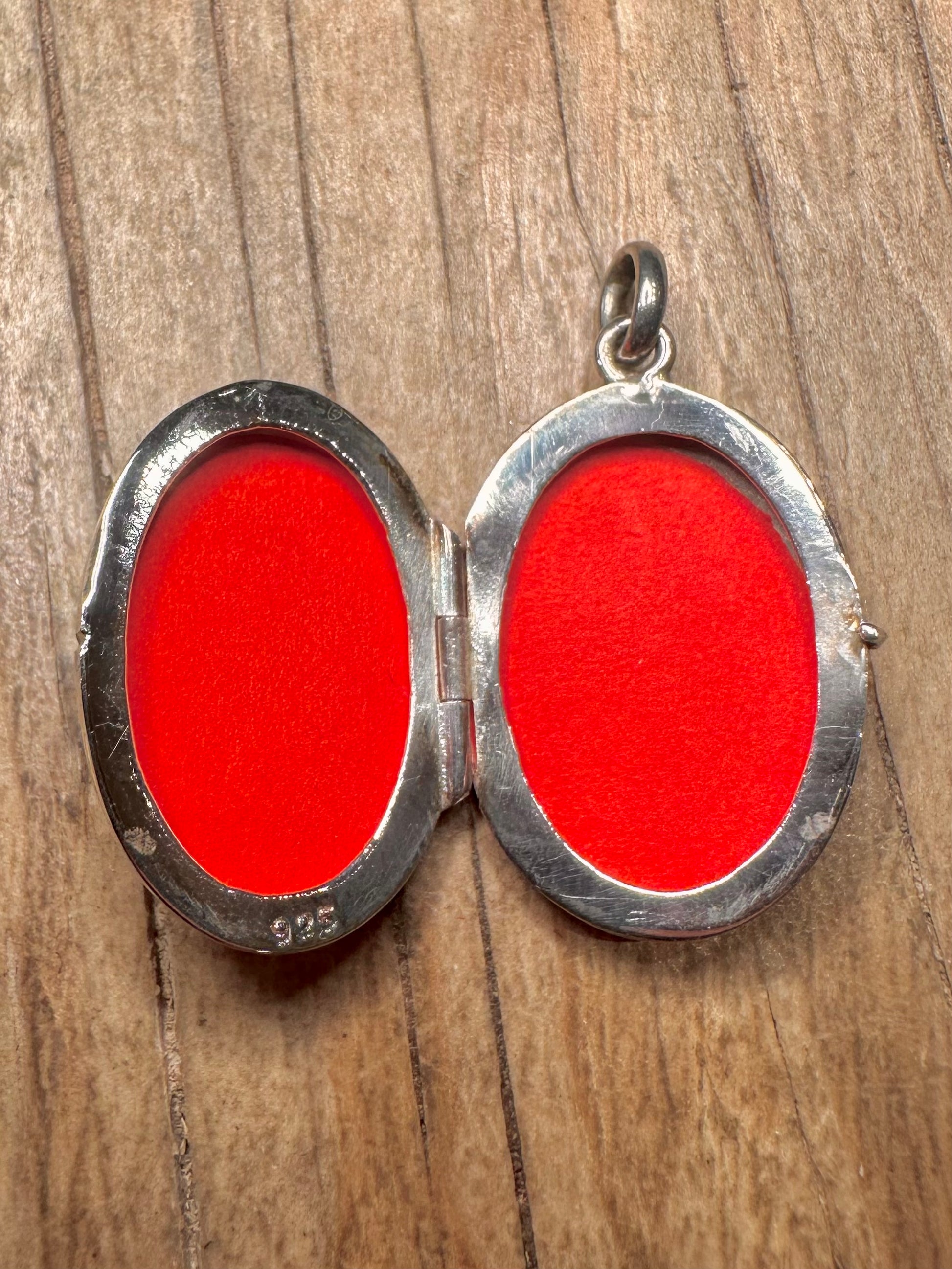 Vintage Garnet Engraved Oval Locket 925 Sterling Silver Pendant