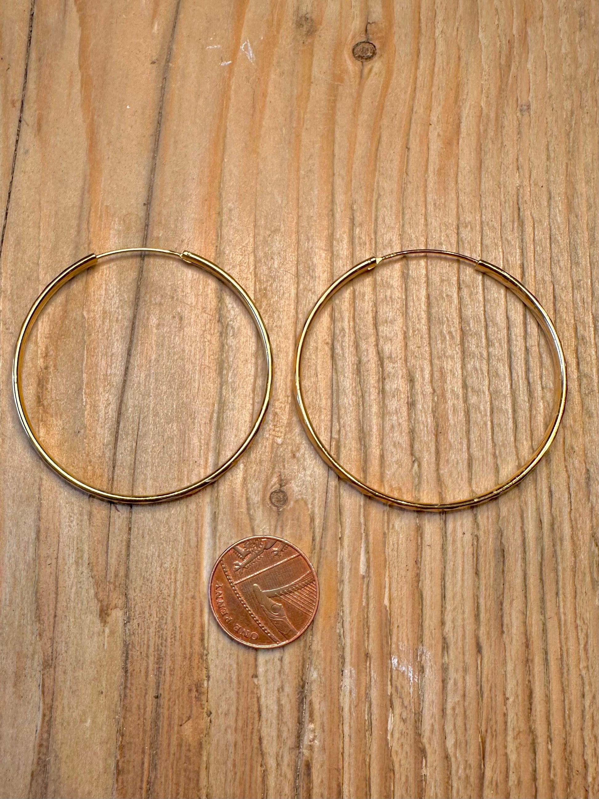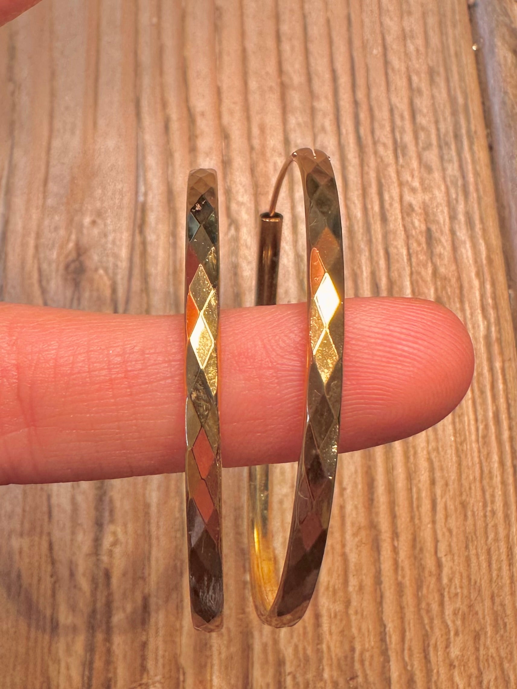 Vintage Gold Textured Large Hoops 925 Sterling Silver Earrings