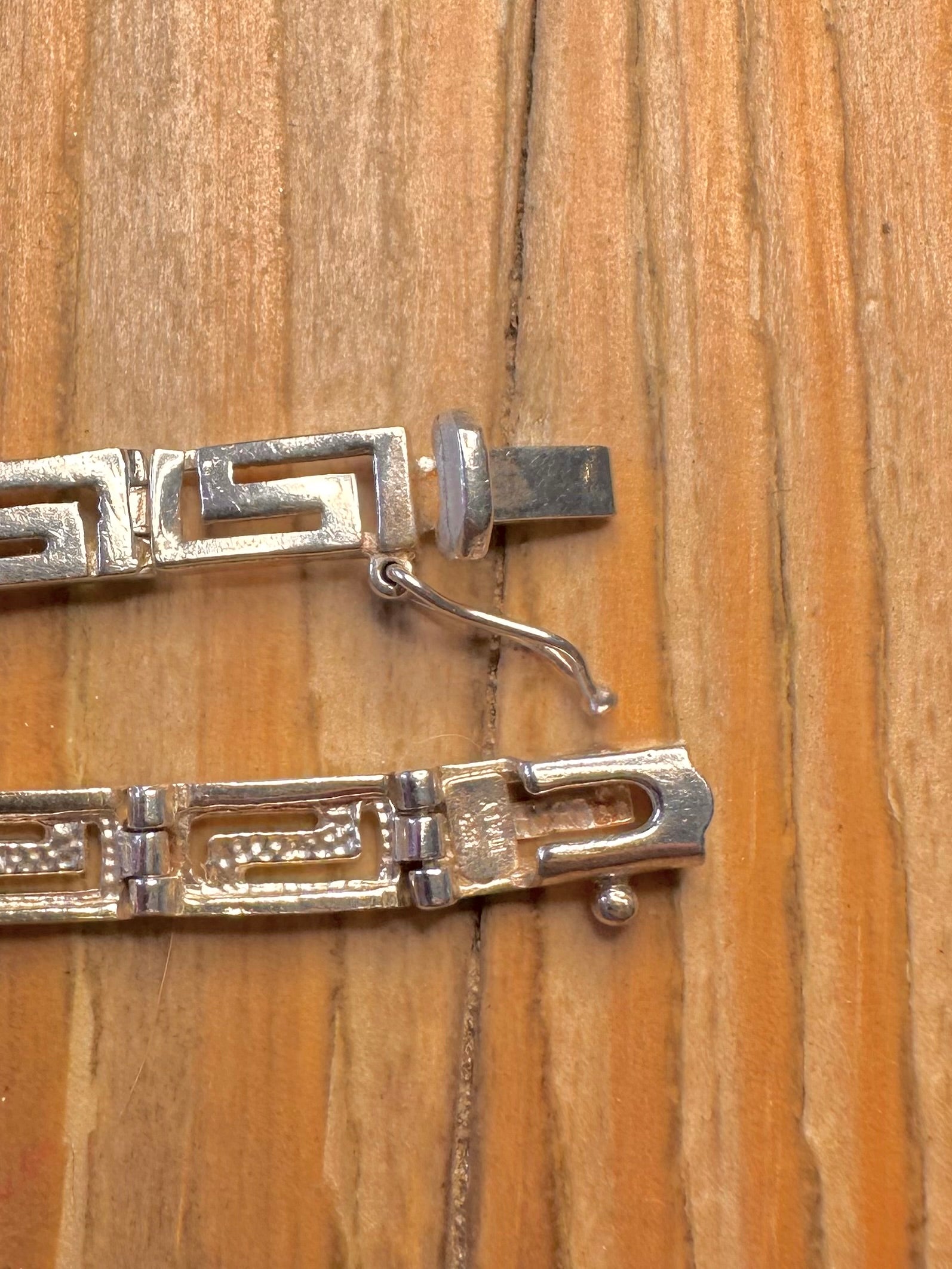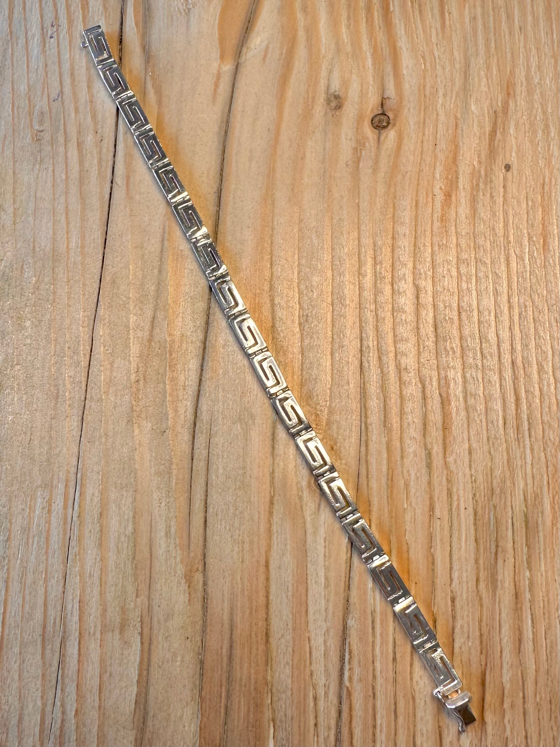 Vintage Greek Key Bar 925 Sterling Silver 7.4 inch Bracelet