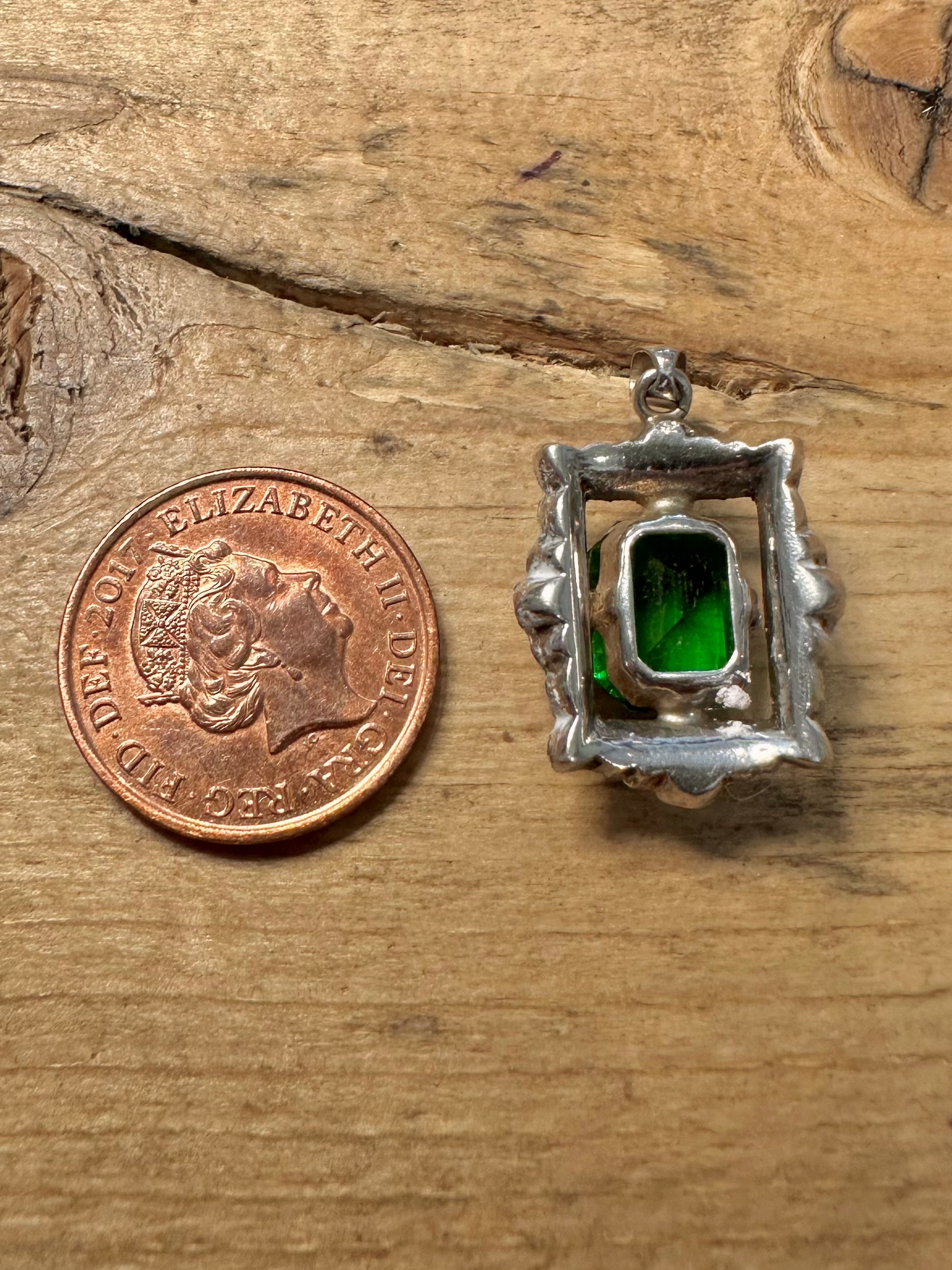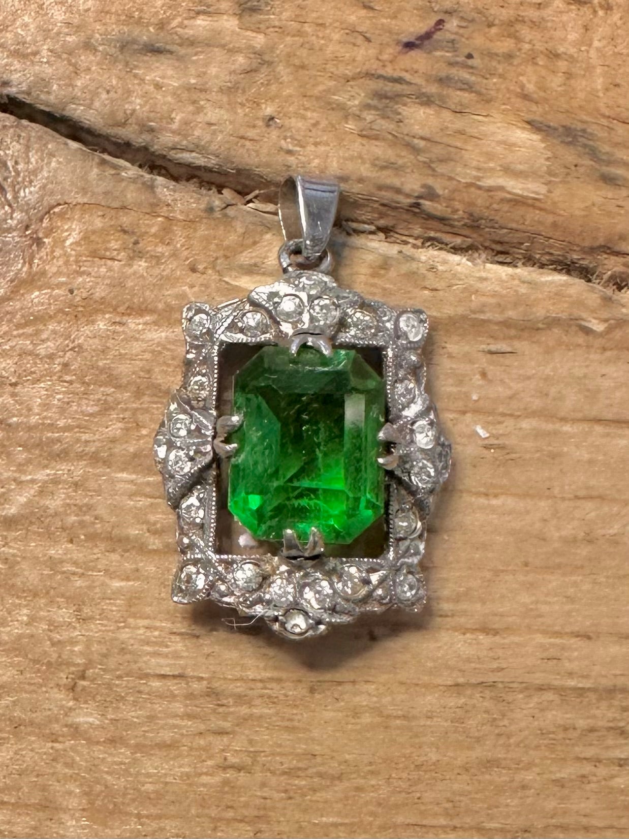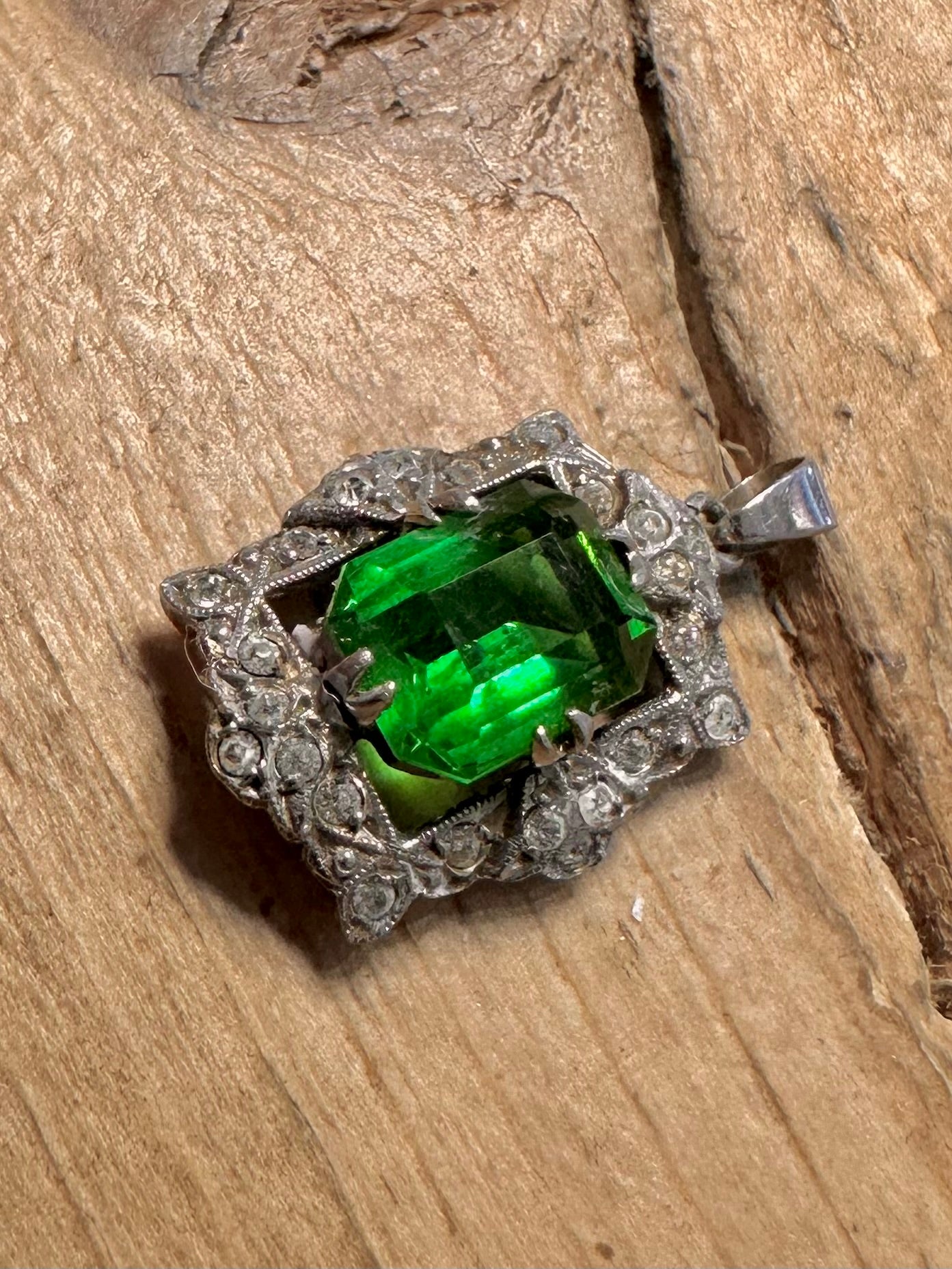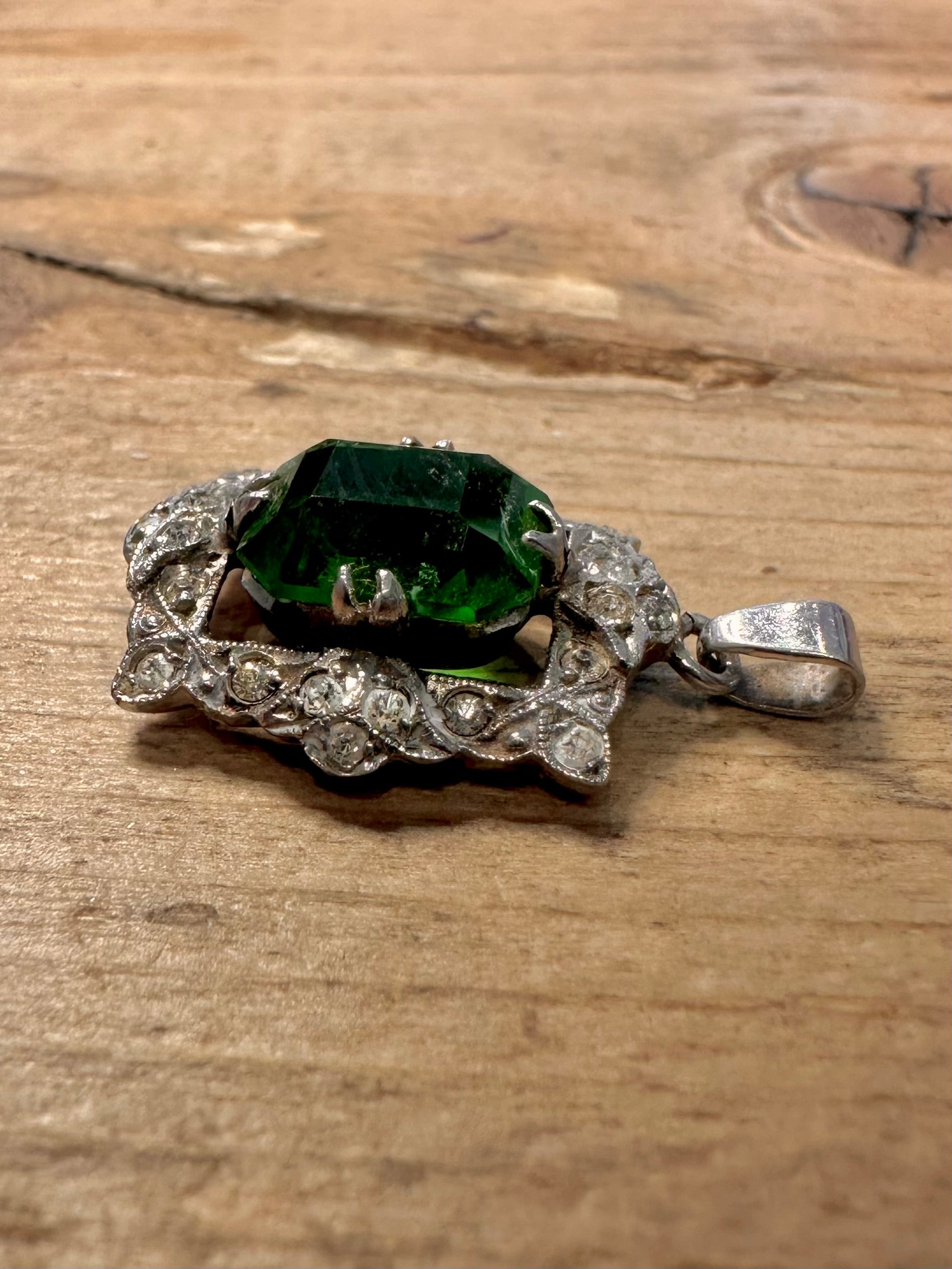 Vintage Green and White Stone Art Deco 925 Silver Pendant