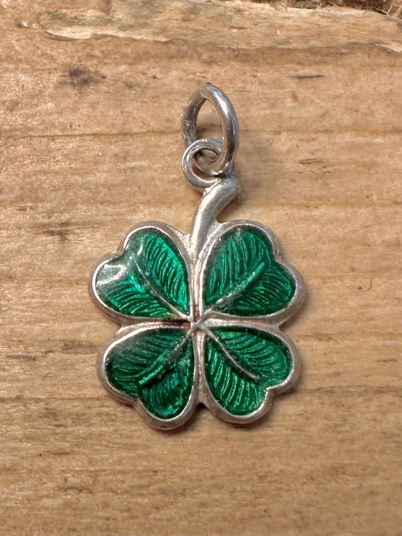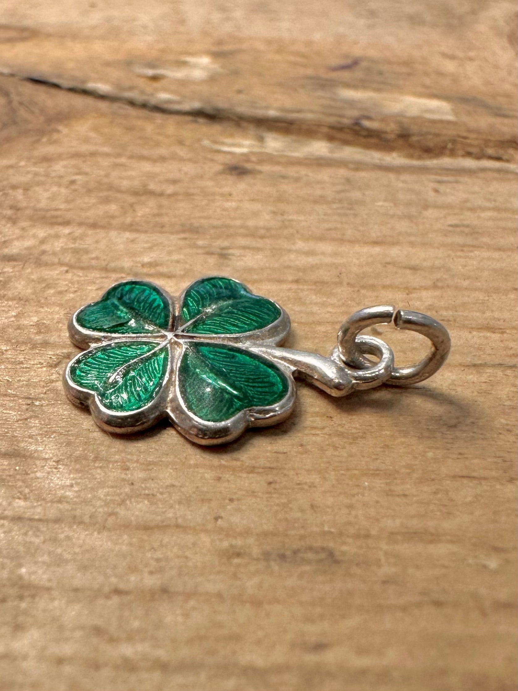 Vintage Green Enamel Four Leaf Clover 925 Silver Pendant