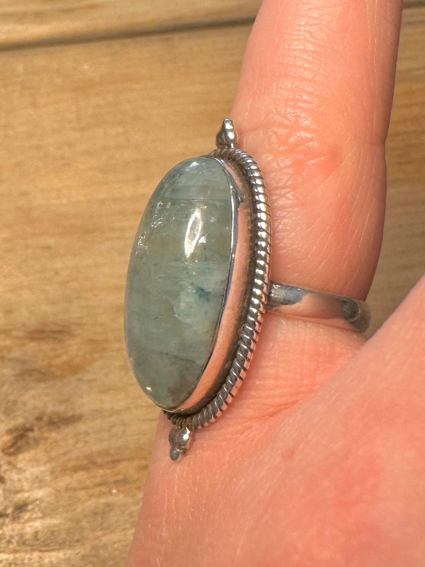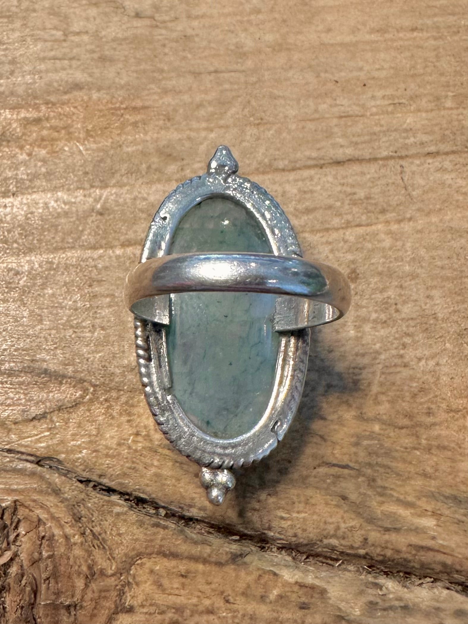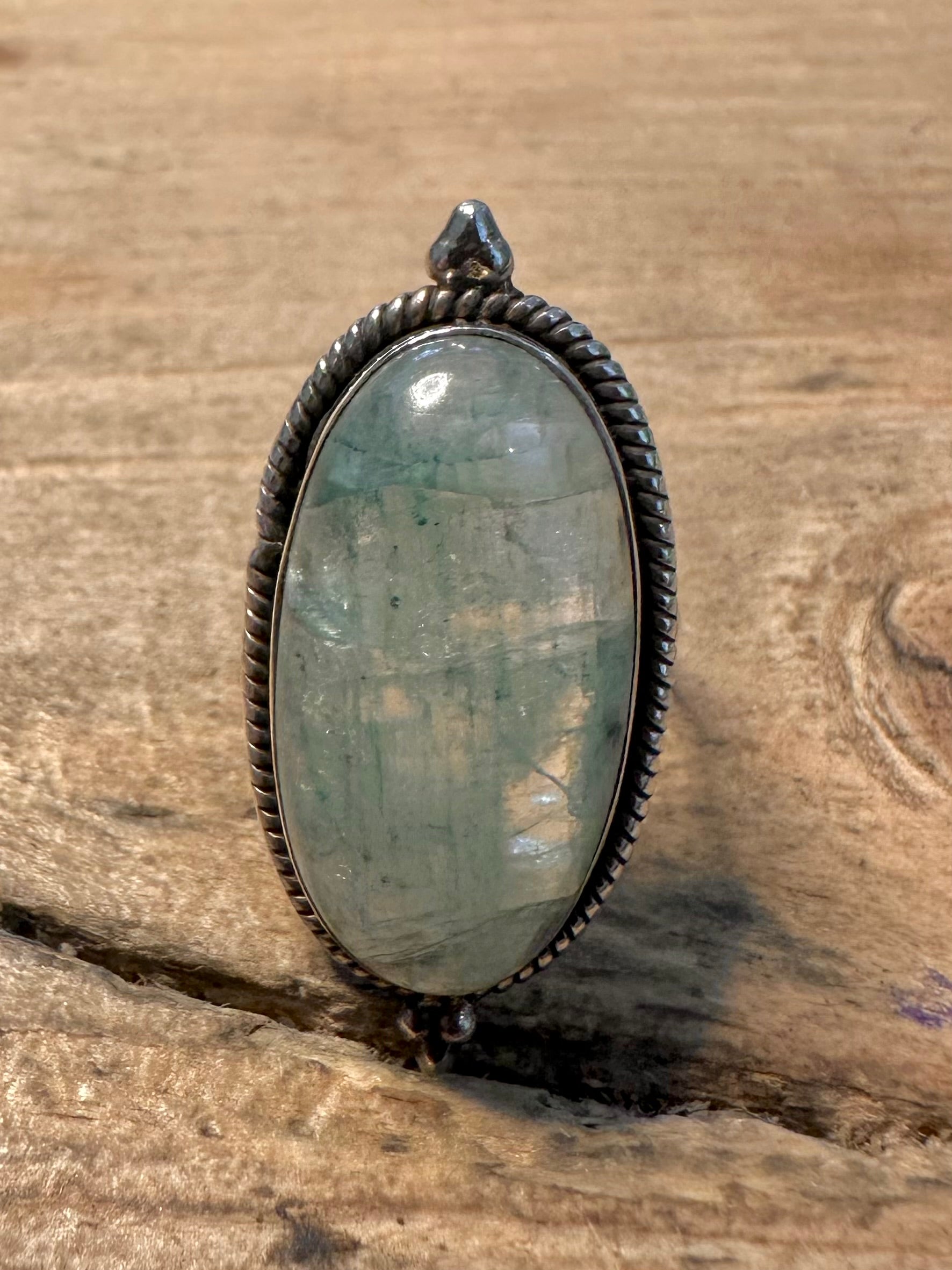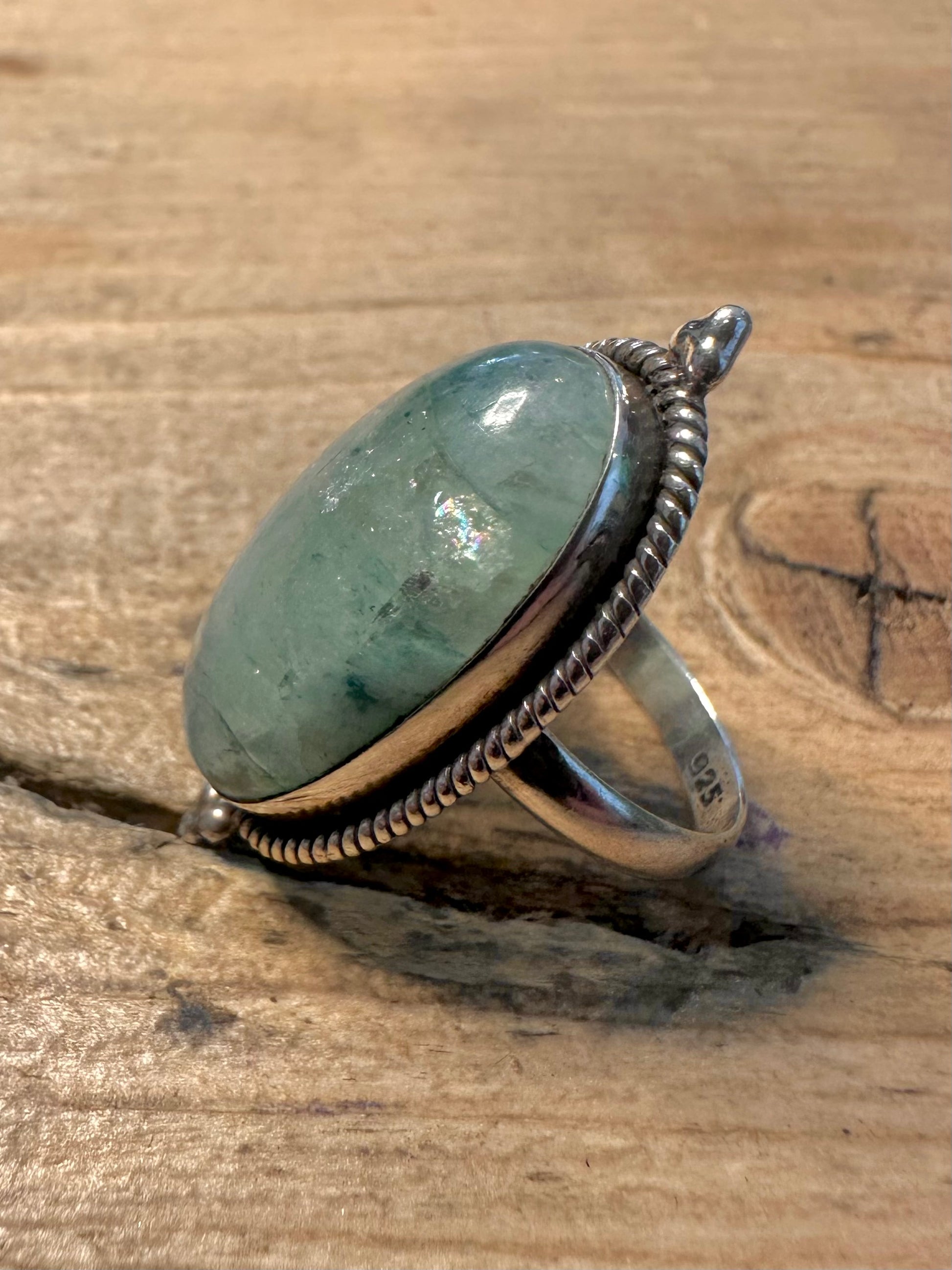 Vintage Green Quarts Oval 925 Silver Size L Ring