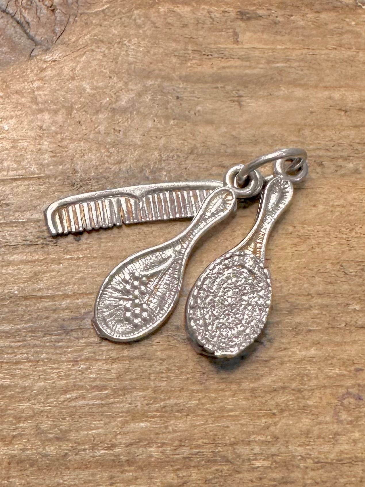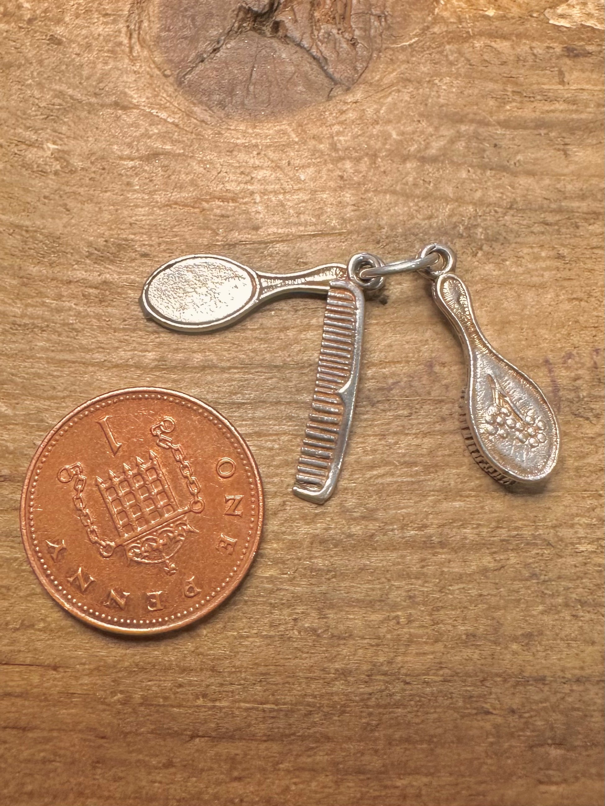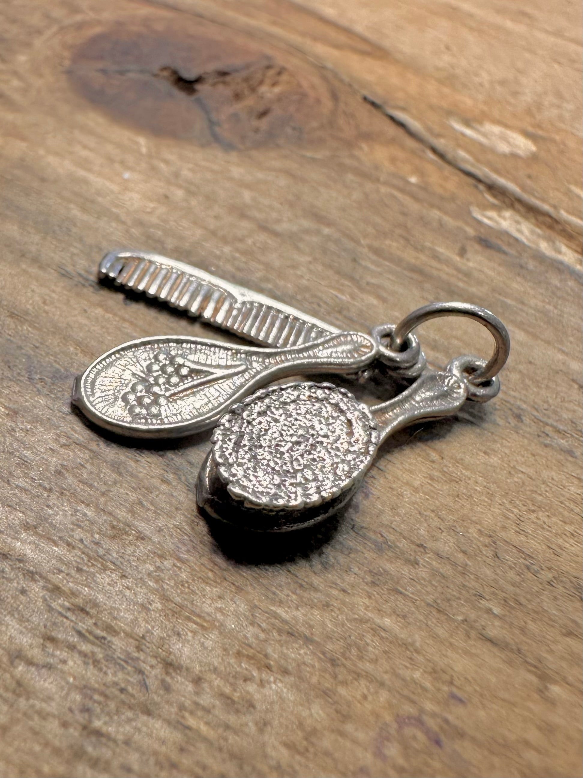 Vintage Hair Brush Comb and Mirror 925 Silver Charm Pendant