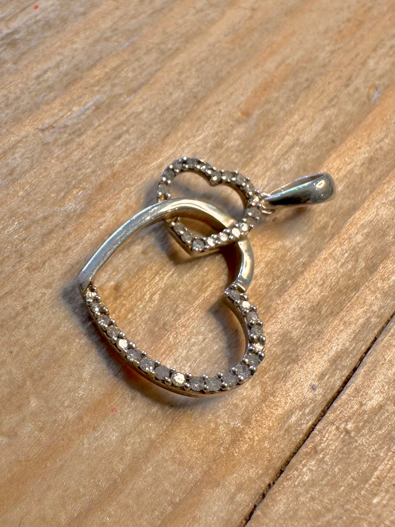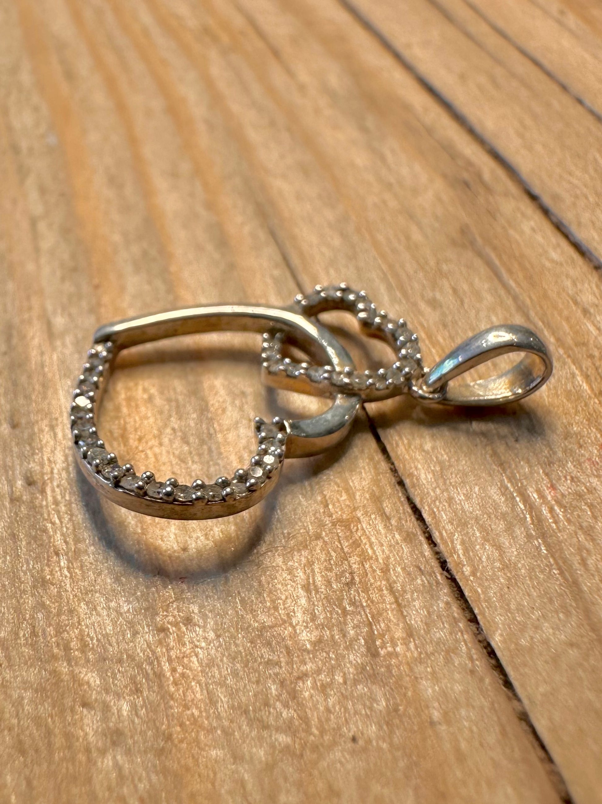 Vintage Heart Diamonds 0.25ct 925 Sterling Silver Pendant