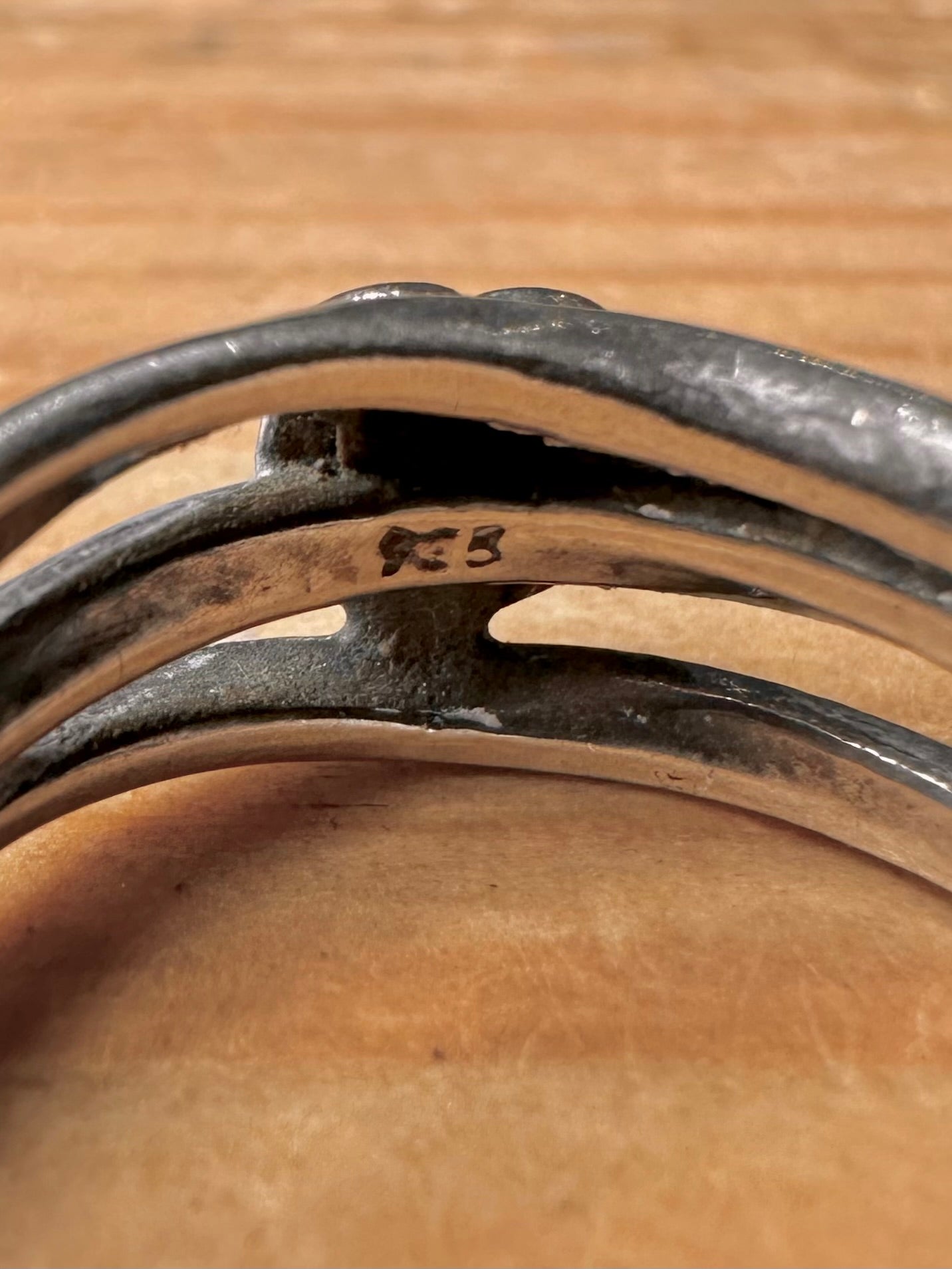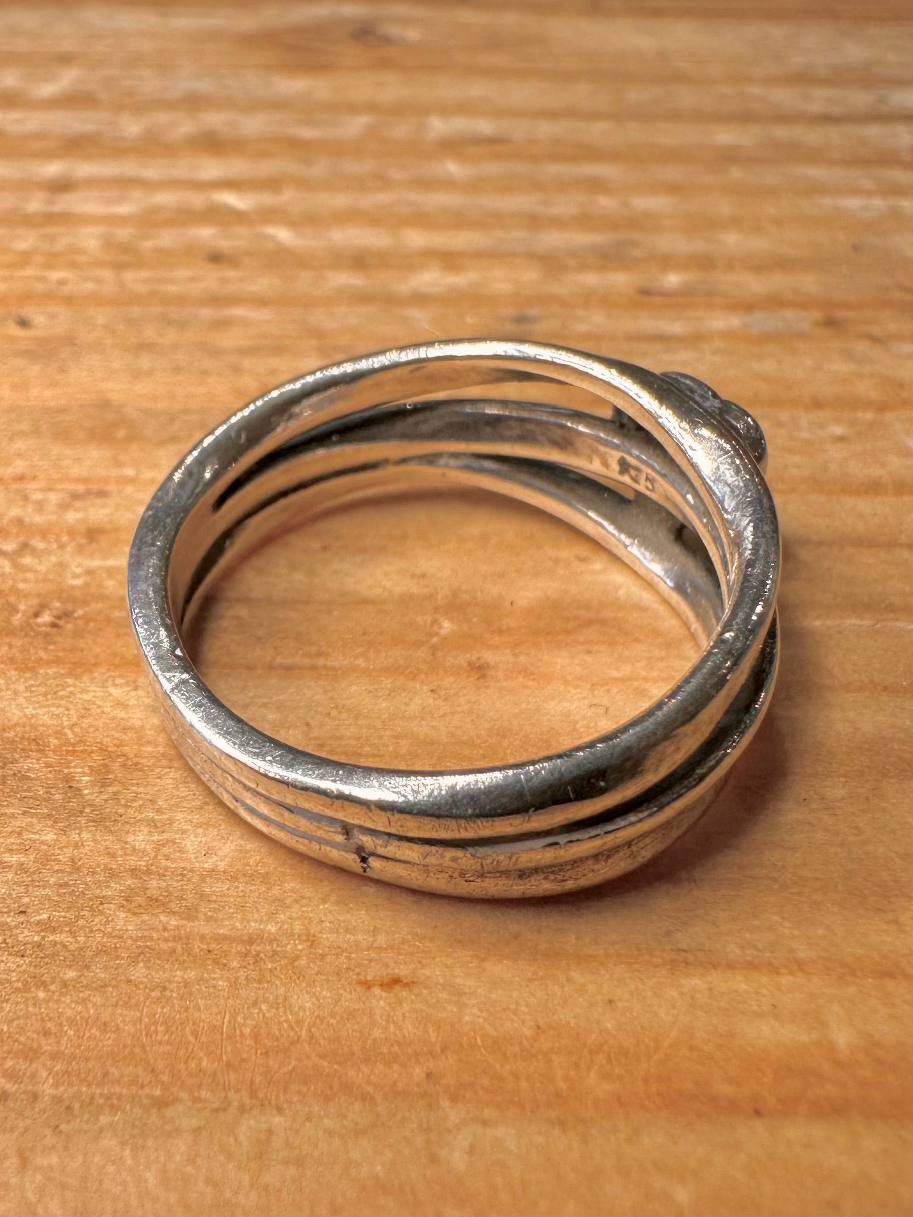 Vintage Heart Opal Three 925 Sterling Silver Size P Ring