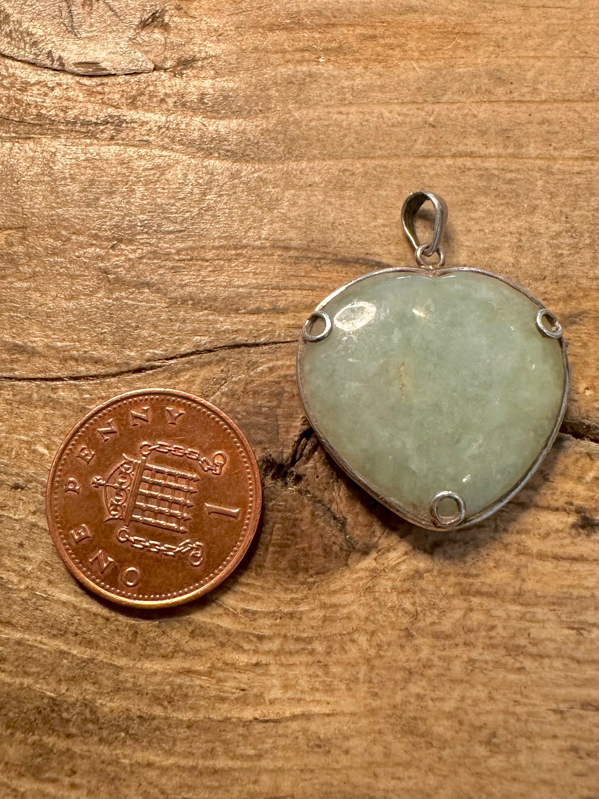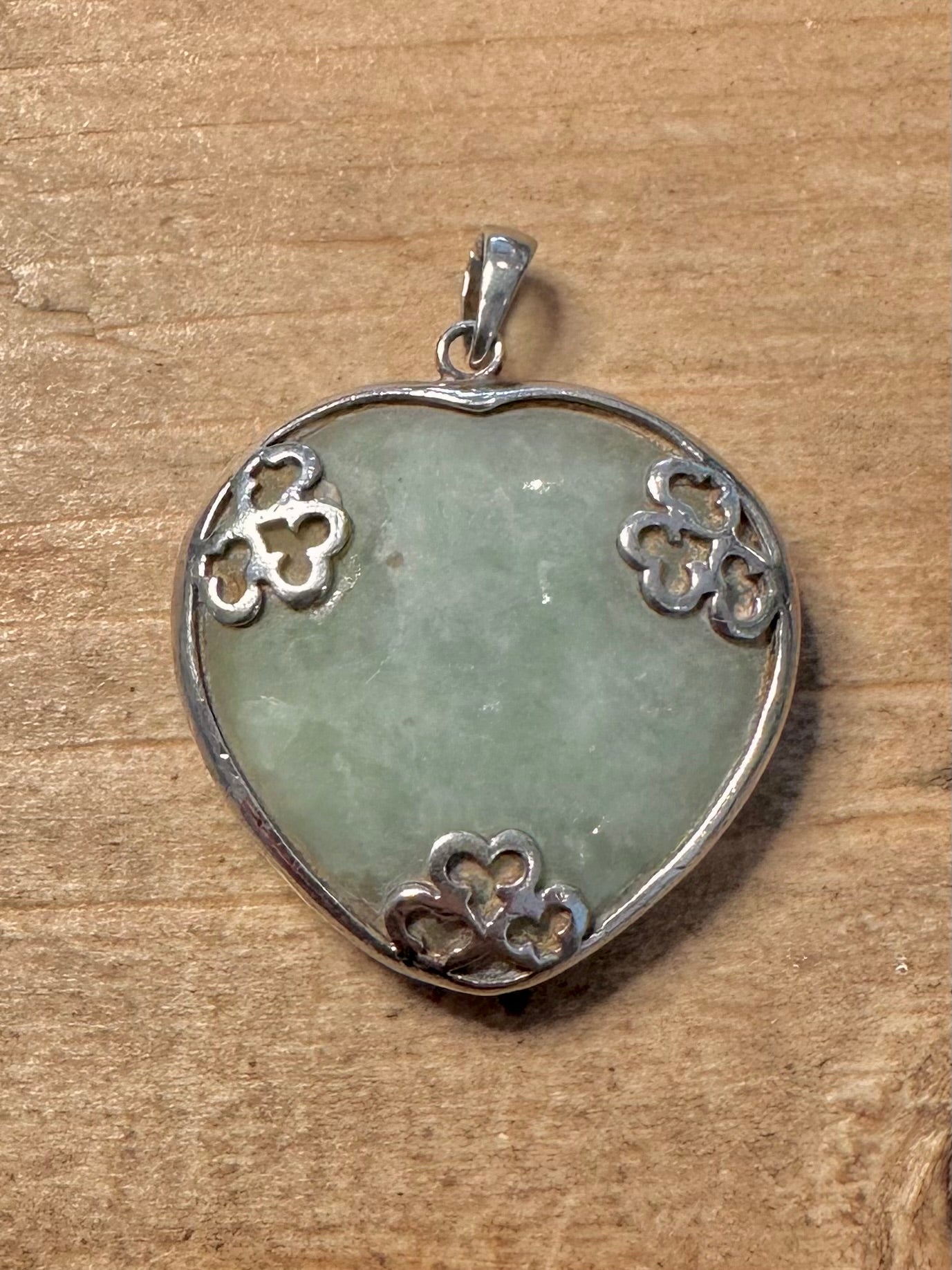 Vintage Heart Shaped Jade 925 Silver Pendant