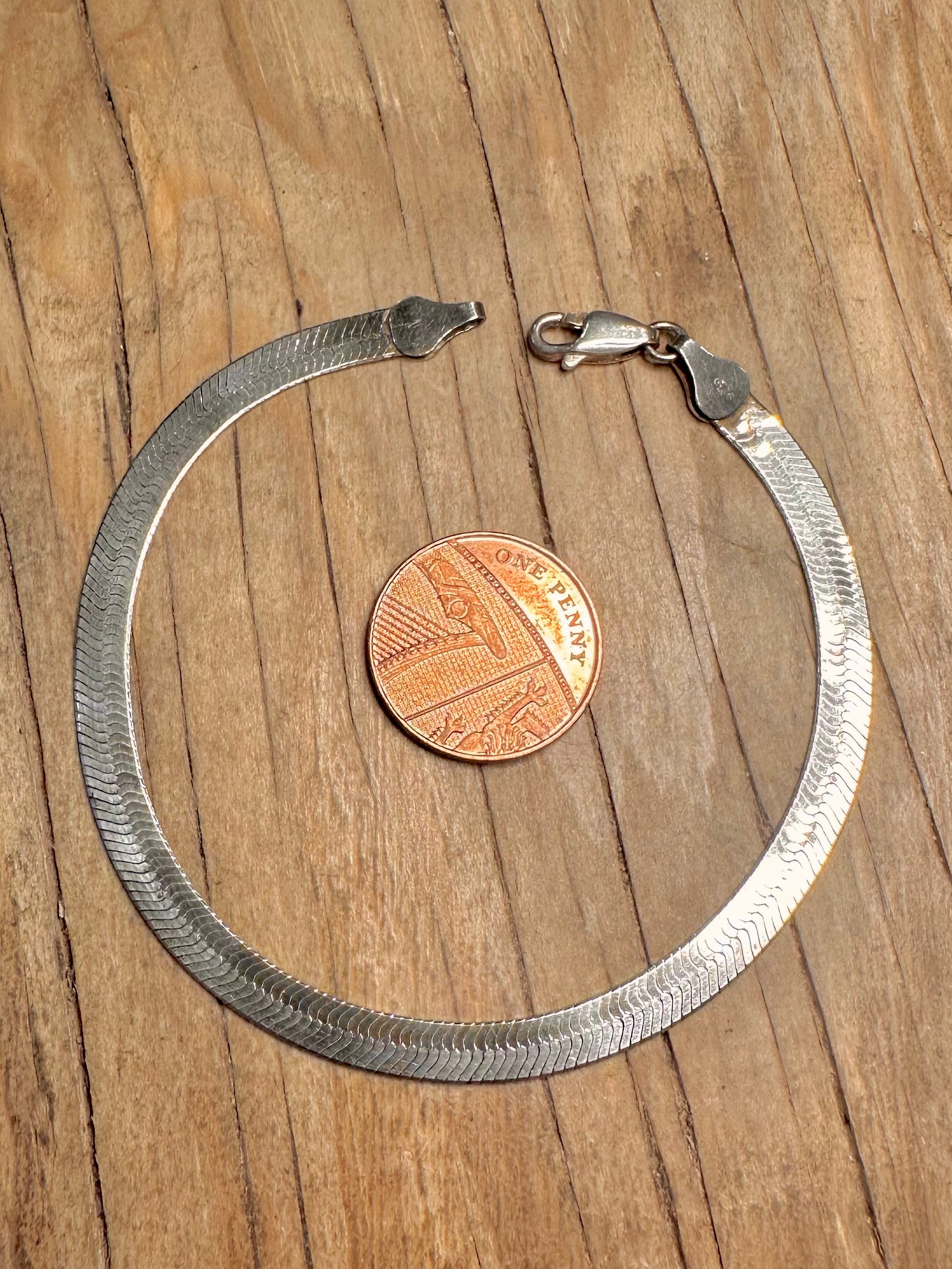 Vintage Herringbone Chain 925 Sterling Silver 7.8 inch Bracelet