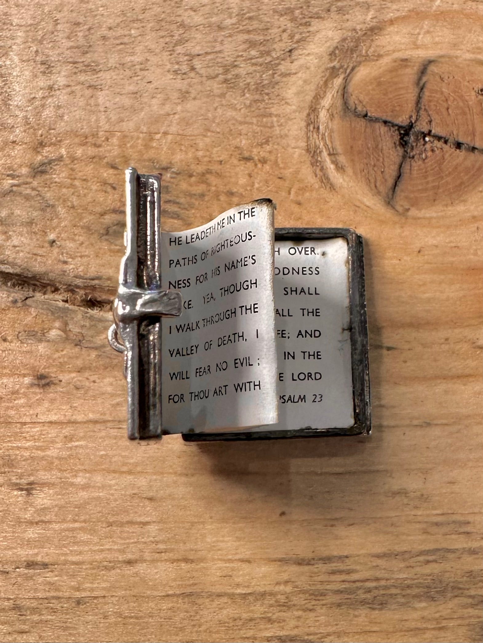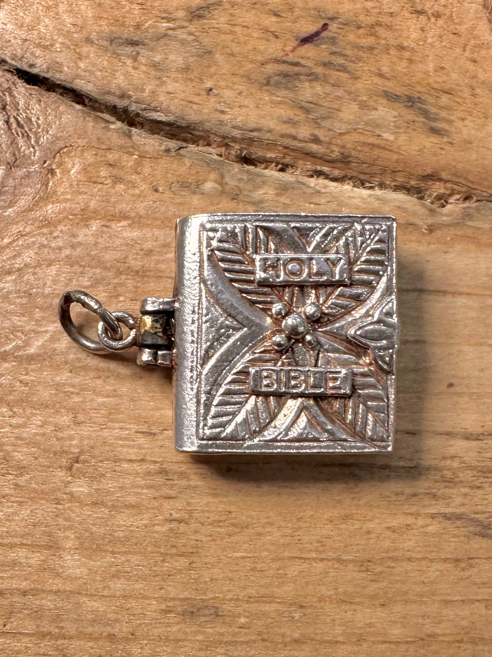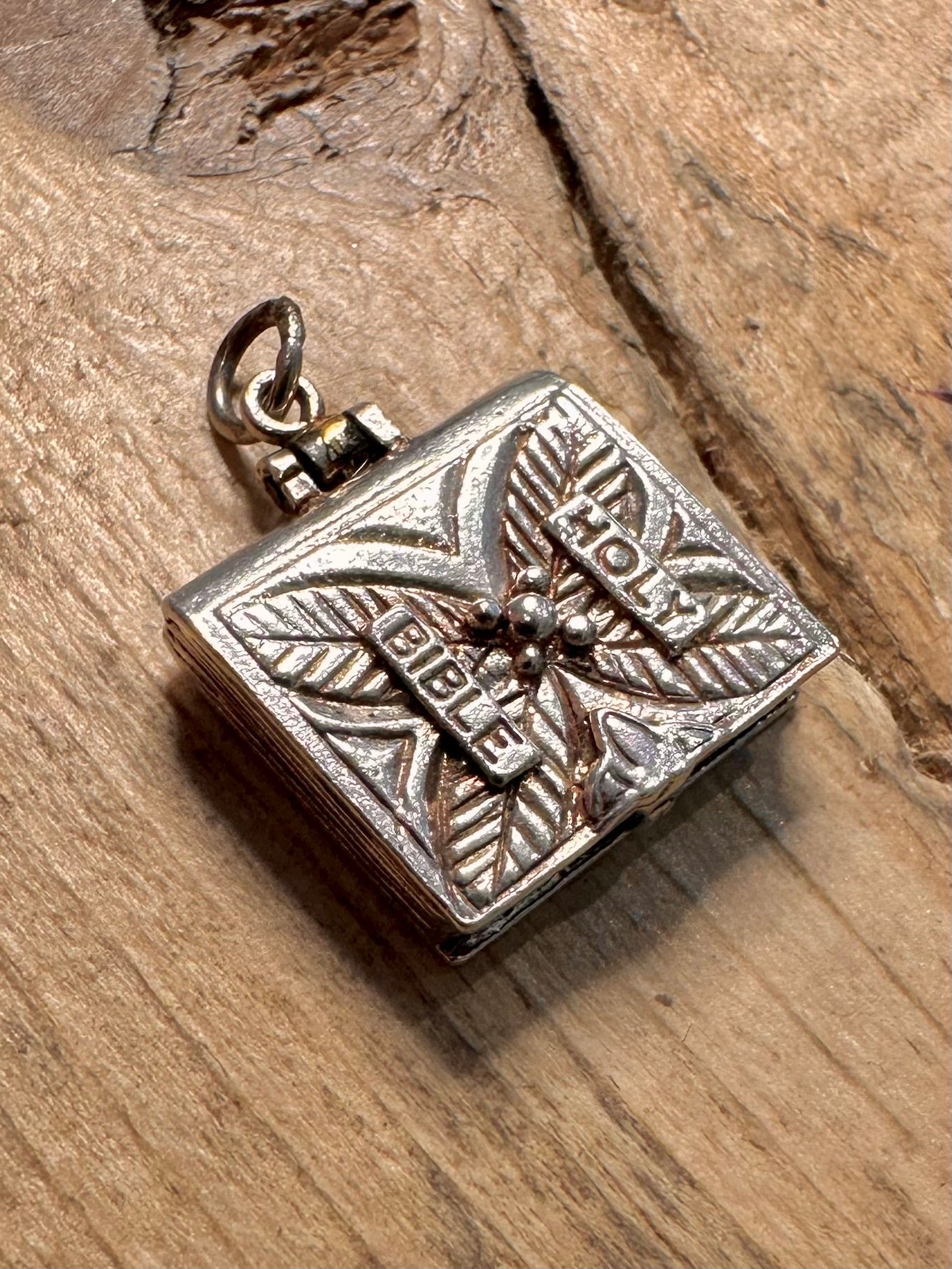 Vintage Holy Bible Book with Paper 925 Silver Charm Pendant