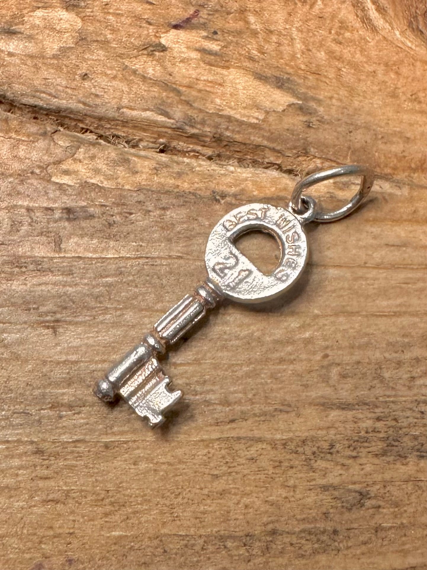 Vintage Key 21 Best Wishes 925 Silver Pendant