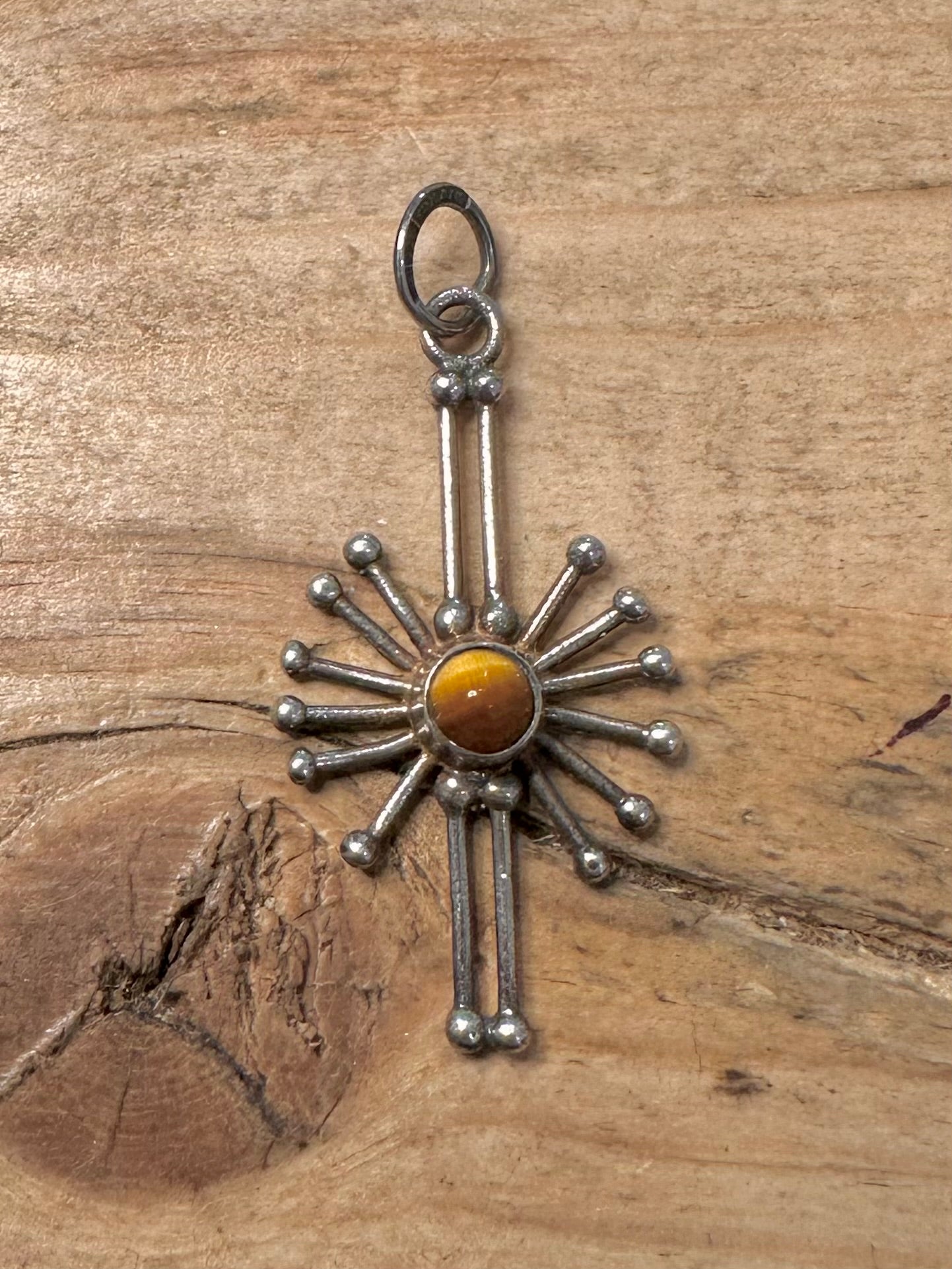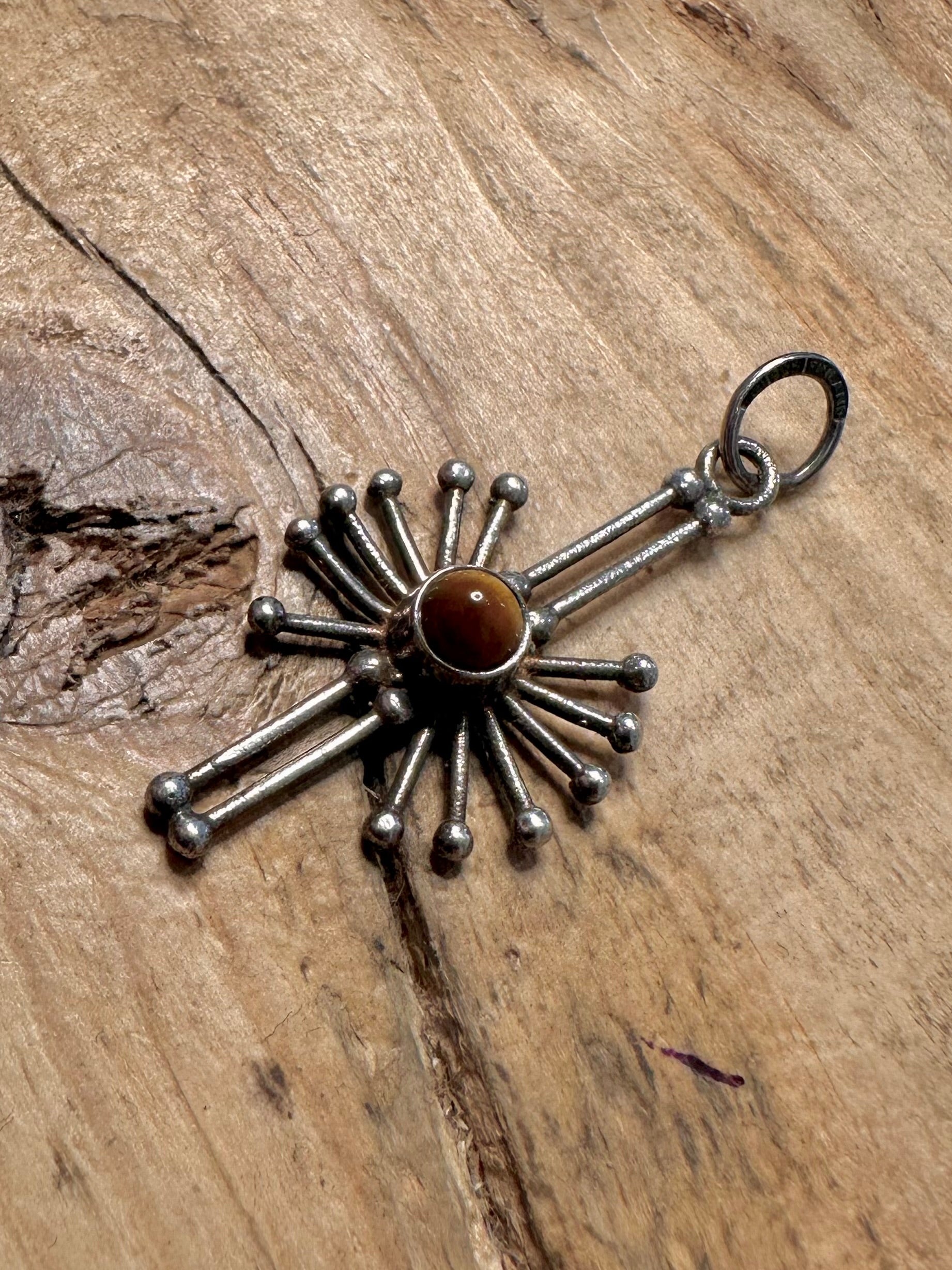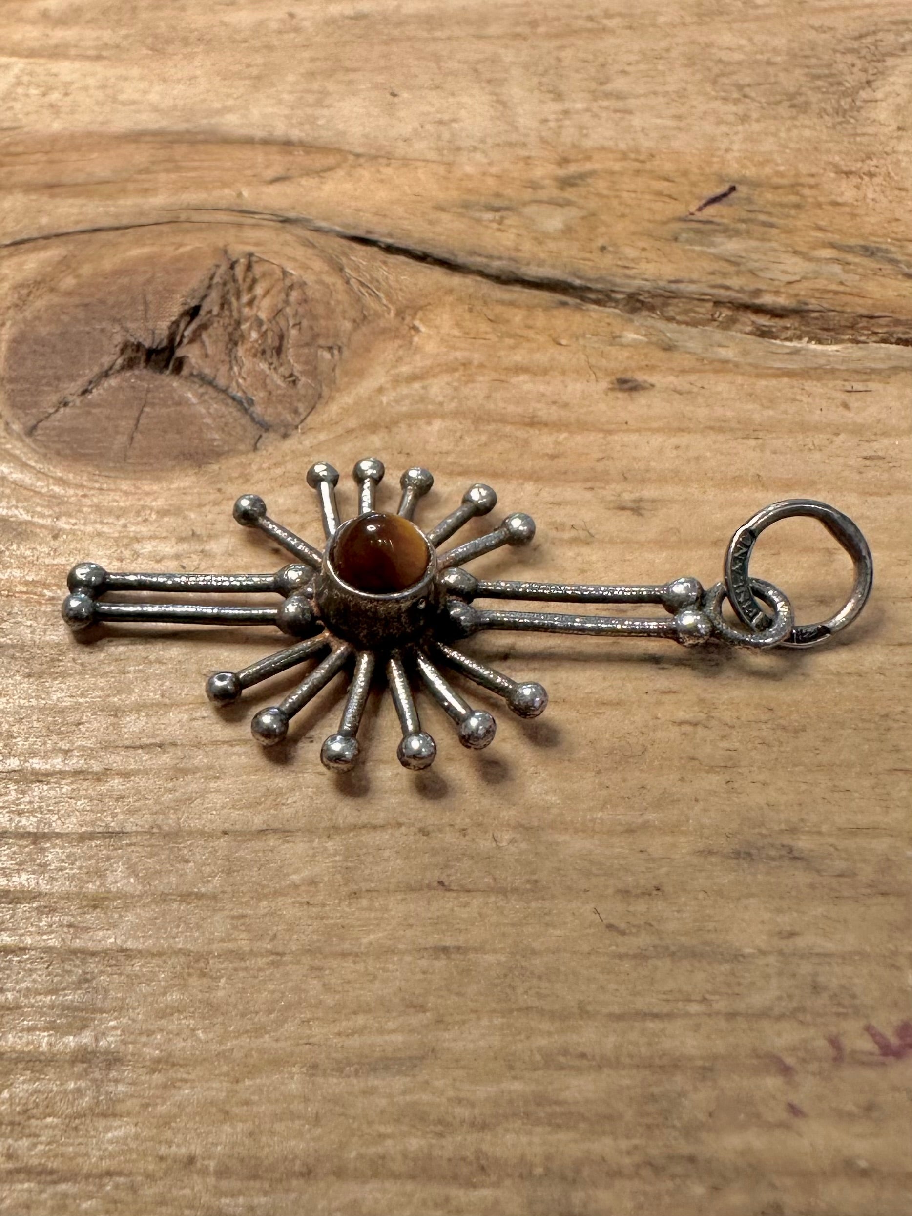 Vintage KULTASEPPA SALOVAARA Tigers Eye Abstract 925 Silver Pendant
