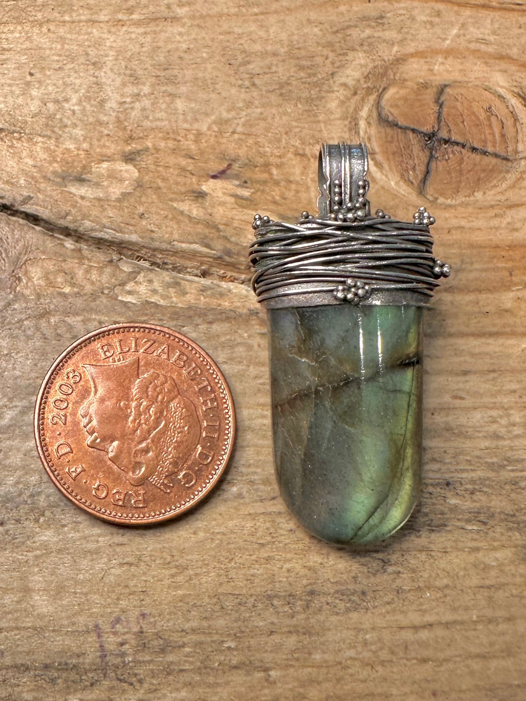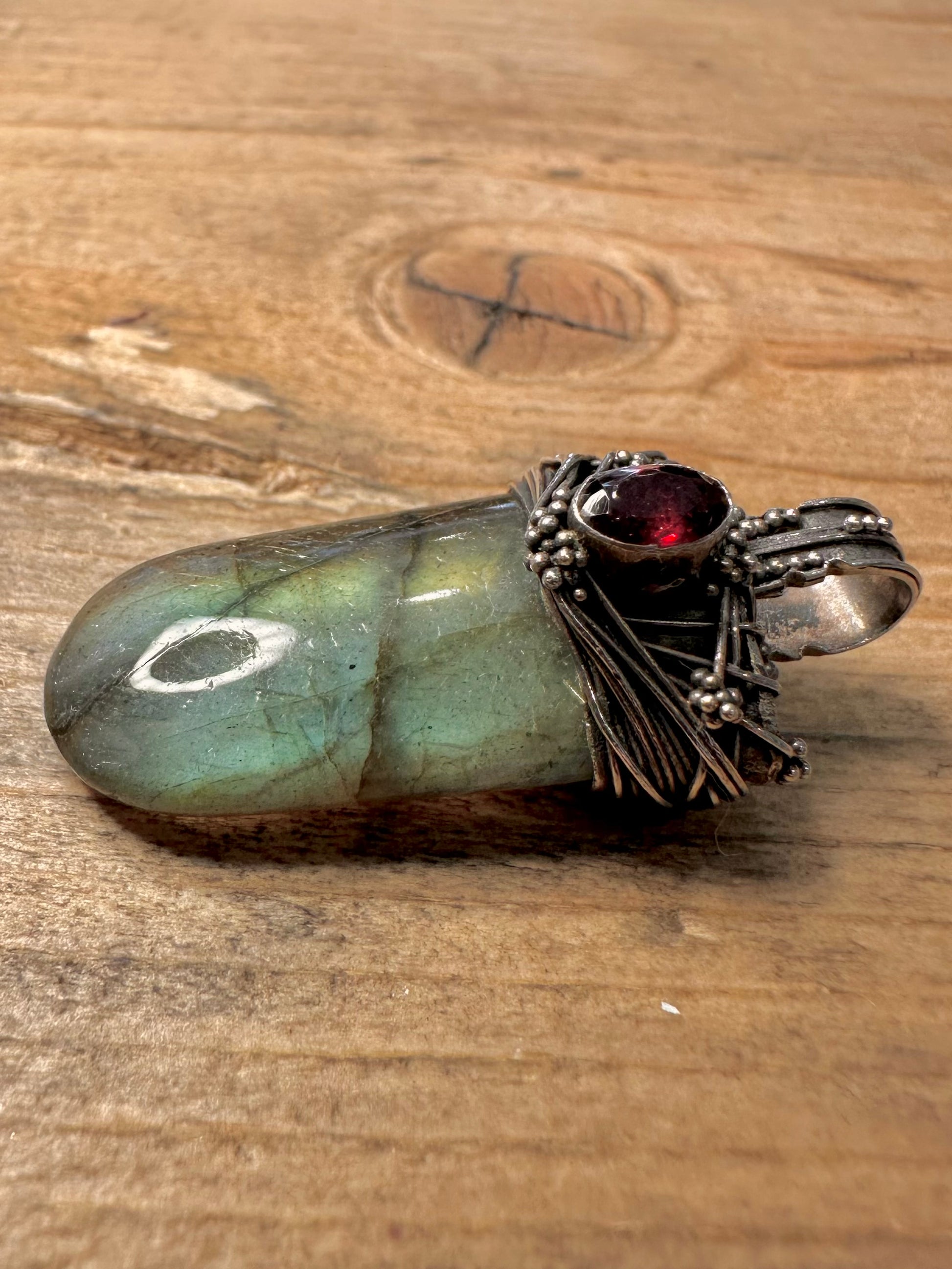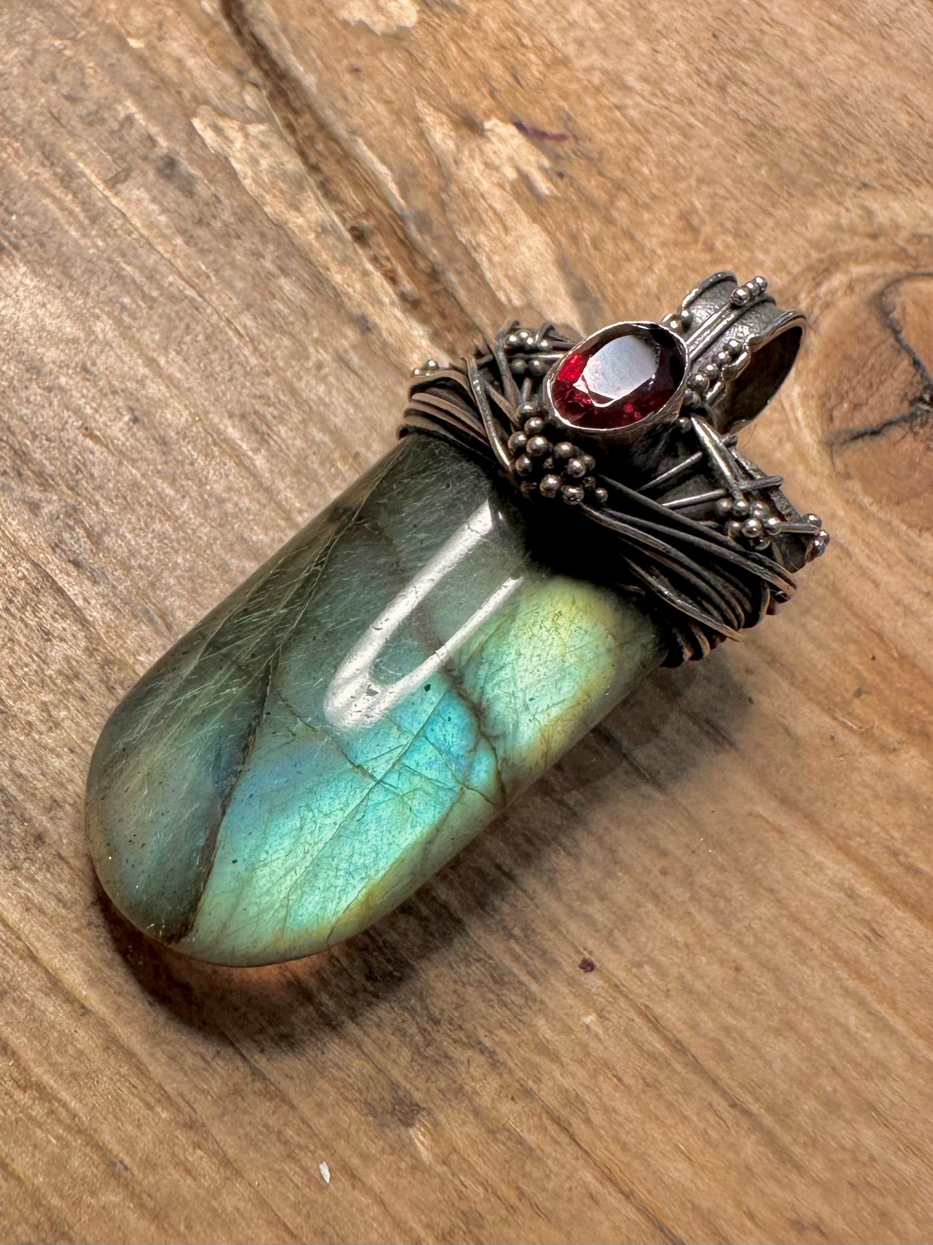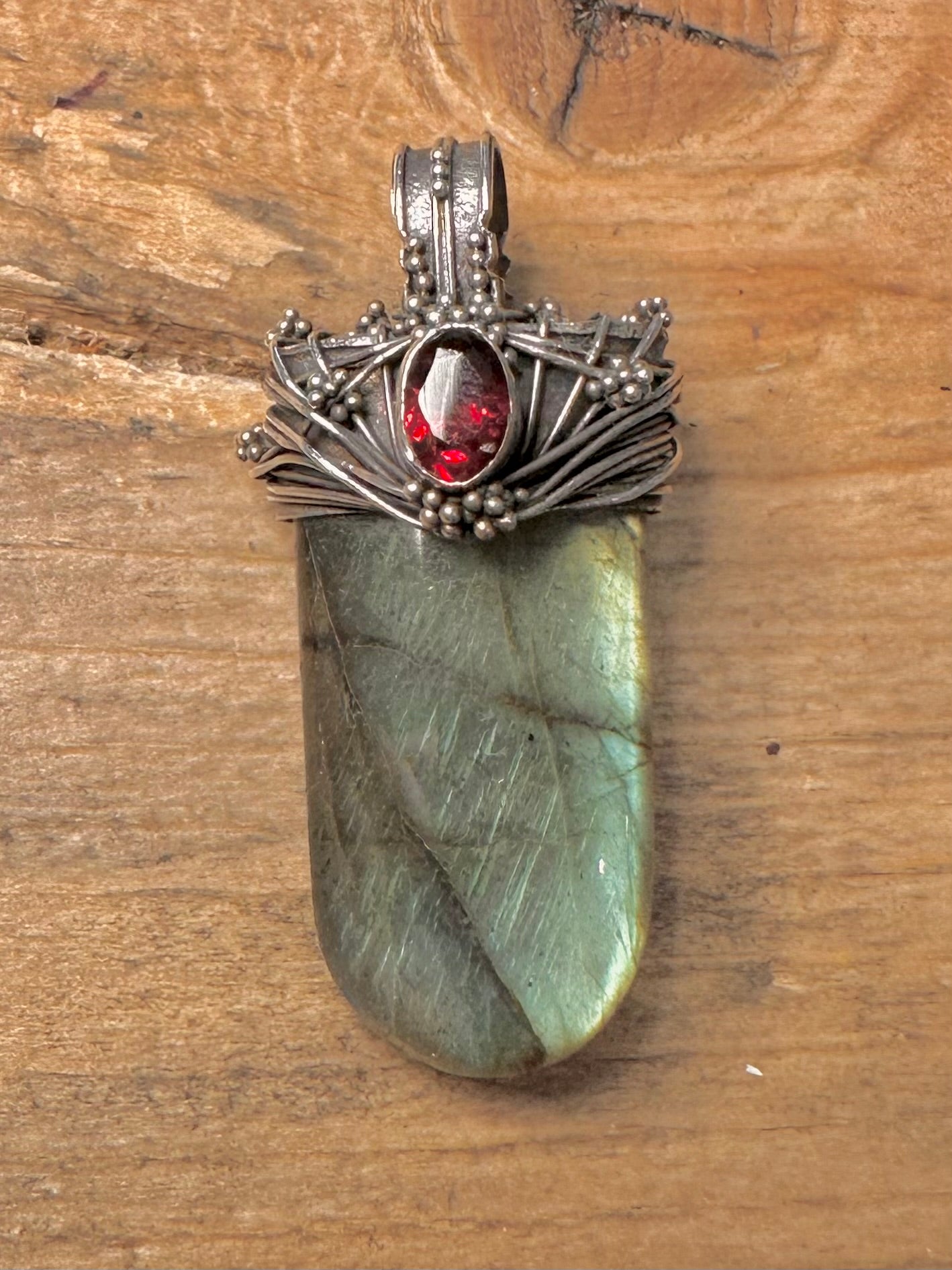 Vintage Labradorite and Garnet 925 Silver Pendant