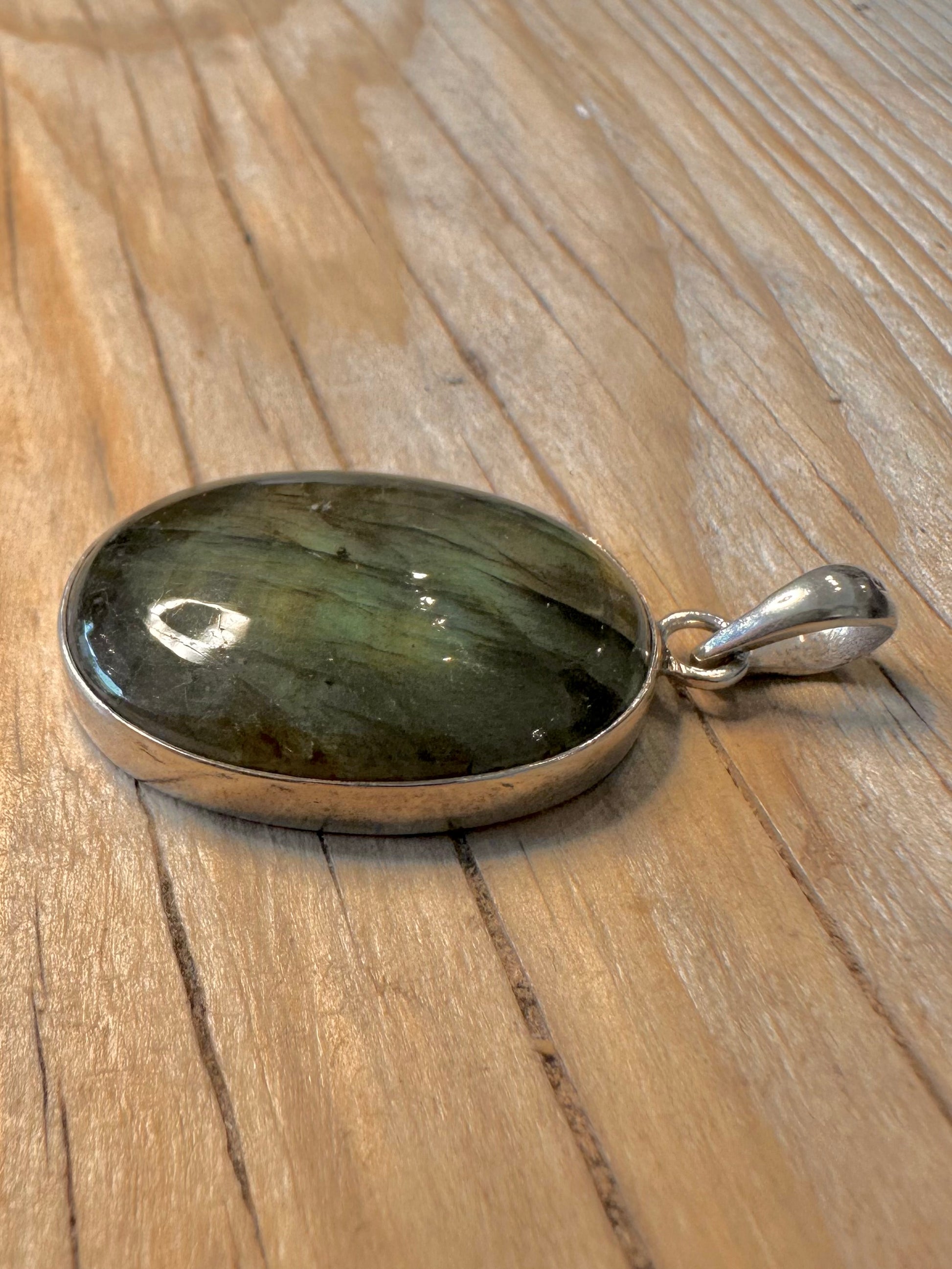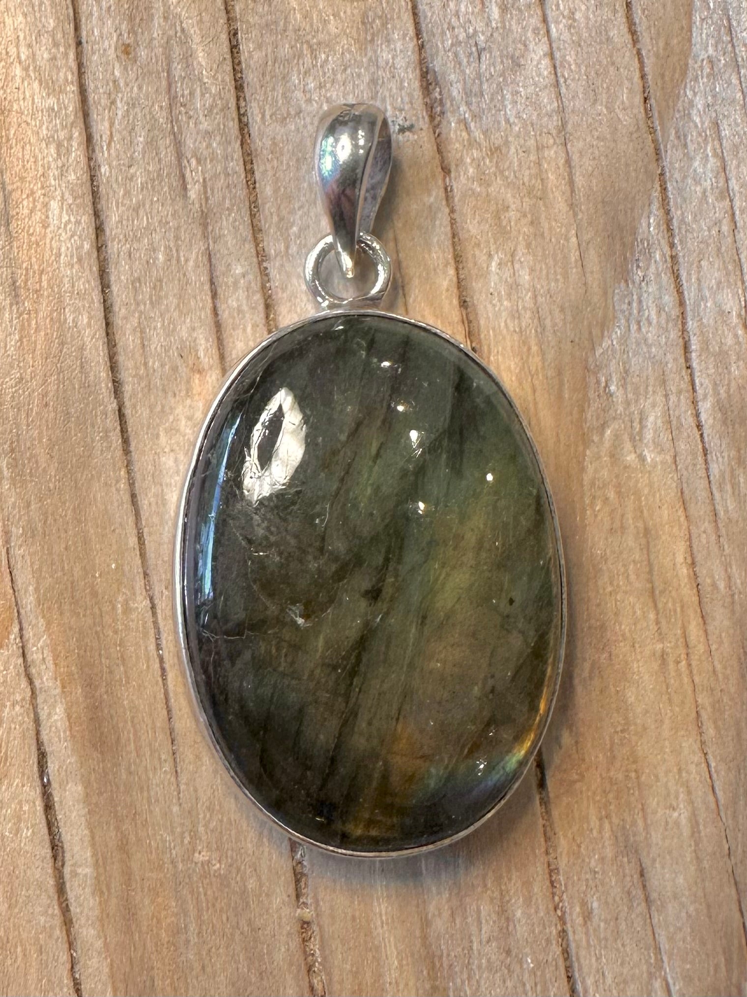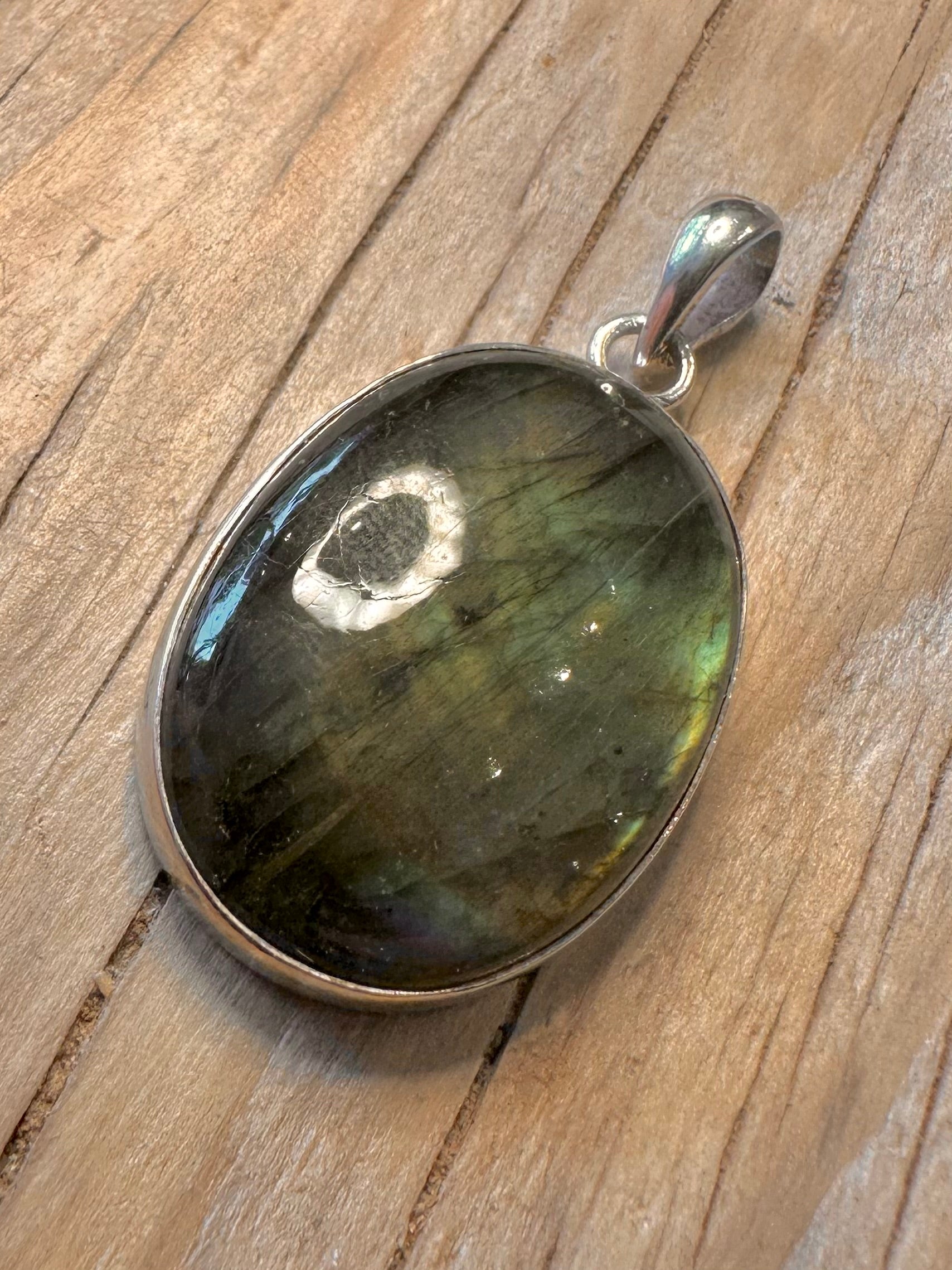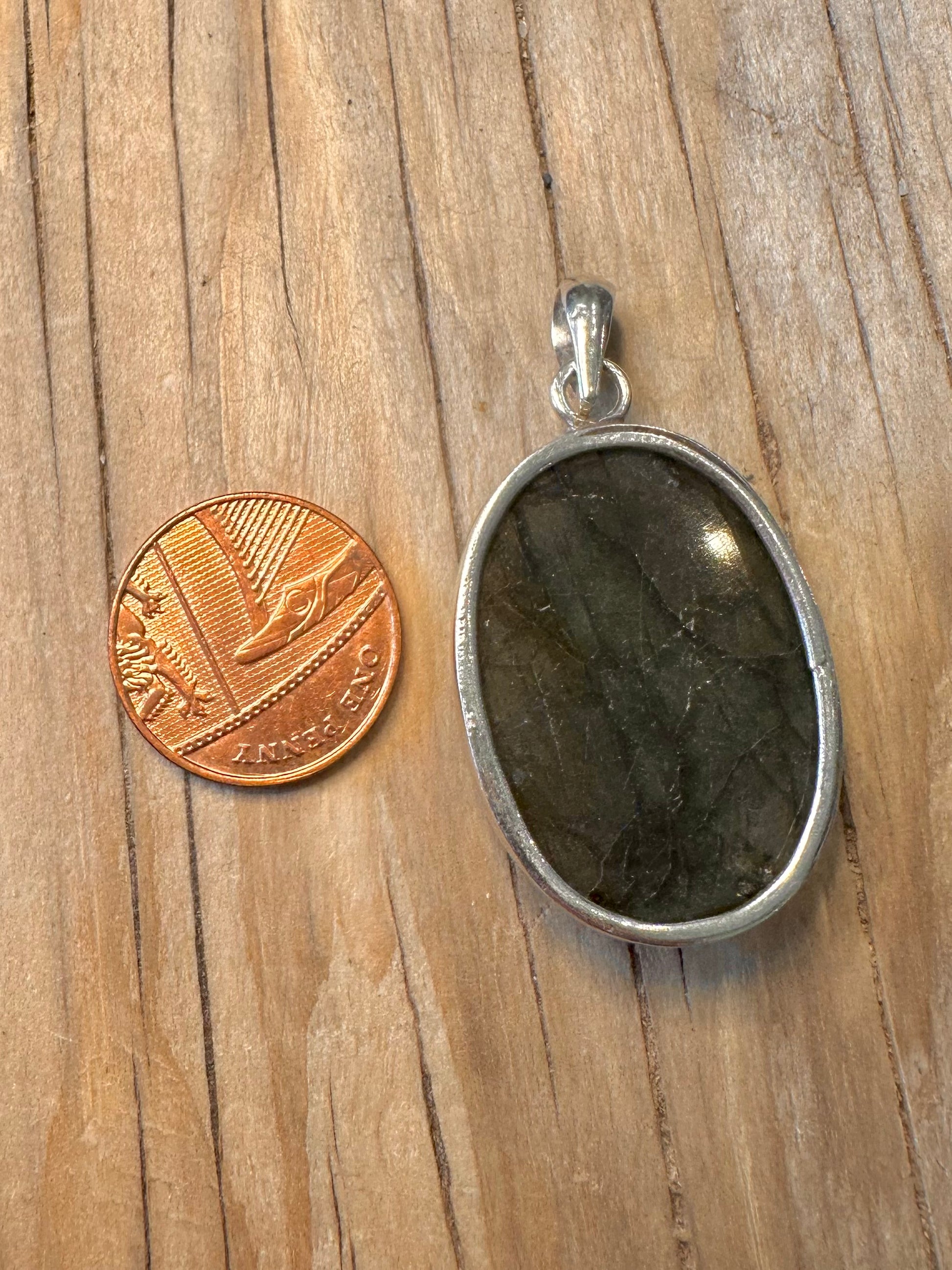 Vintage Labradorite Oval 925 Silver Pendant