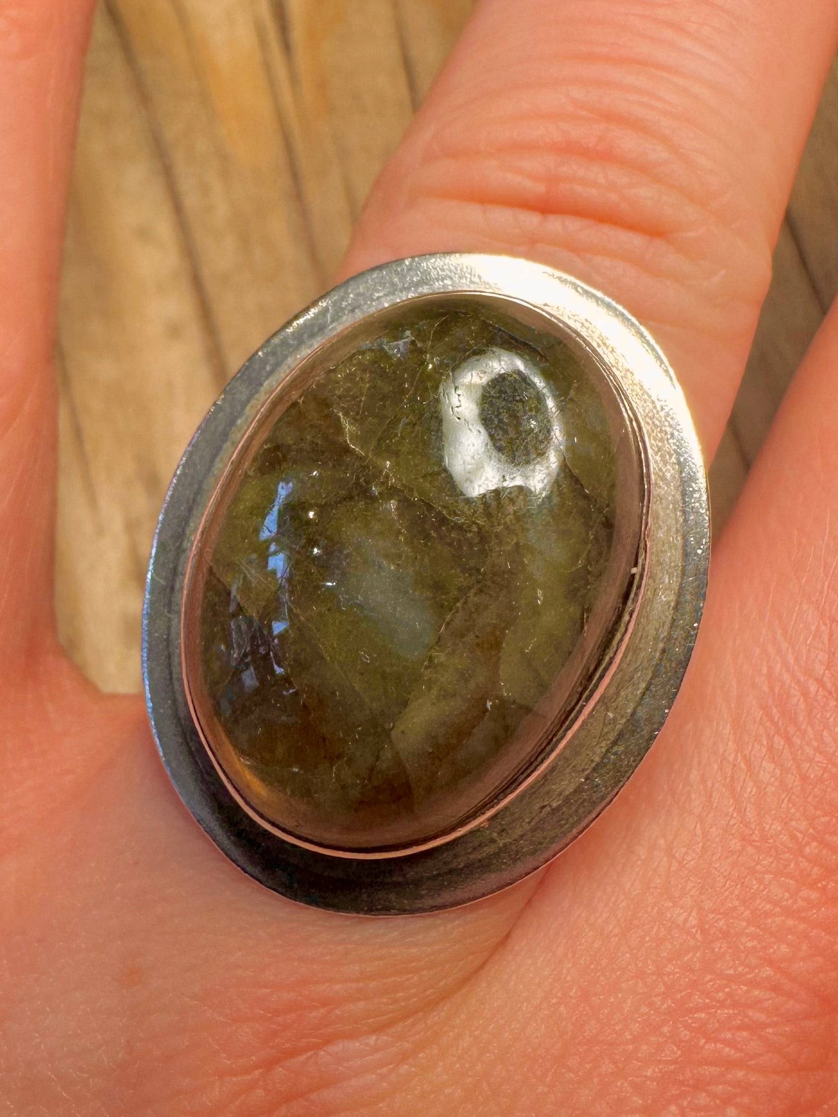 Vintage Labradorite Oval 925 Sterling Silver Size R Ring
