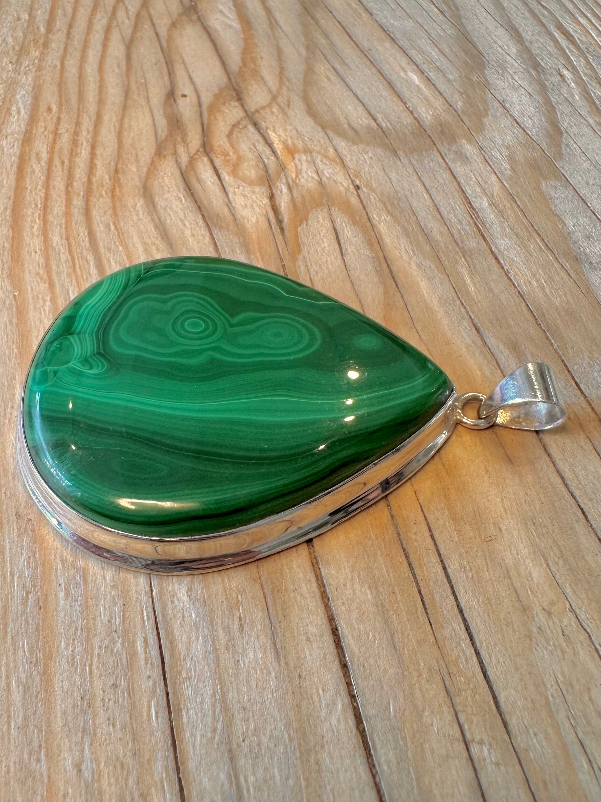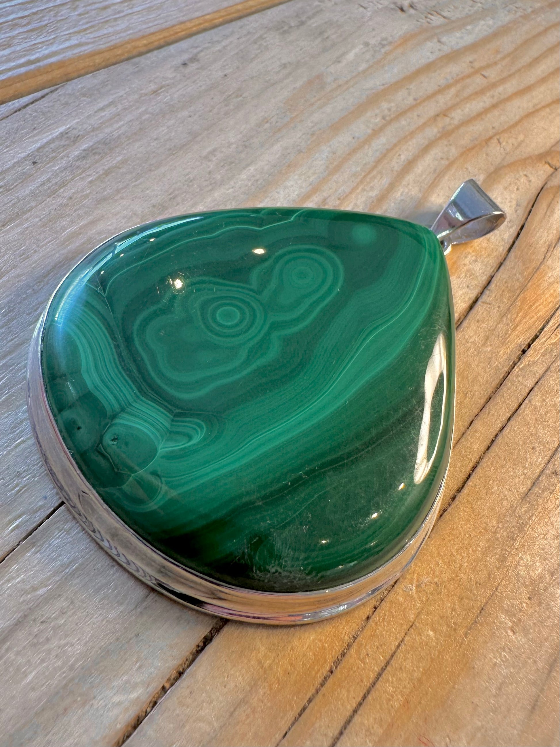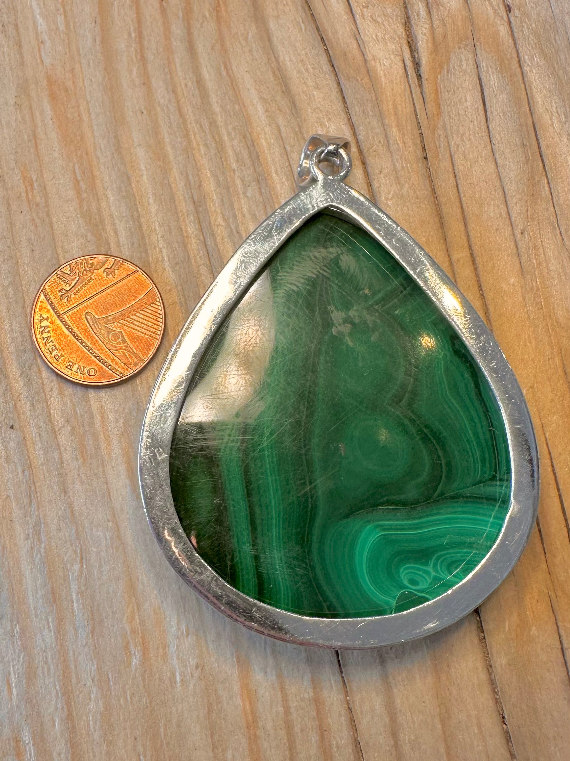 Vintage Large Malachite Triangle 925 Silver Pendant