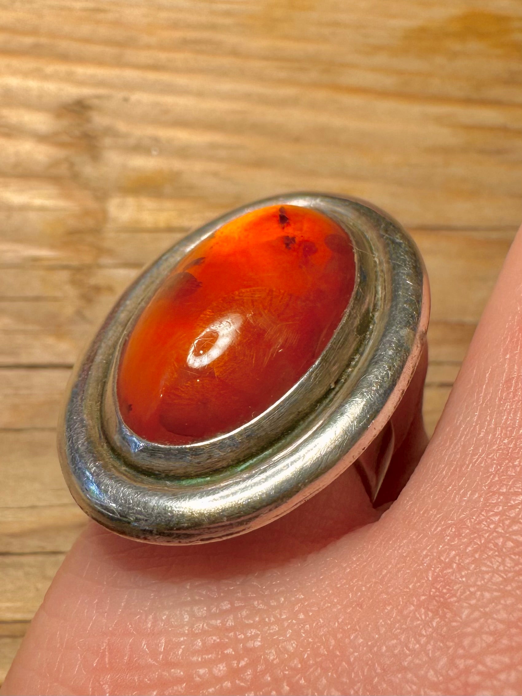 Vintage Large Oval Amber Polish 925 Sterling Silver Size N Ring