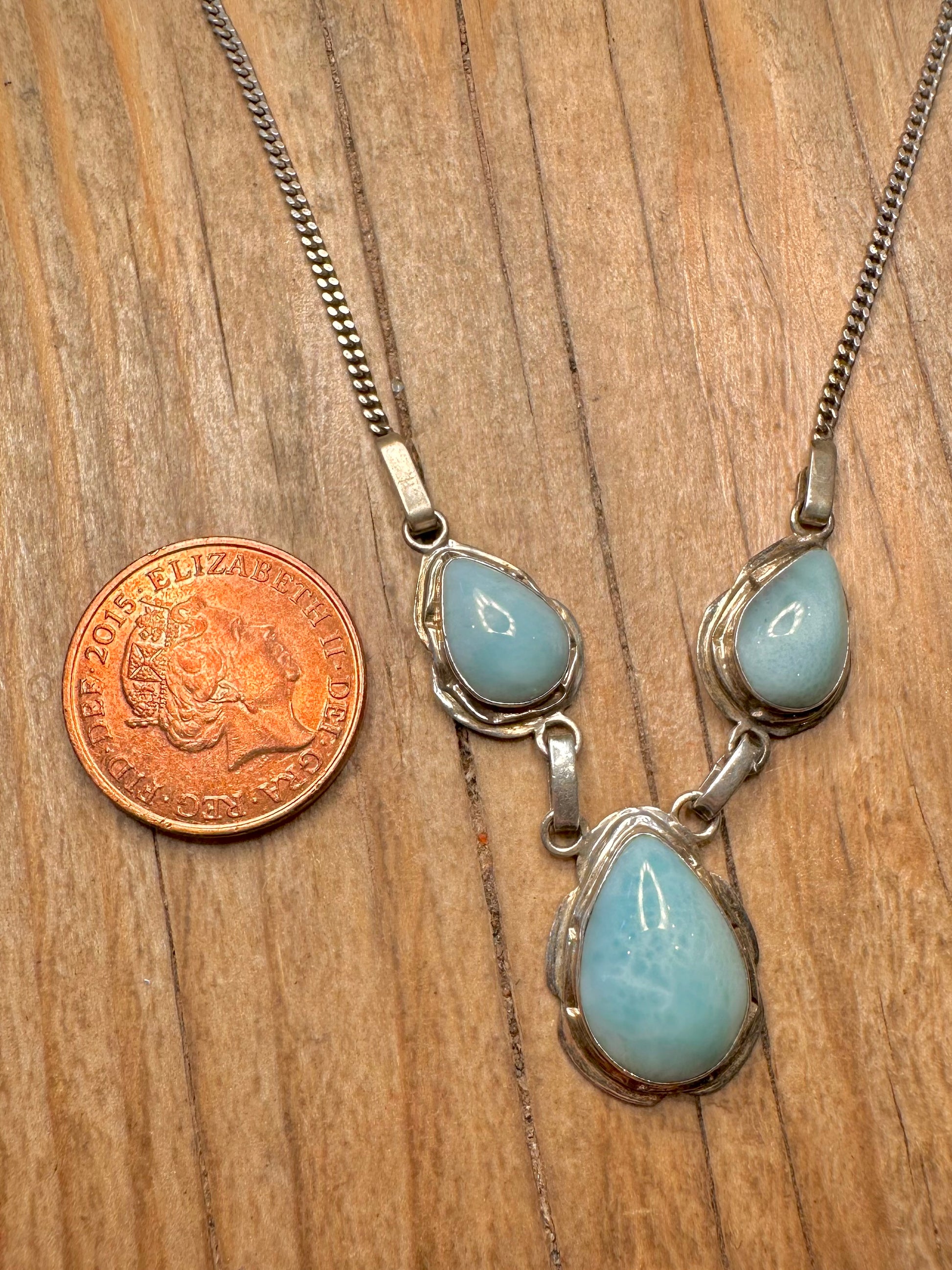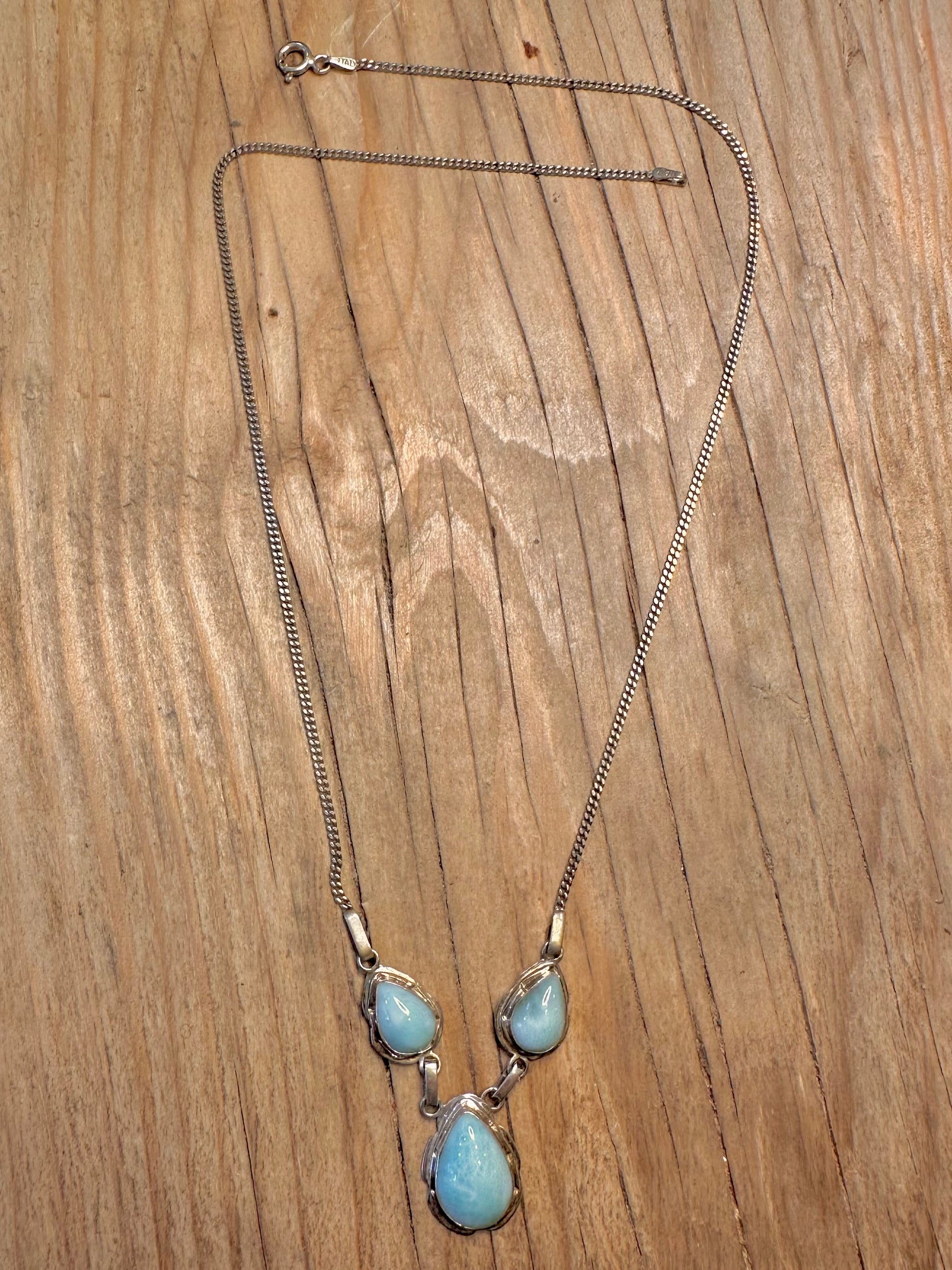 Vintage Larimar Teardrops Curb Chain 925 Sterling Silver 18.2 inch Necklace