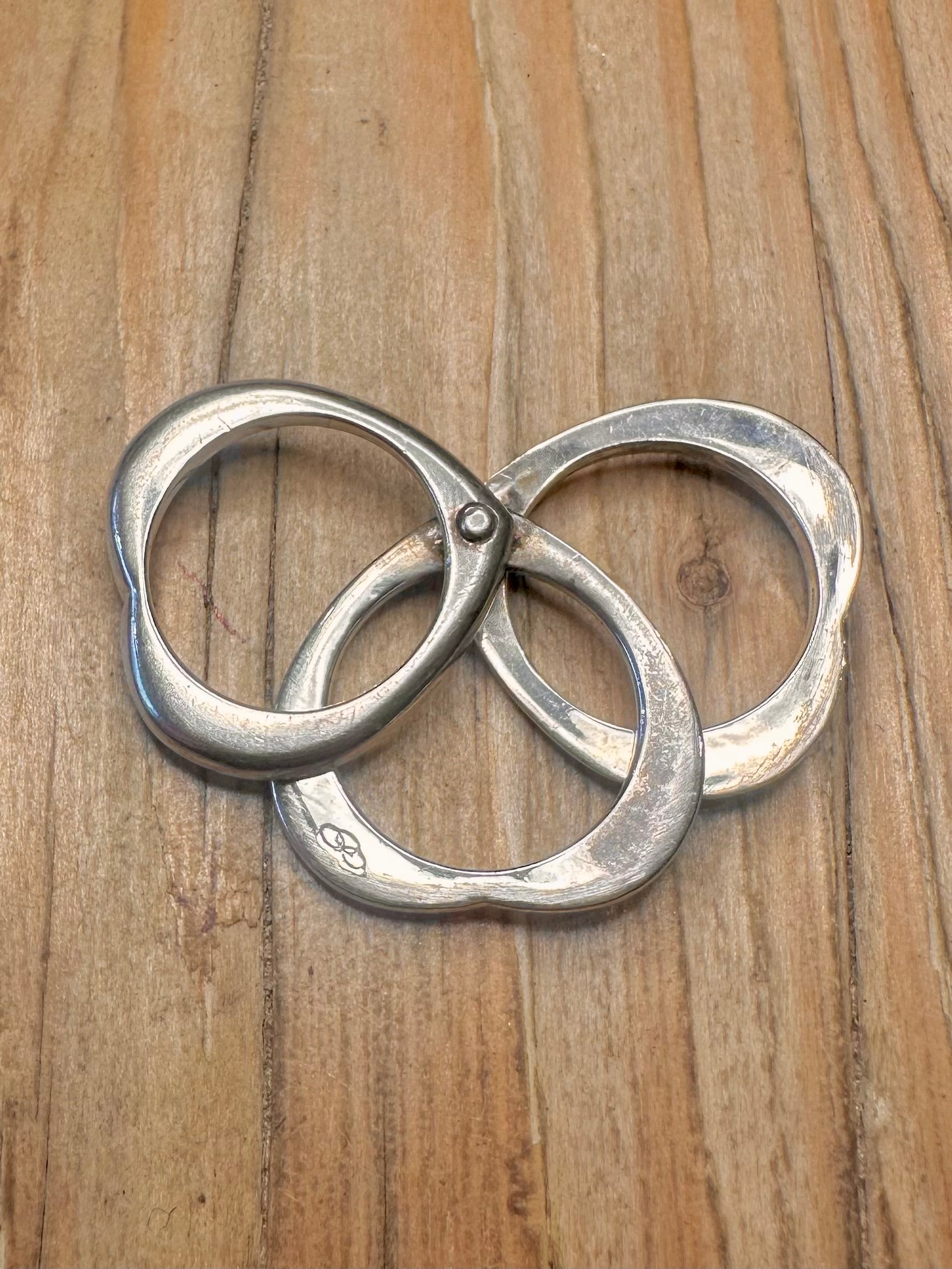 Vintage Links of London Three Heart Layer 925 Sterling Silver Size P Ring