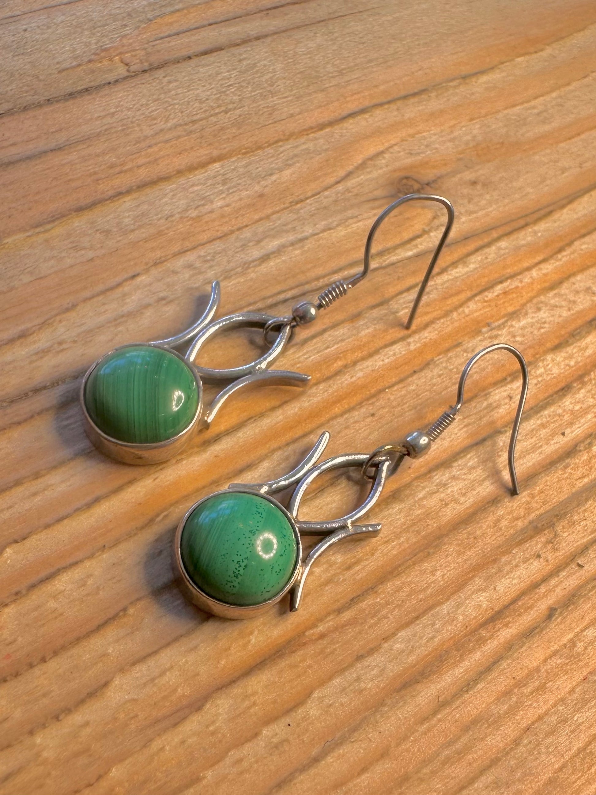 Vintage Malachite Dangle 925 Sterling Silver Earrings