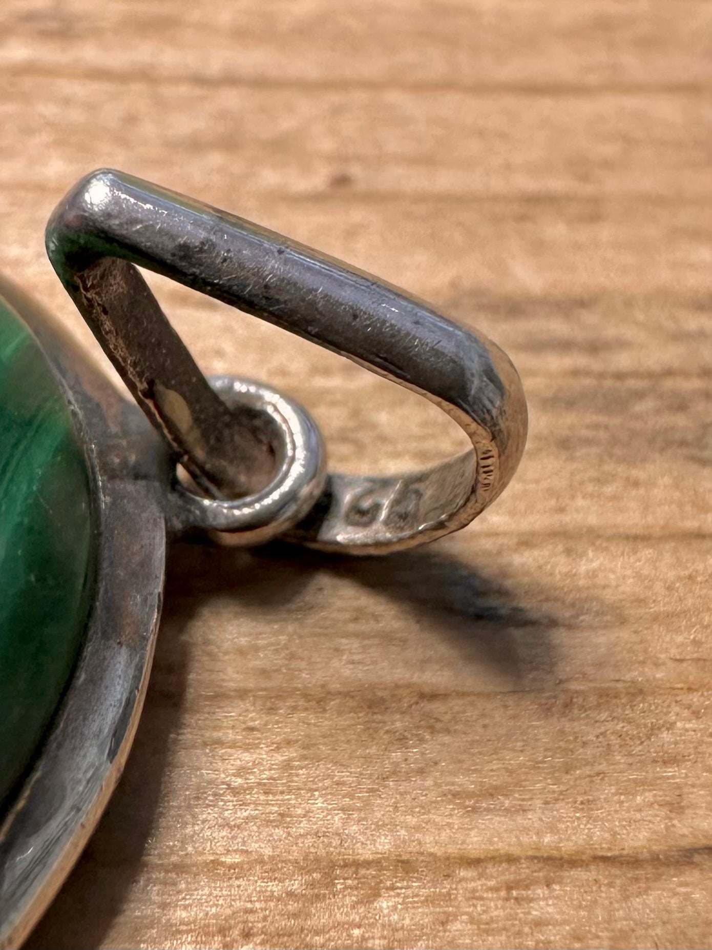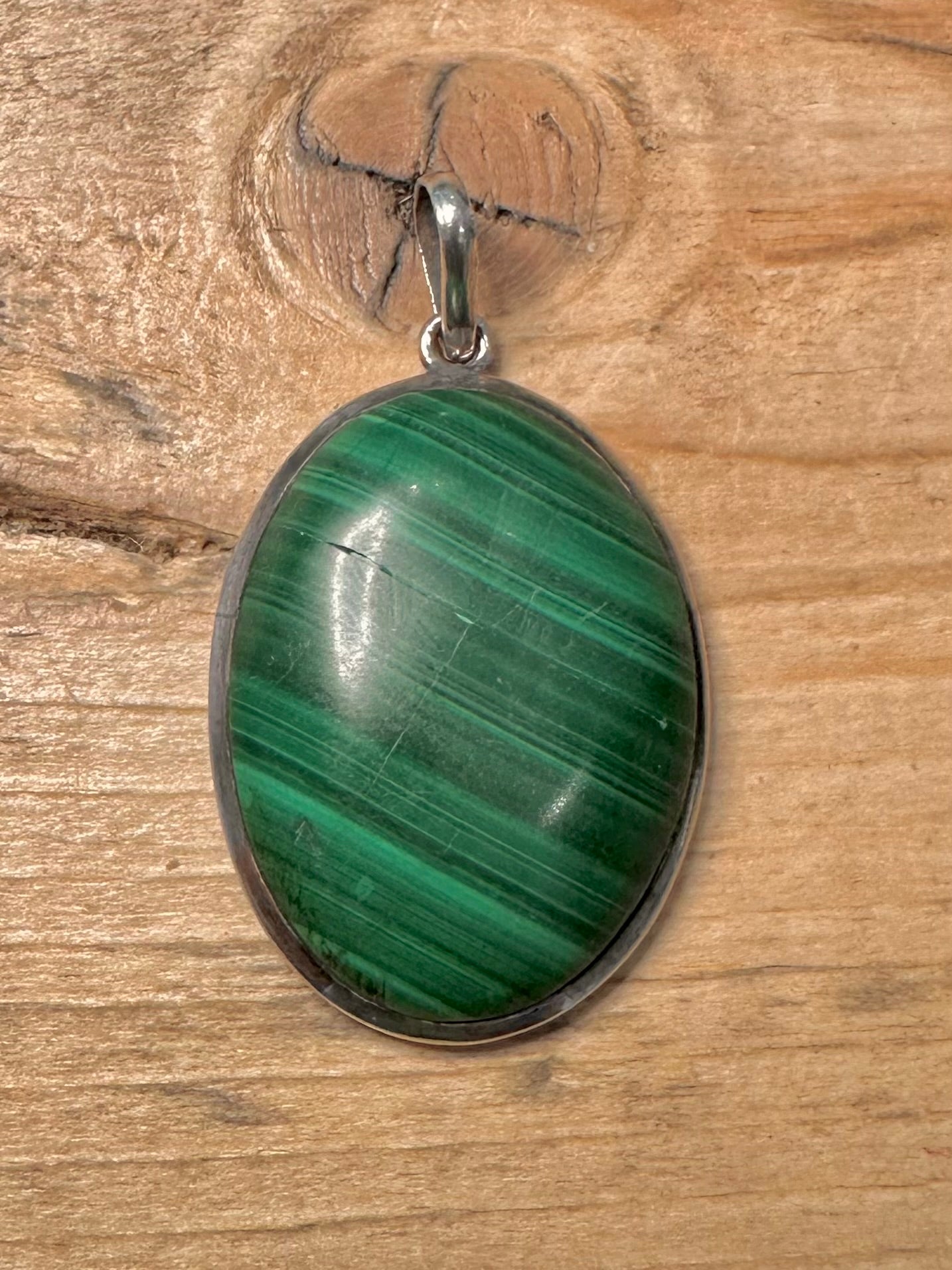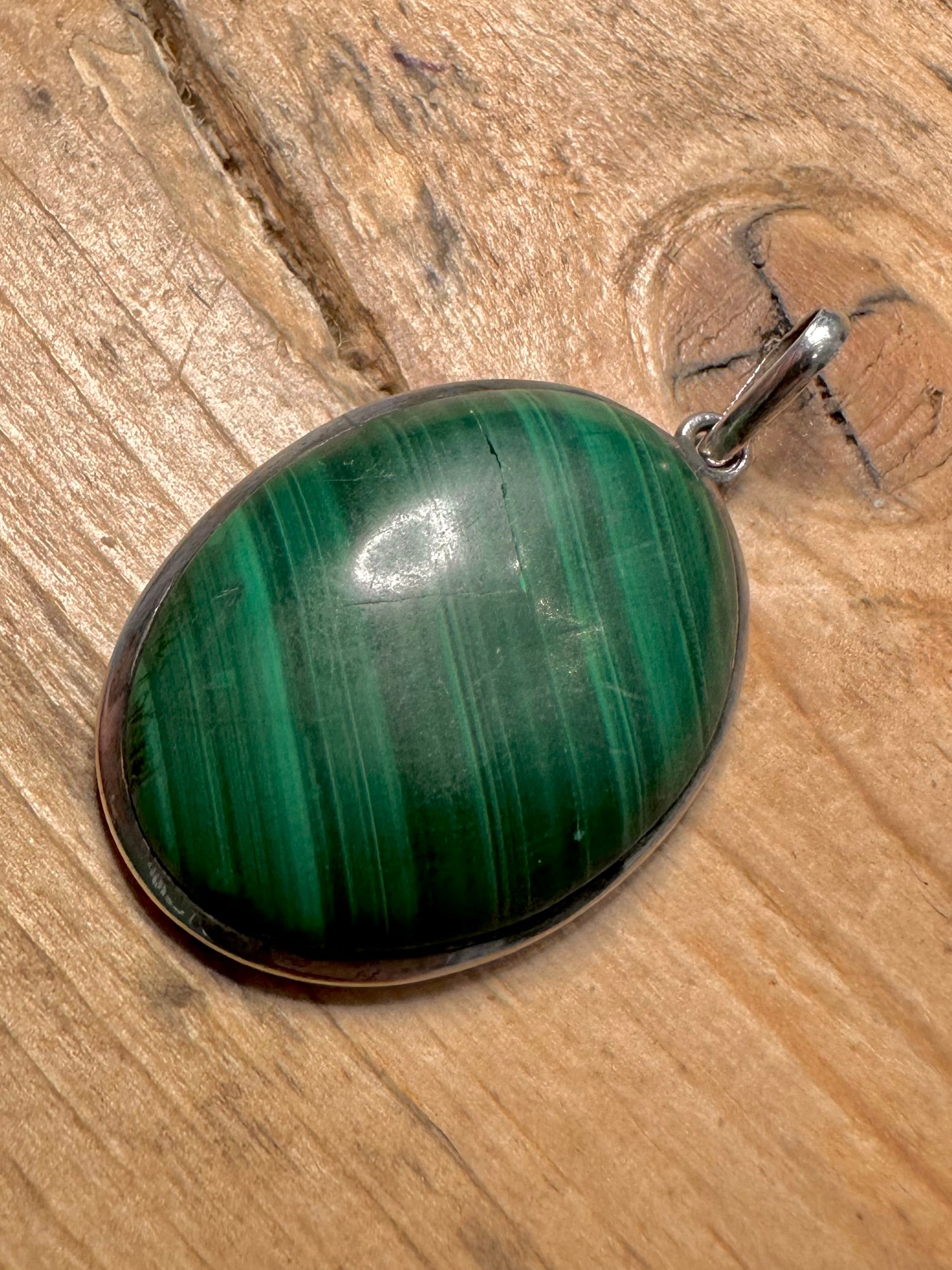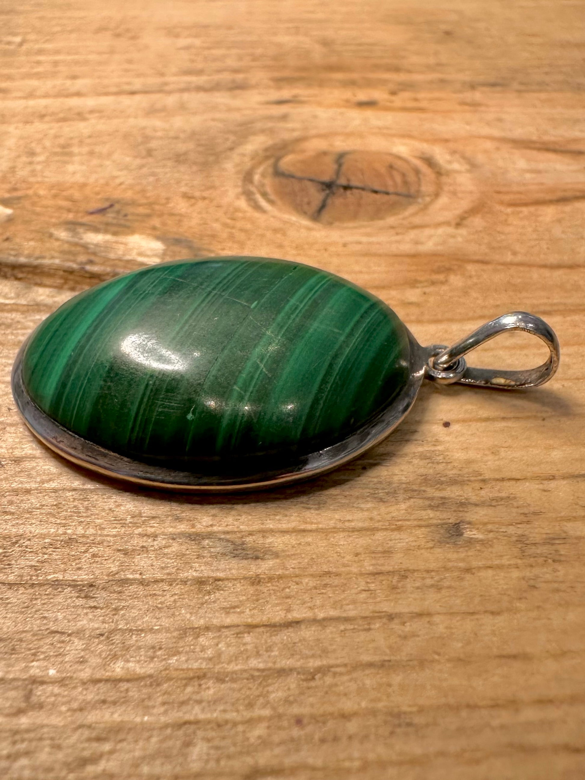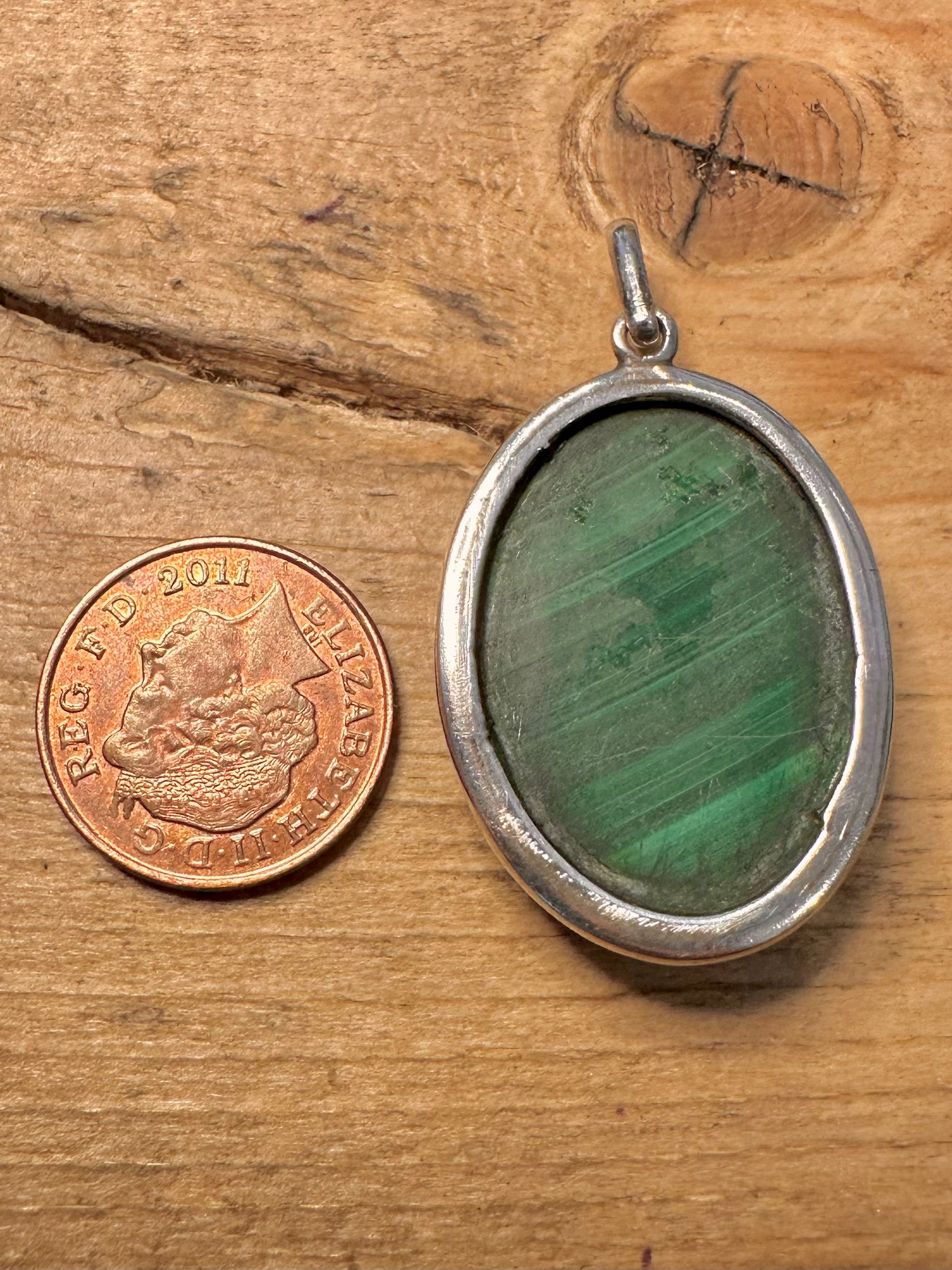 Vintage Malachite Oval 925 Silver Pendant