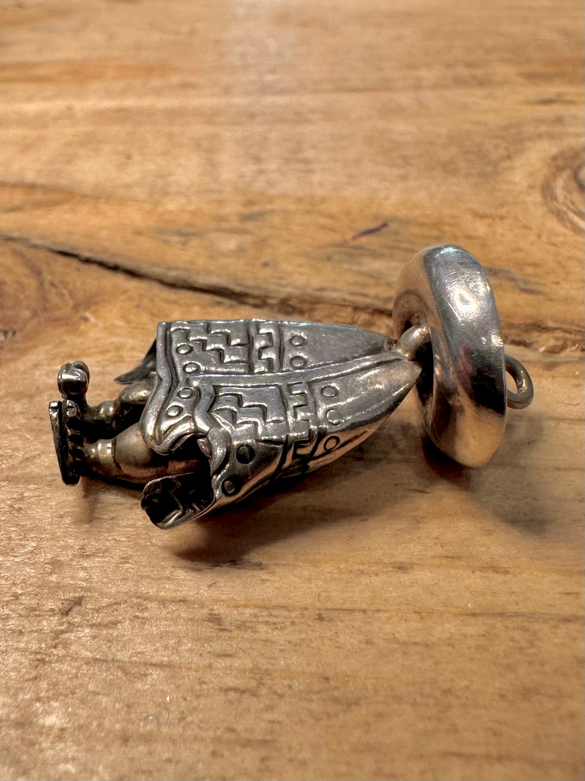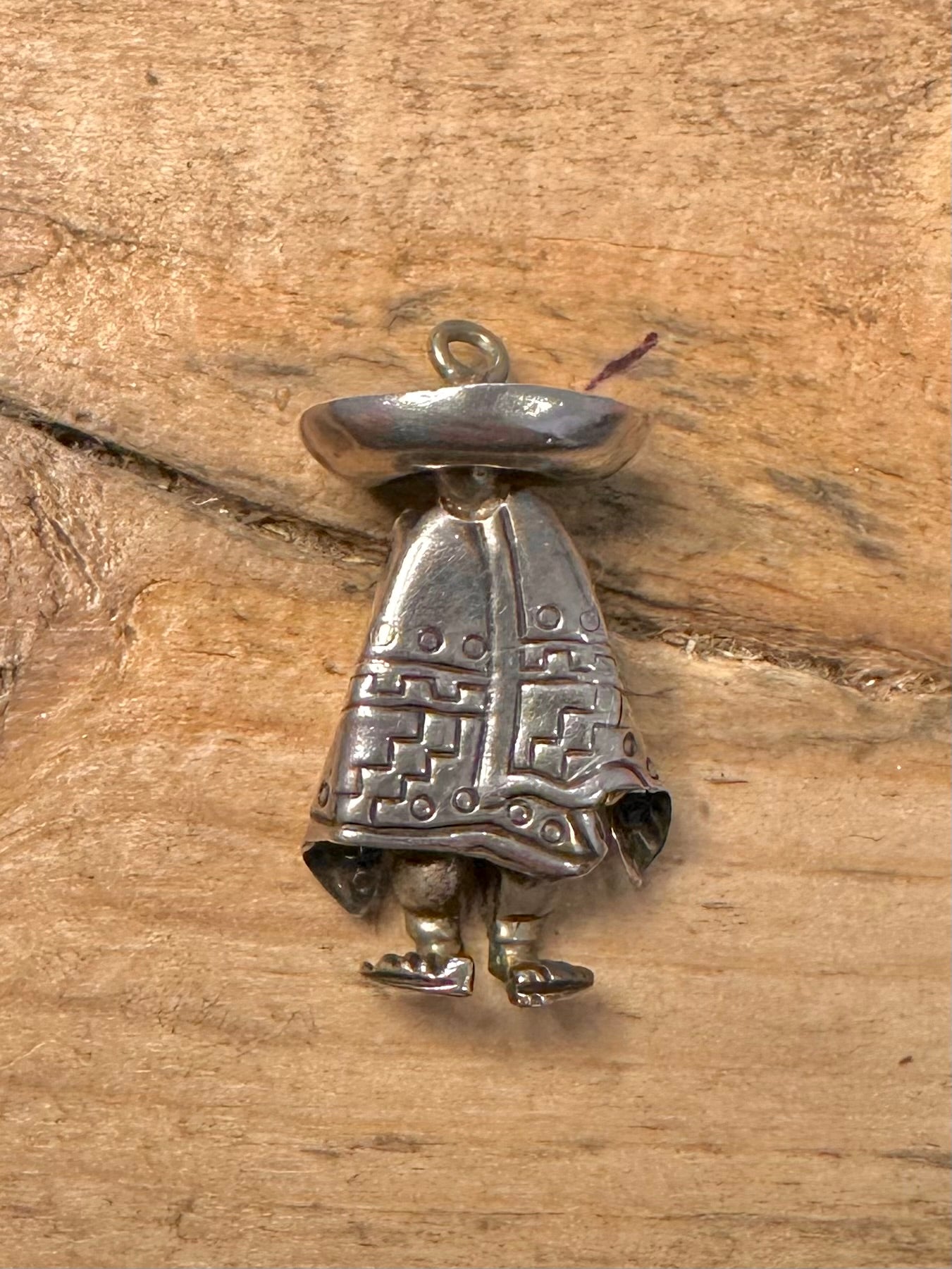 Vintage Mexican Man in Poncho 925 Silver Pendant