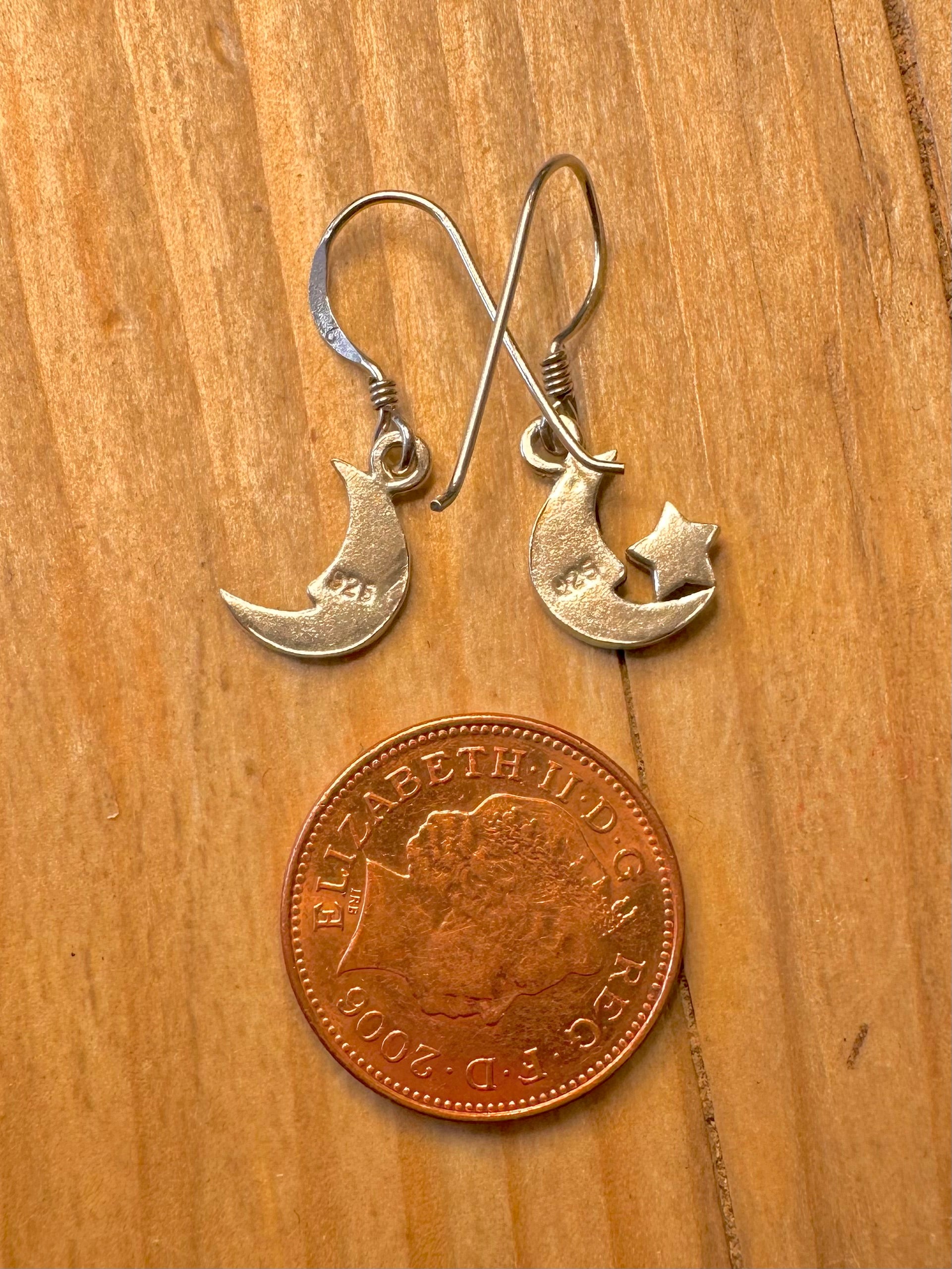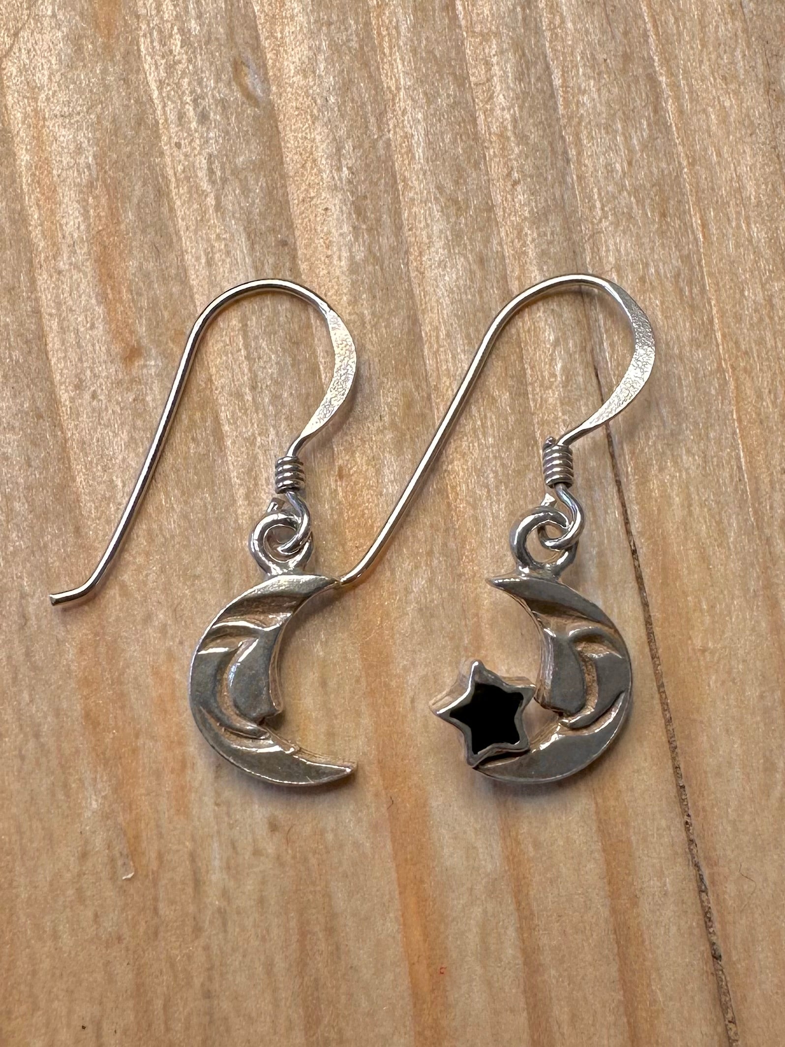 Vintage Moon Dangle 925 Sterling Silver Earrings