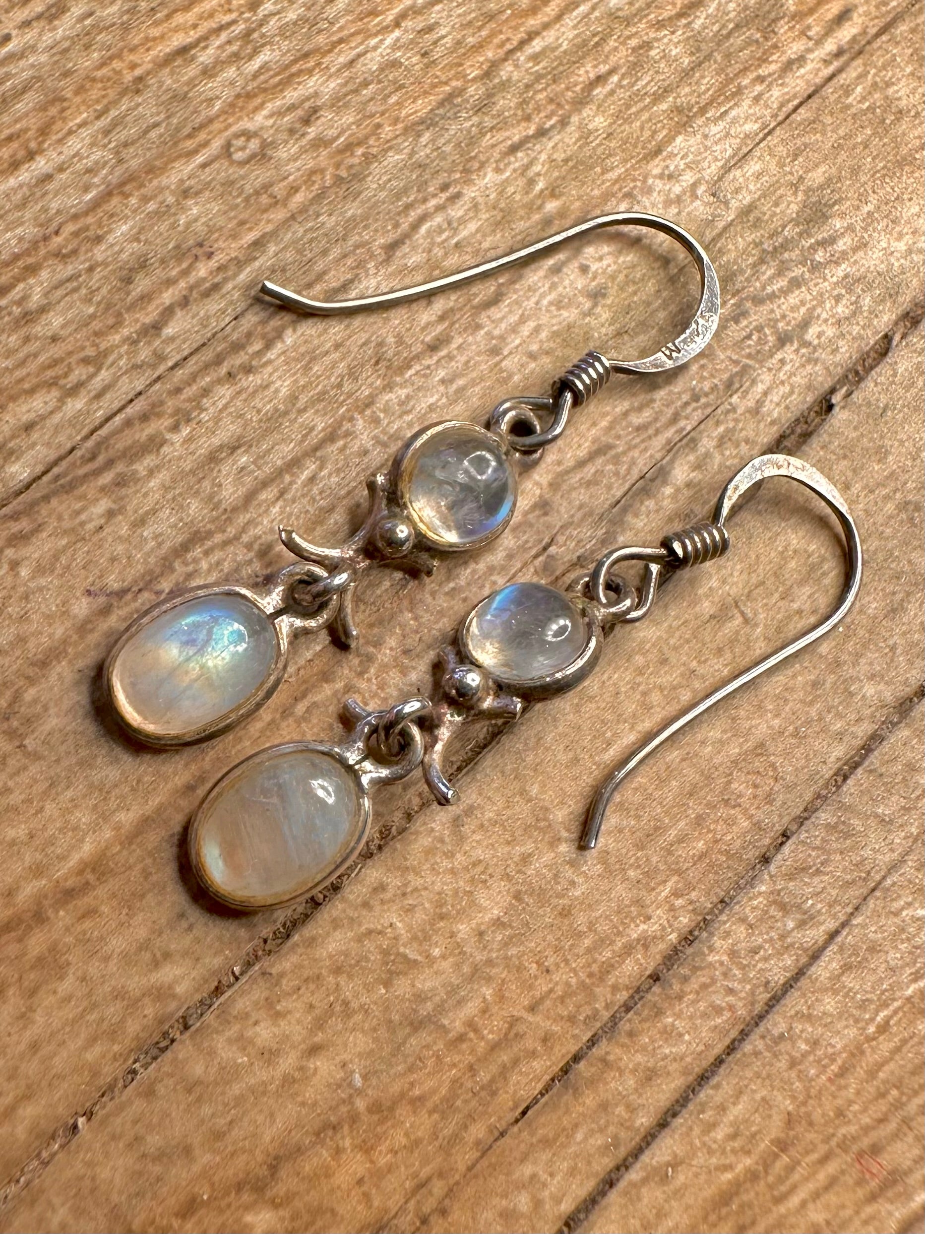 Vintage Moonstone Dangle 925 Sterling Silver Earrings