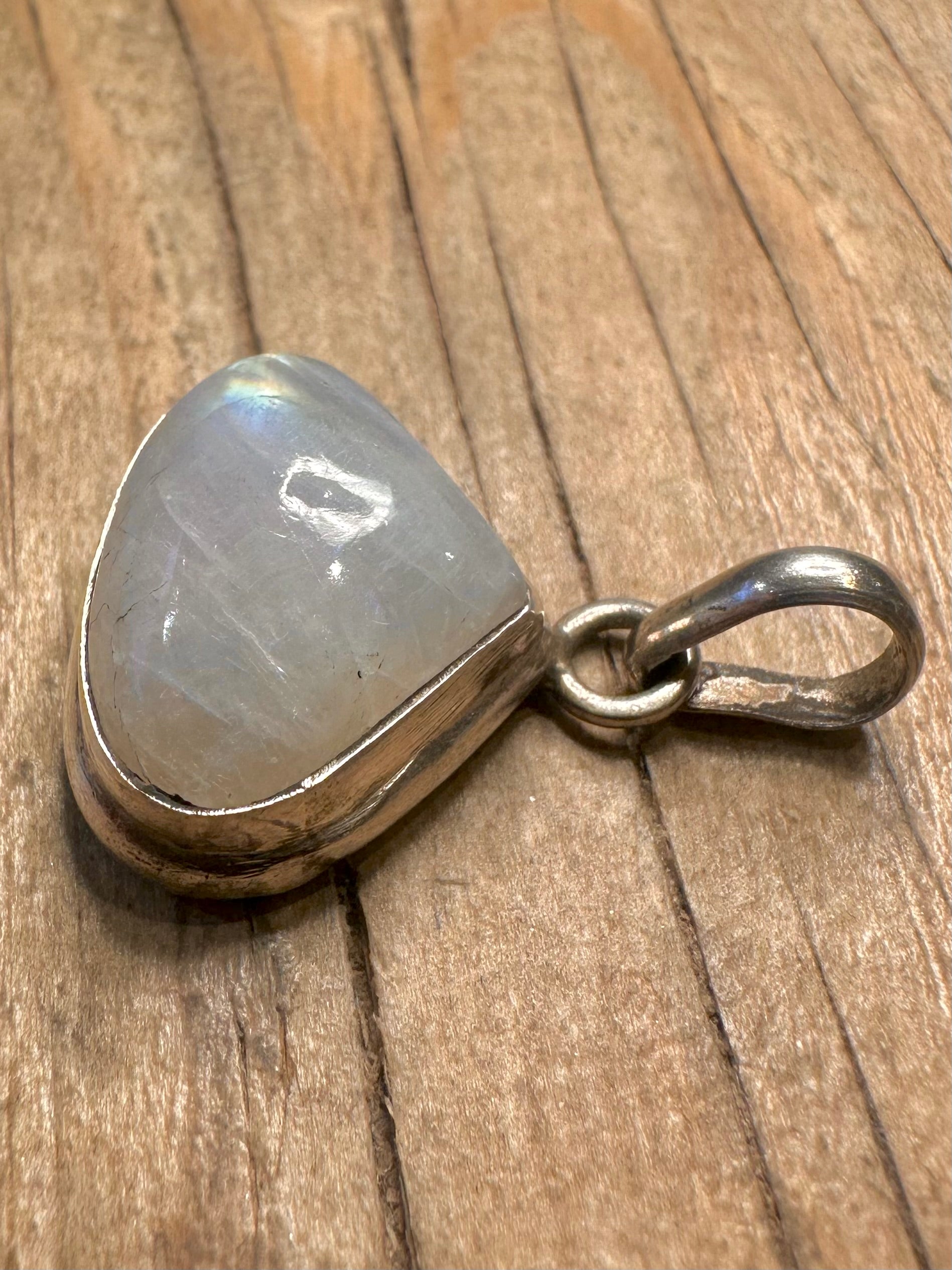 Vintage Moonstone Triangle 925 Sterling Silver Pendant