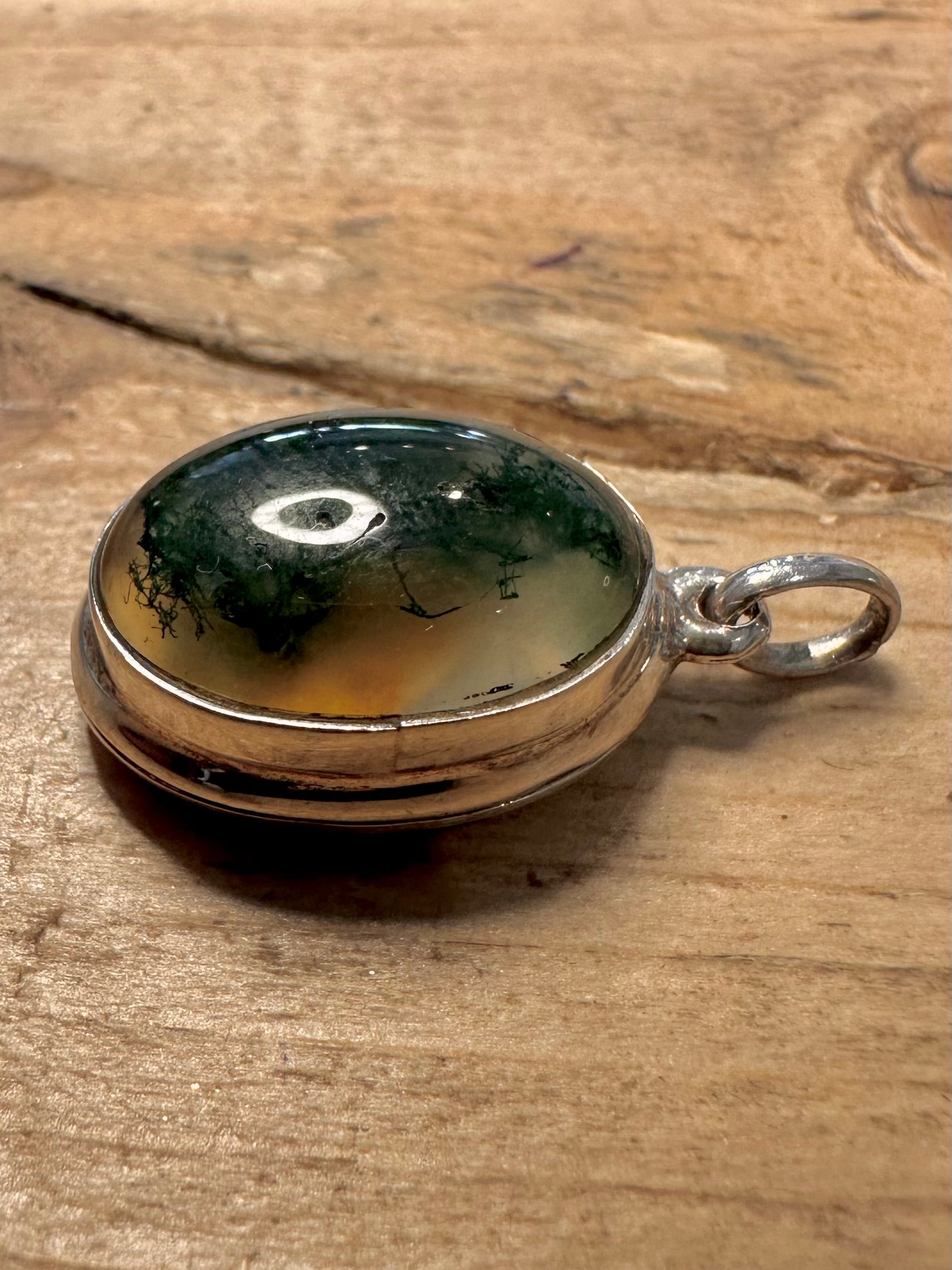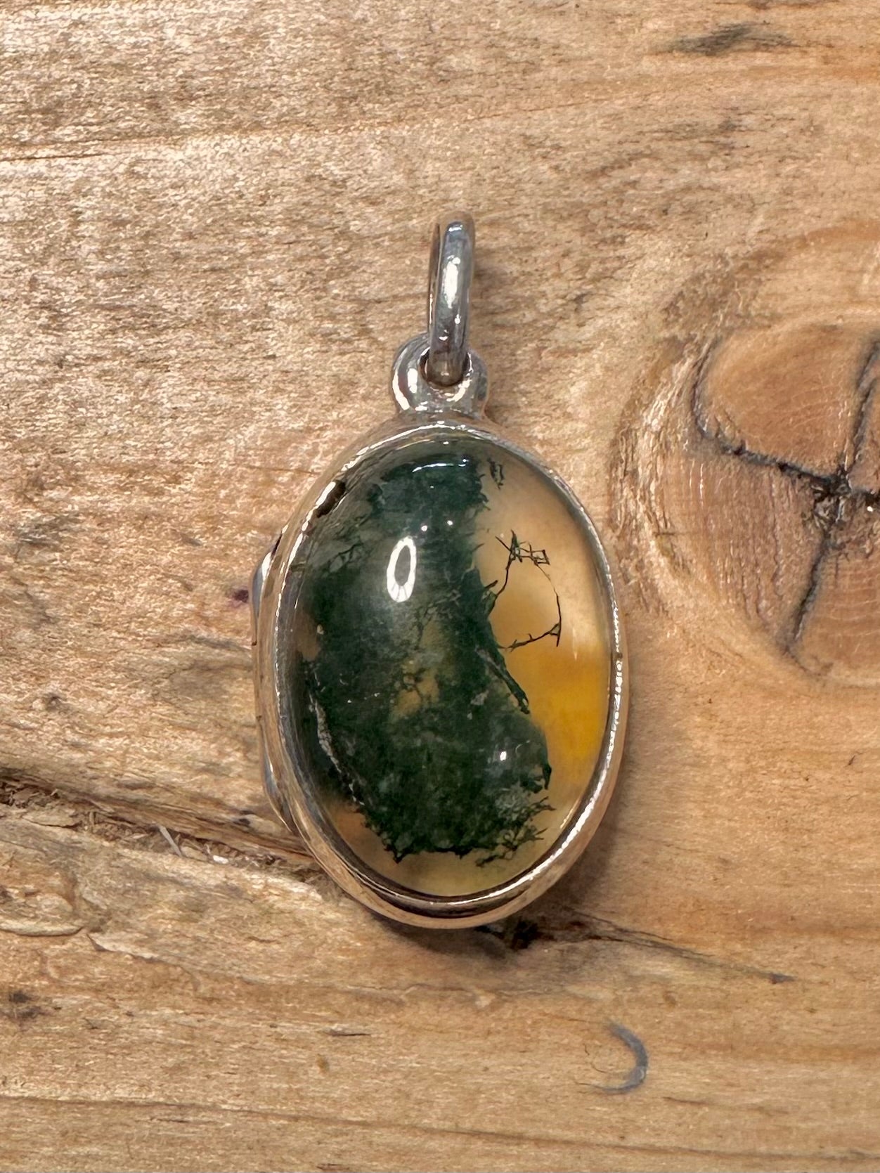Vintage Moss Agate Locket 925 Silver Pendant