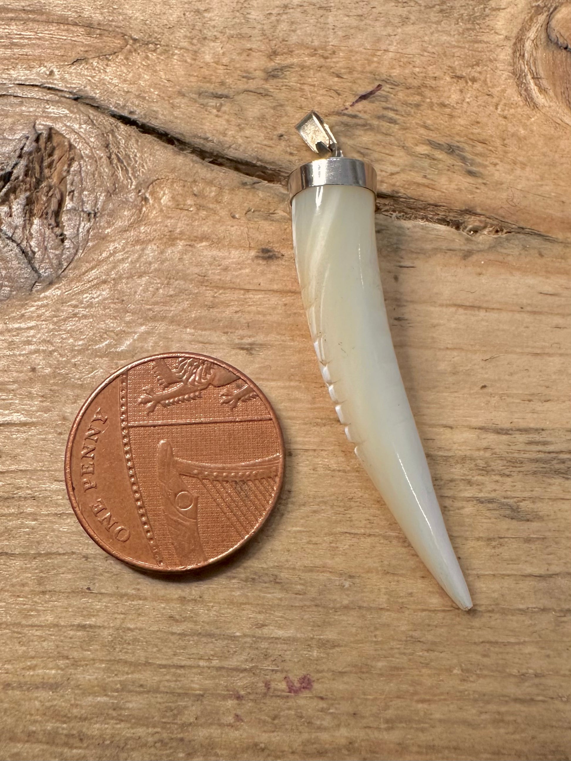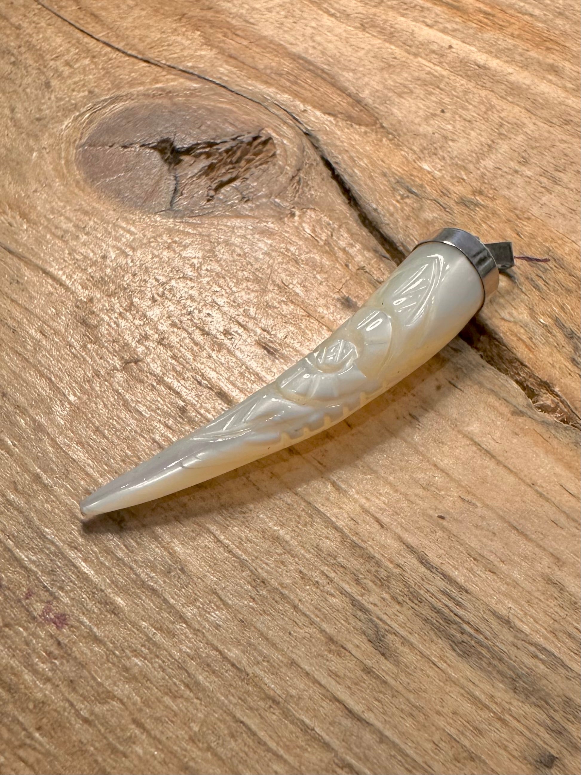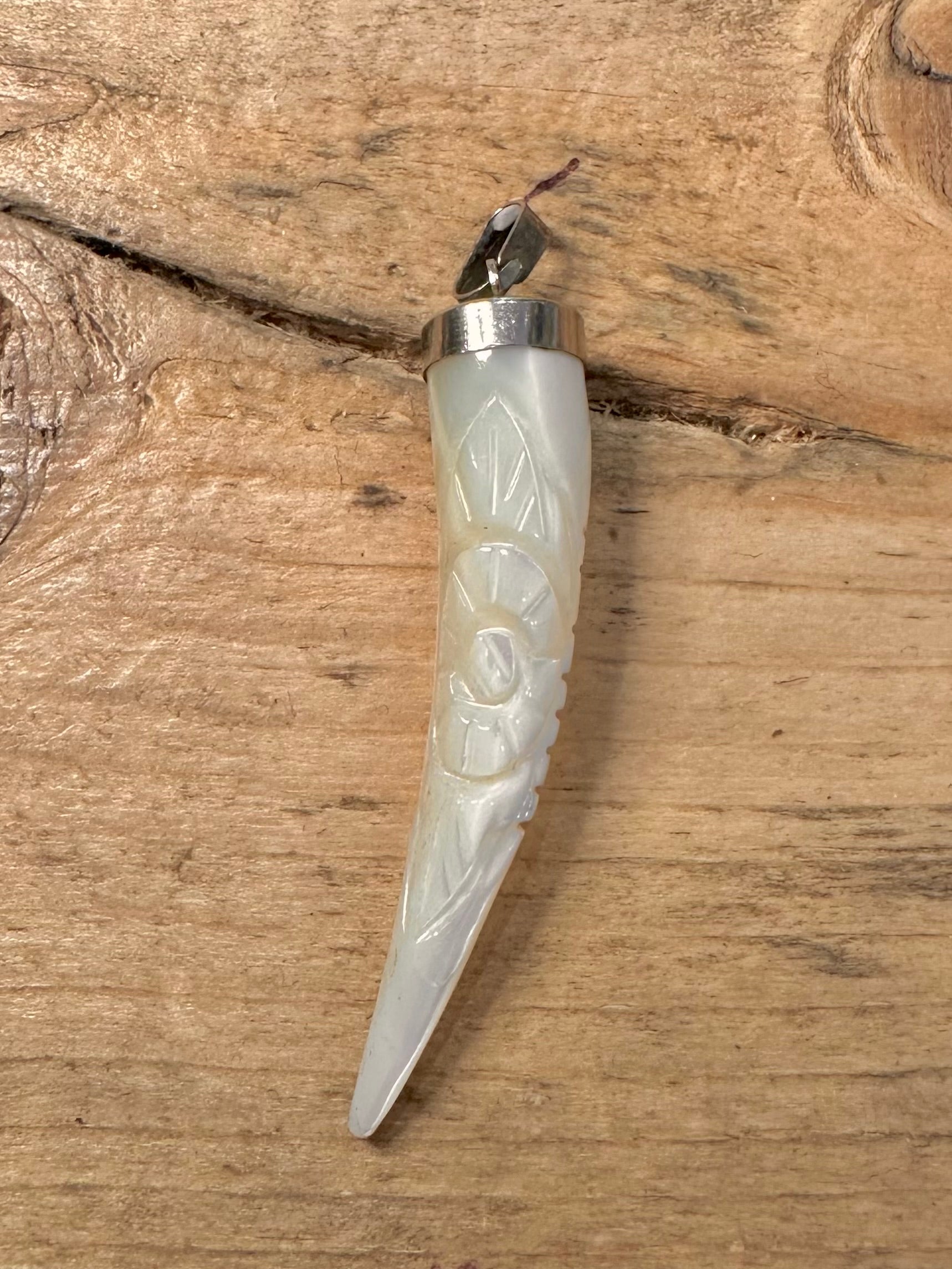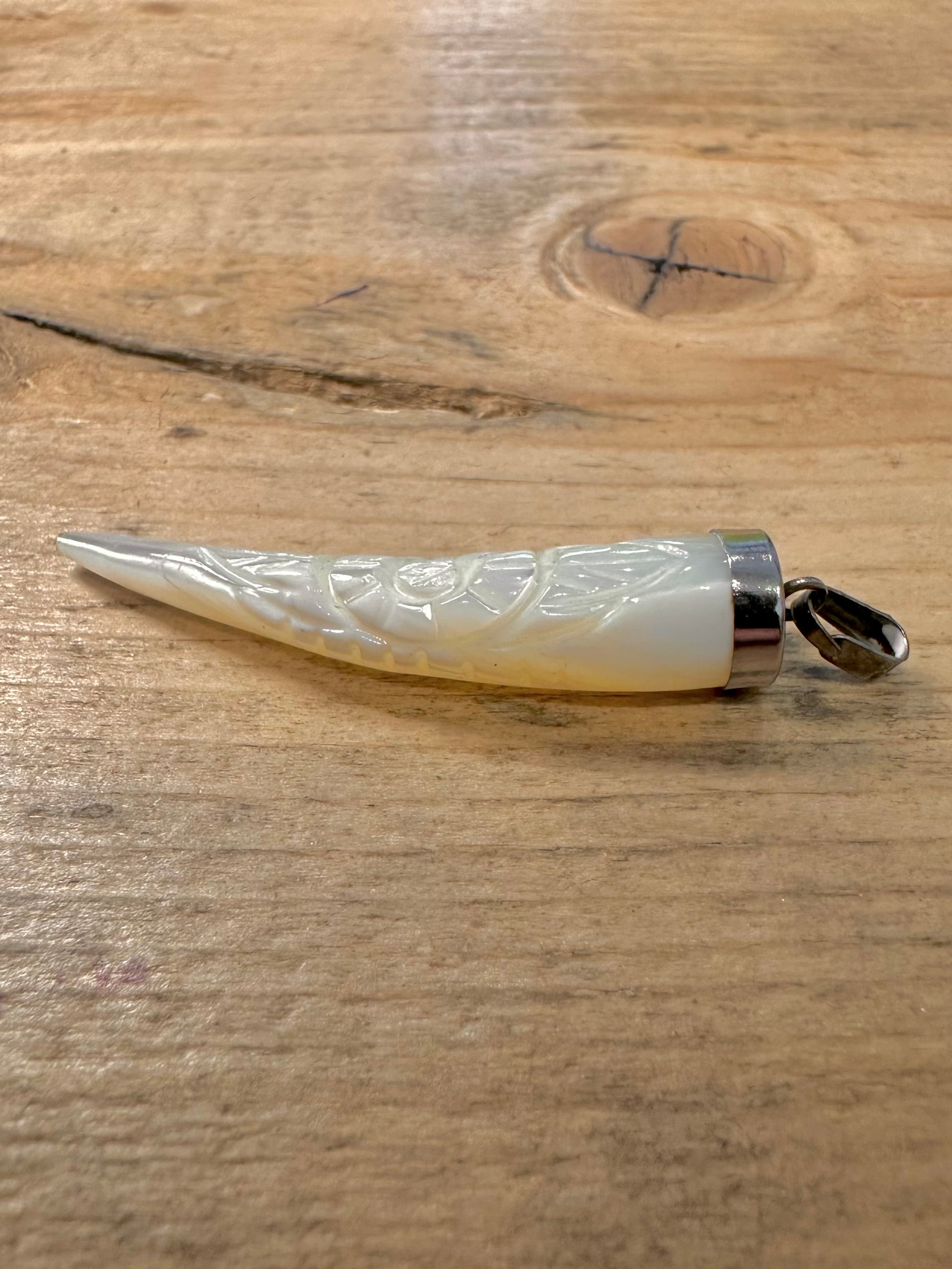 Vintage Mother of Pearl Engraved Horn 925 Silver Pendant