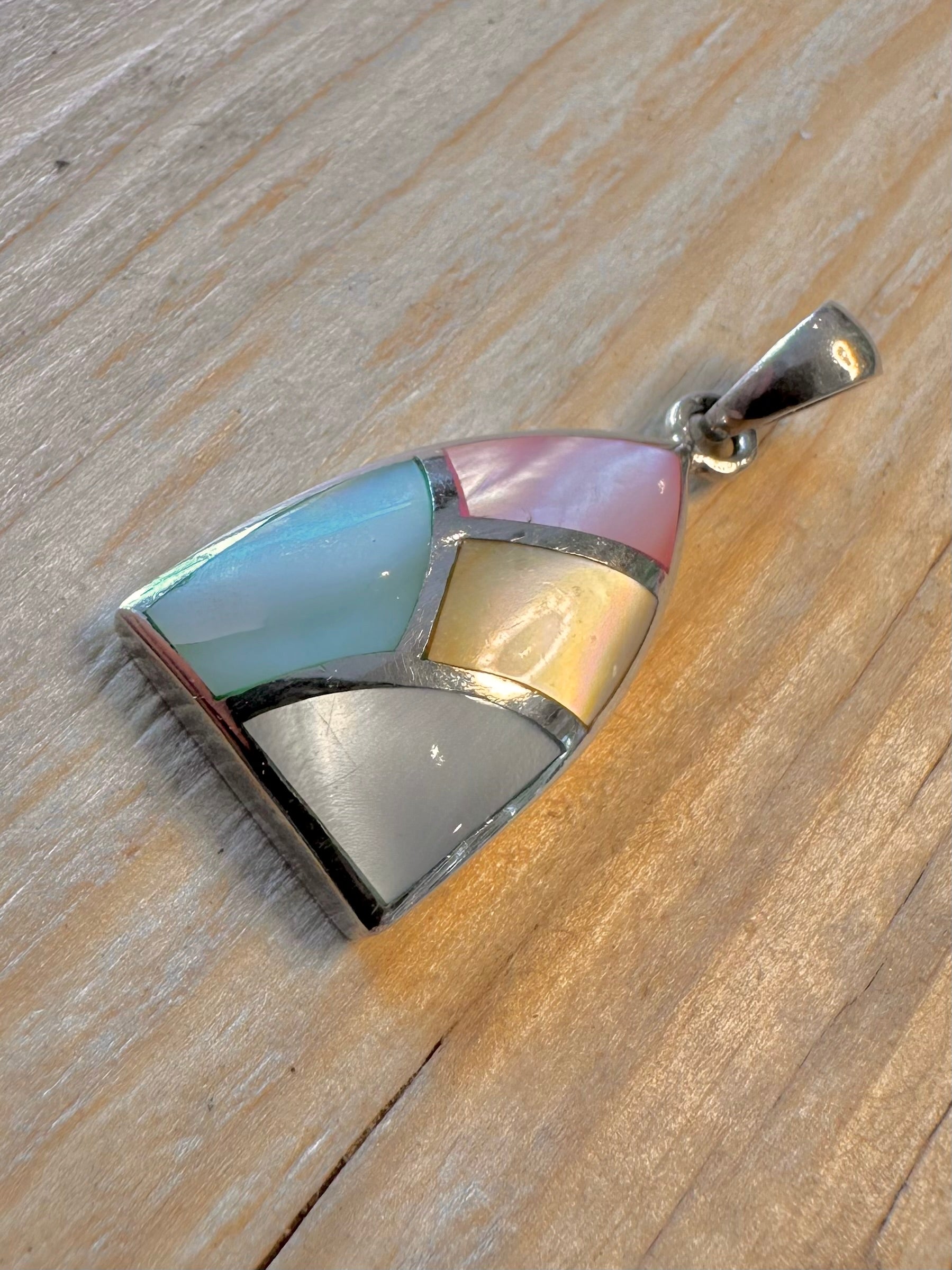 Vintage Multi Coloured Mother of Pearl 925 Silver Pendant