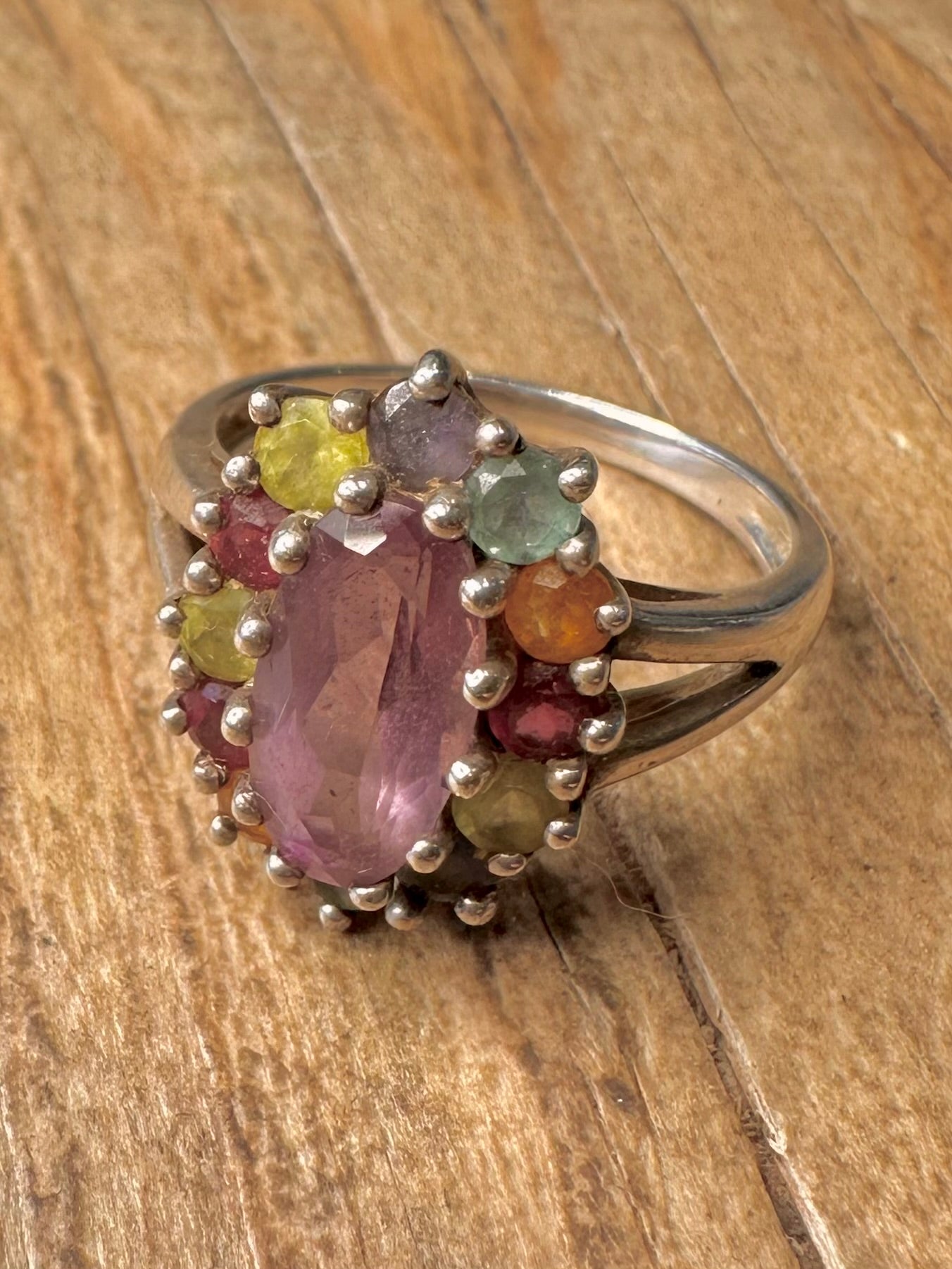 Vintage Multi Gemstone Cluster 925 Sterling Silver Size S Ring