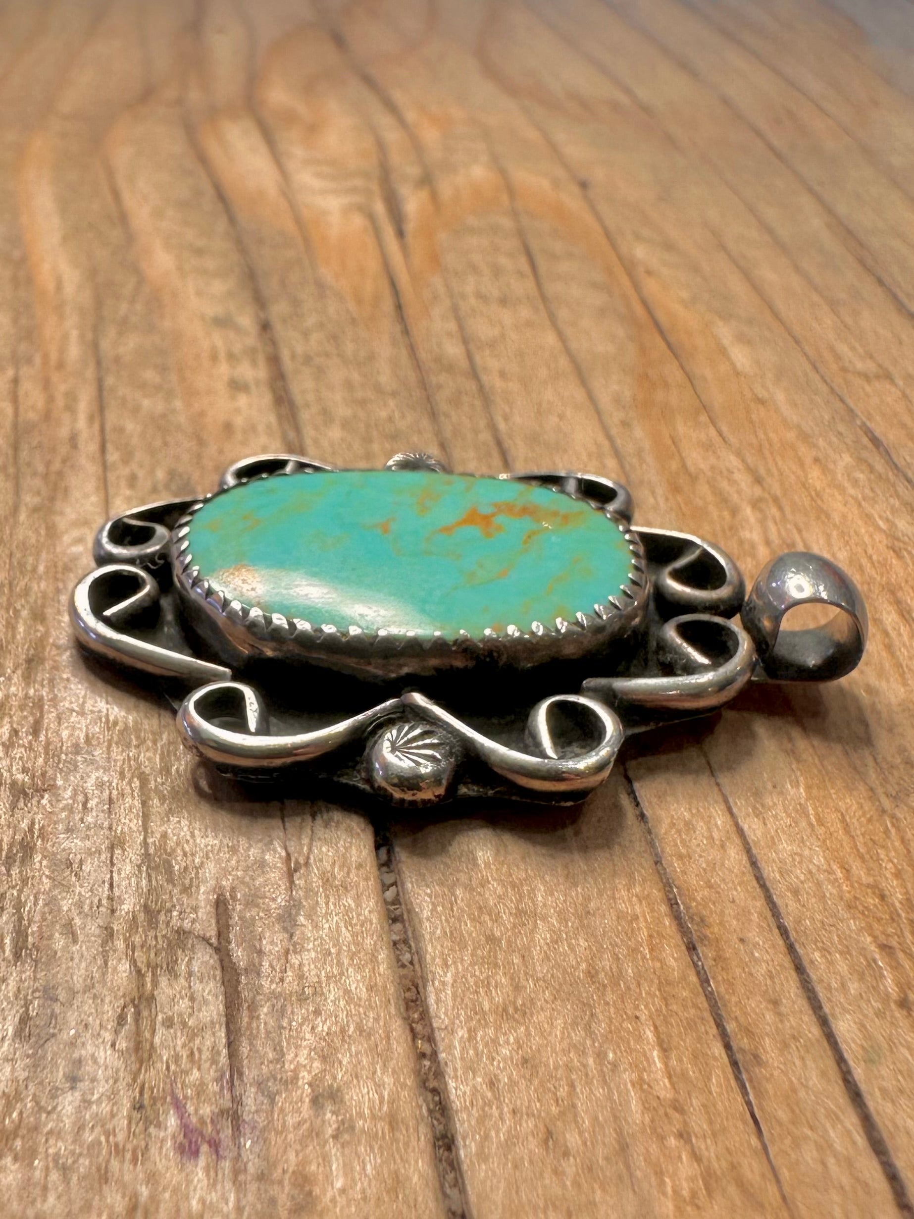 Vintage Navajo Polished Turquoise 925 Sterling Silver Pendant