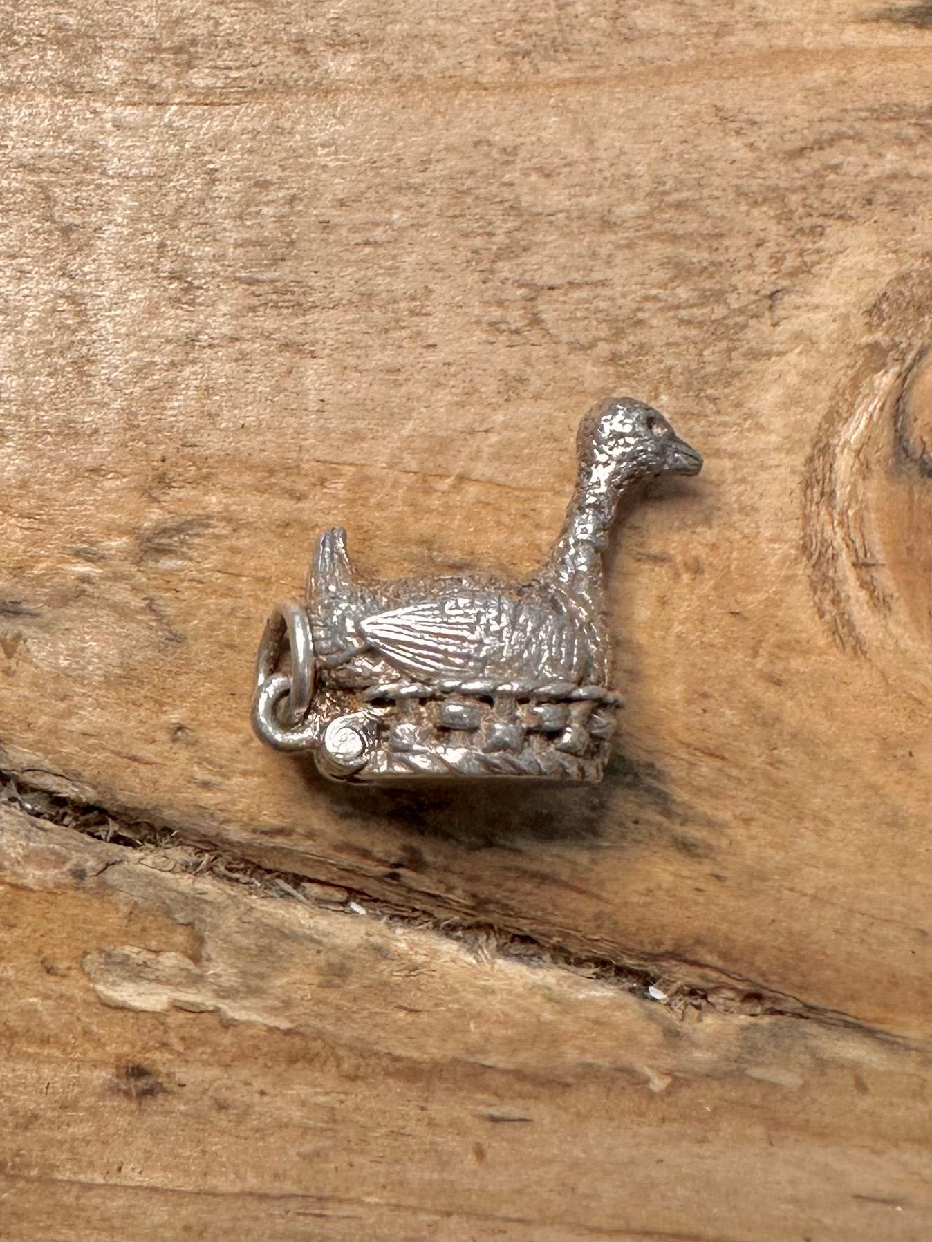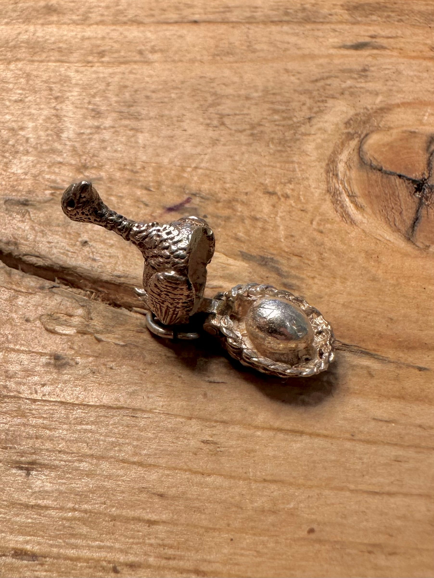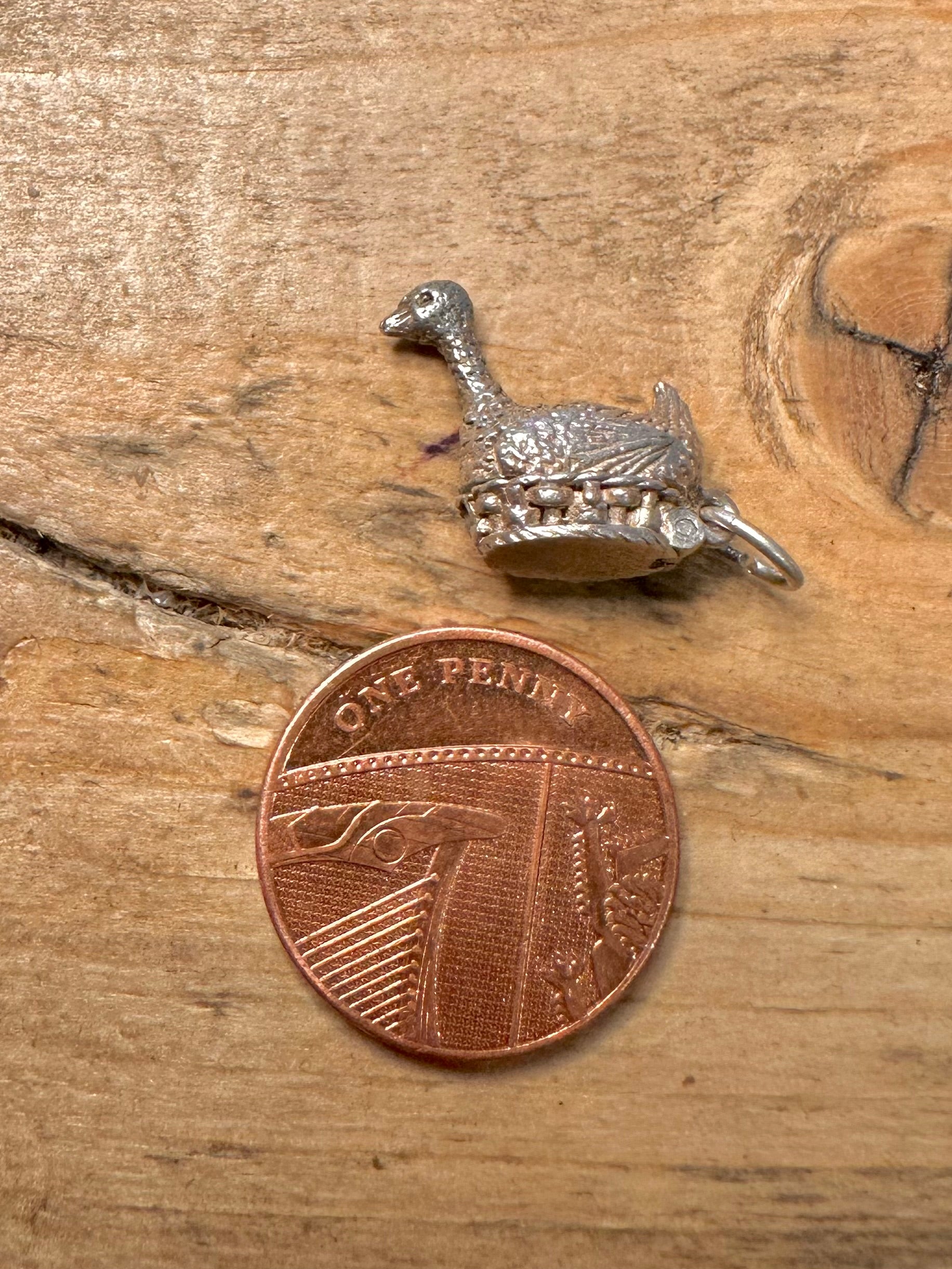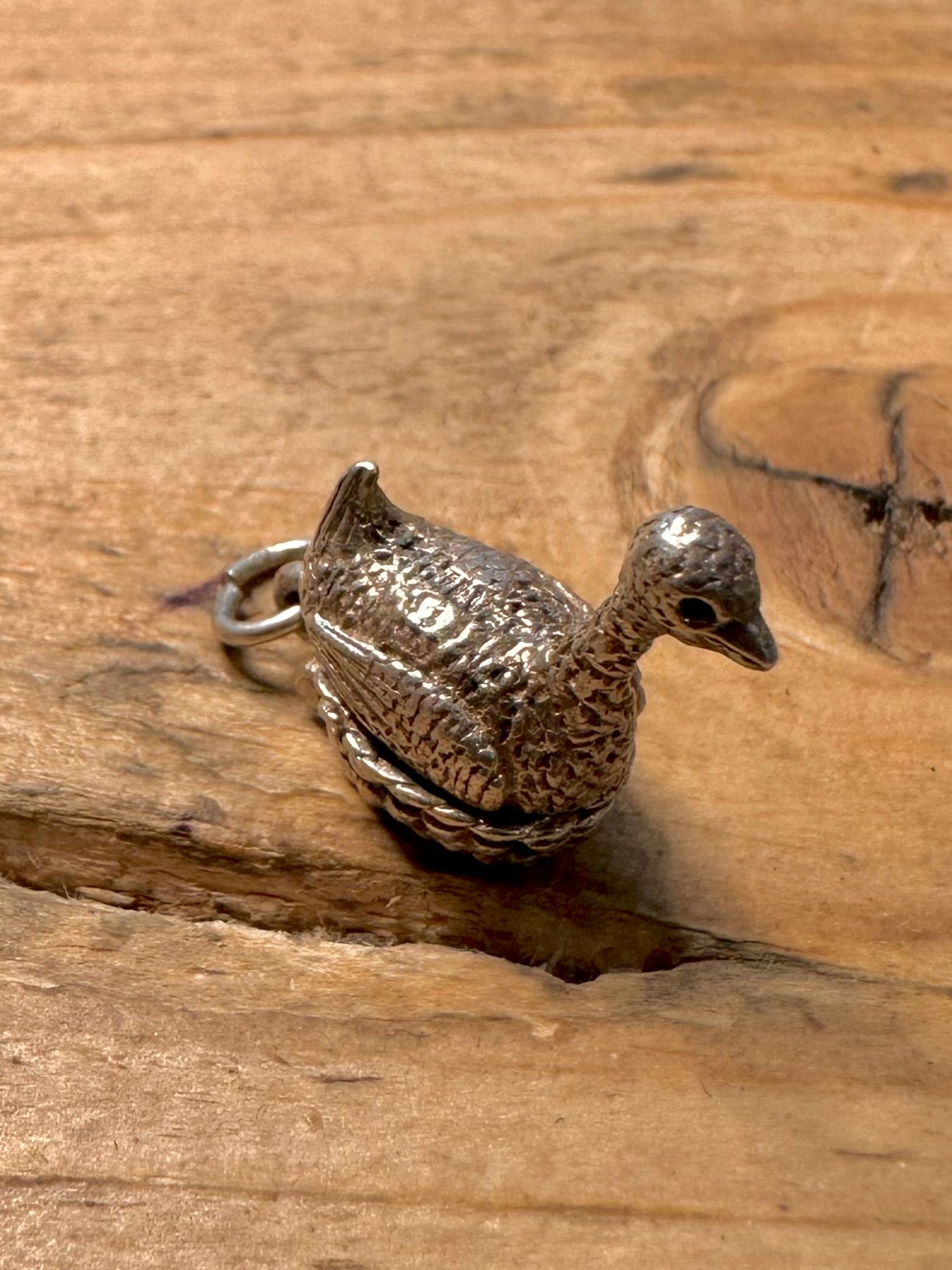 Vintage Nesting Geese Articulated 925 Silver Charm Pendant