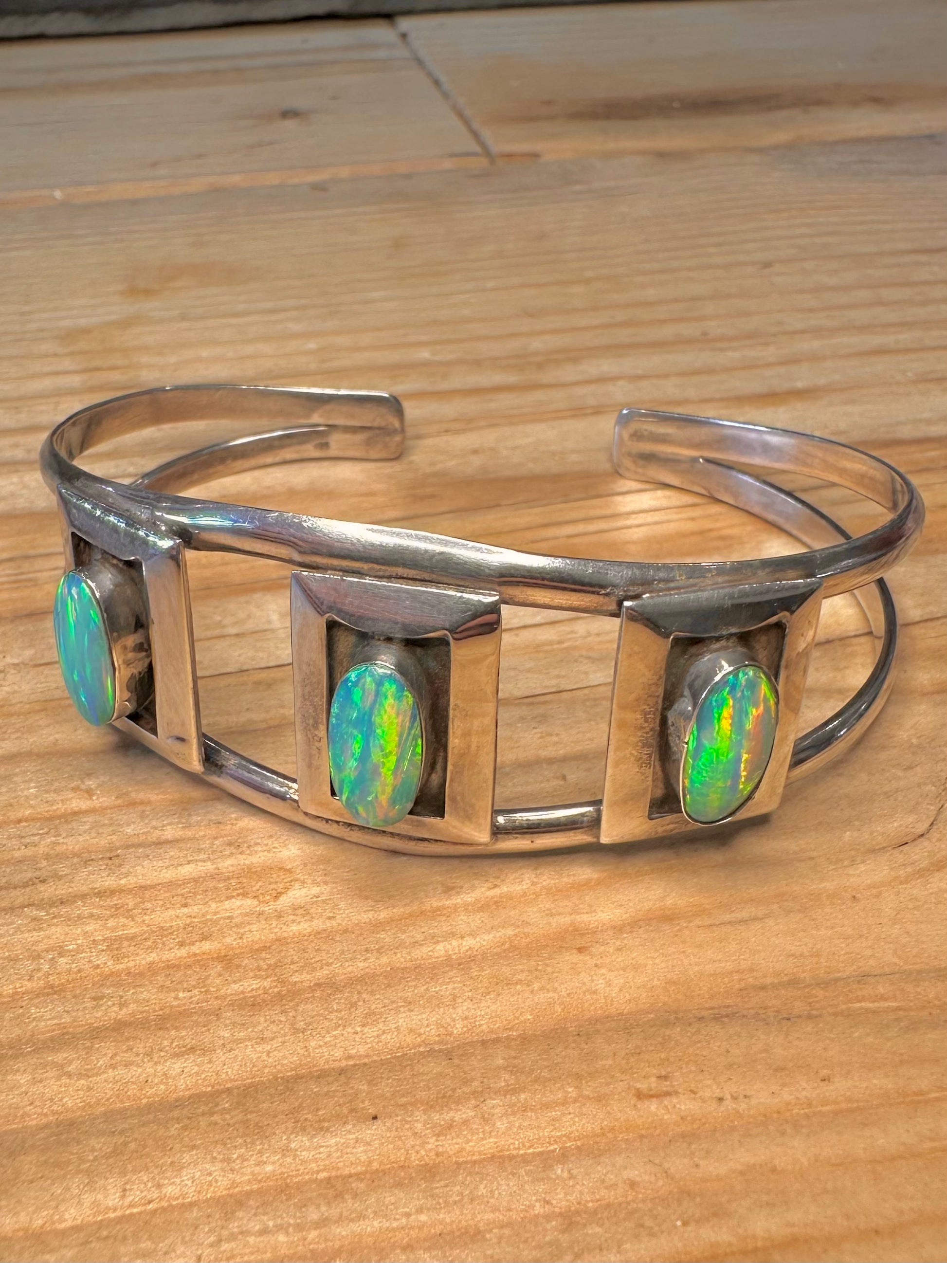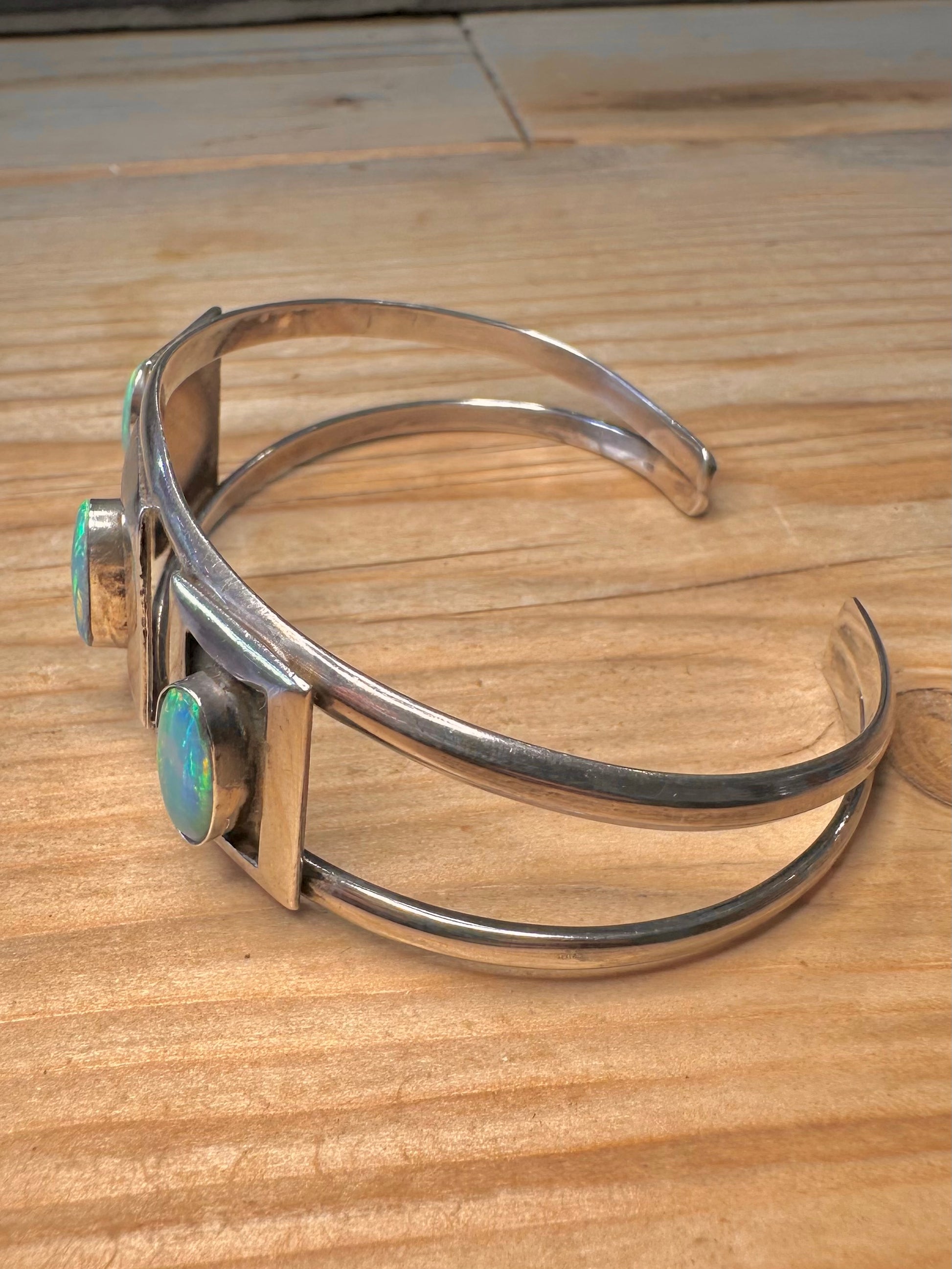Vintage Opal 925 Sterling Silver Cuff Bangle