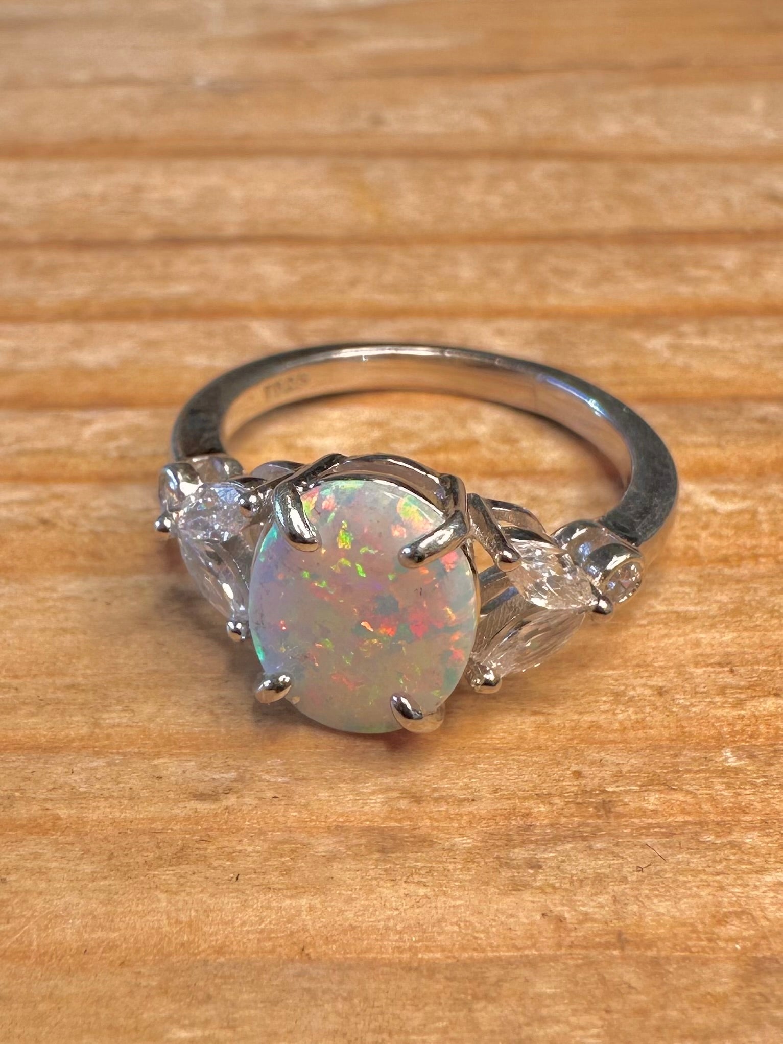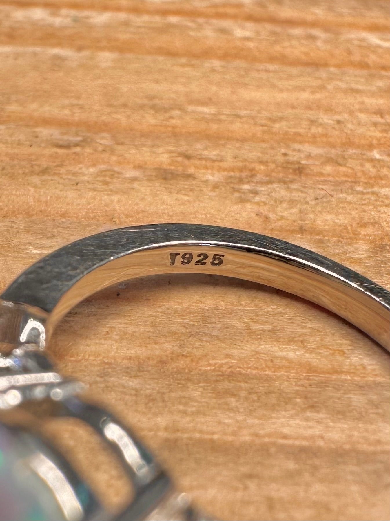 Vintage Opal and White CZ 925 Sterling Silver Size I Ring