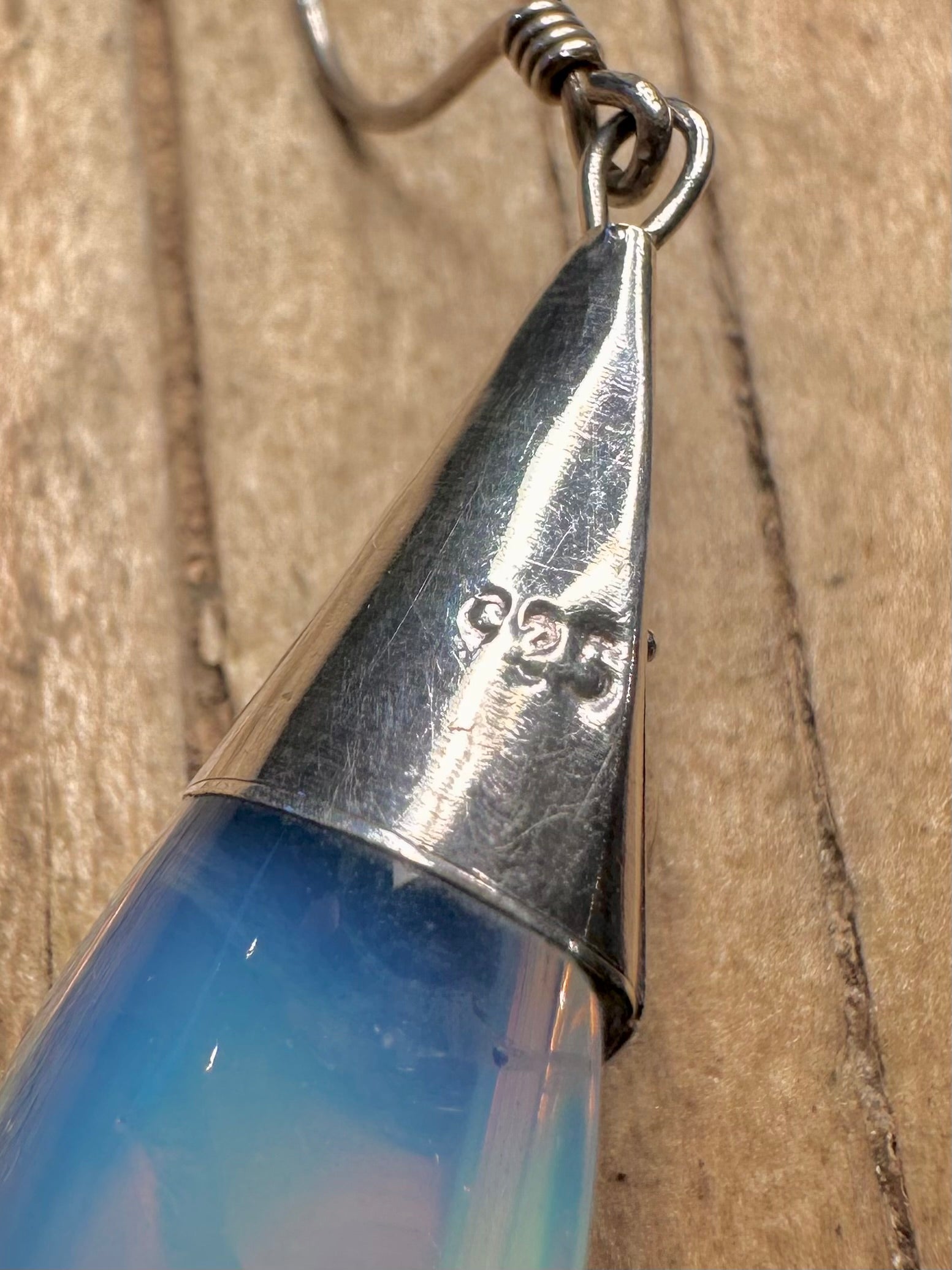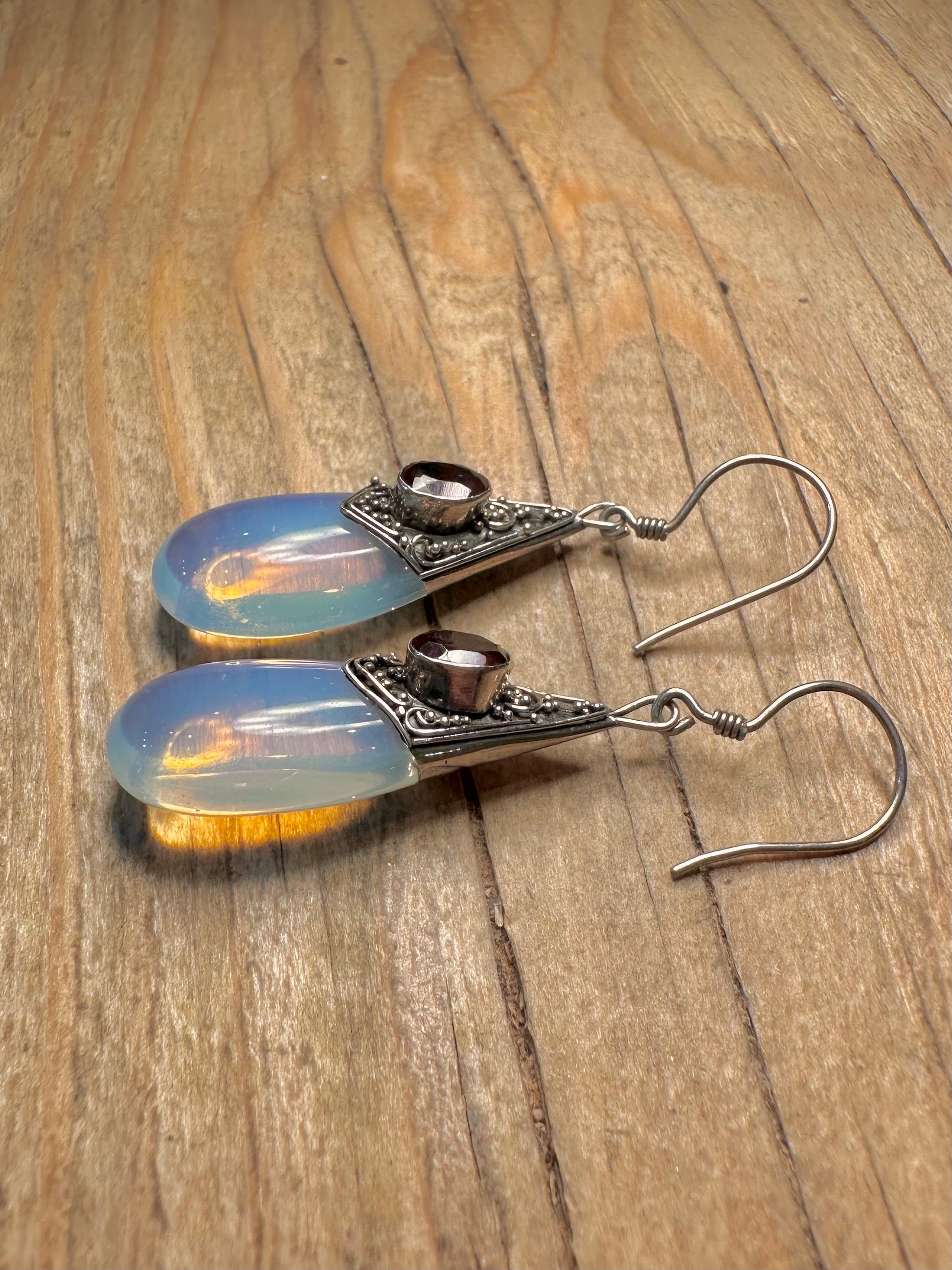 Vintage Opalite and Garnet 925 Sterling Silver Earrings