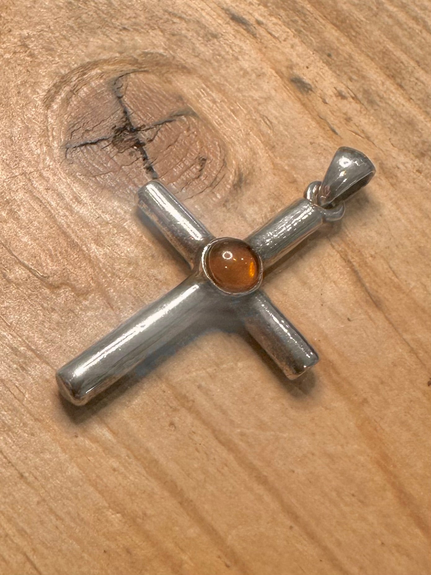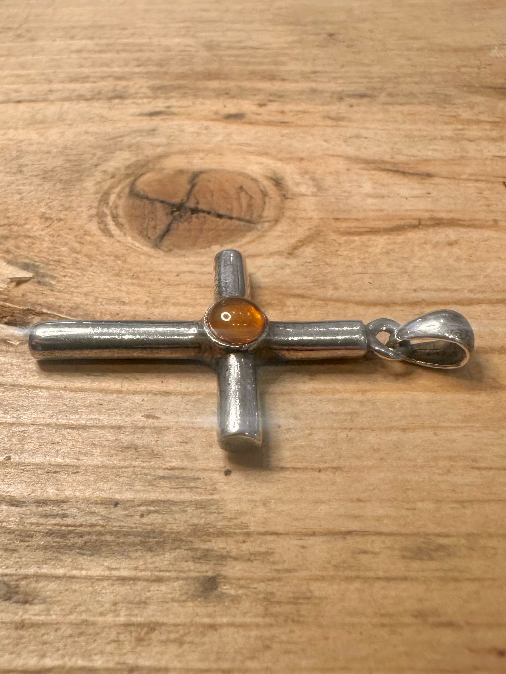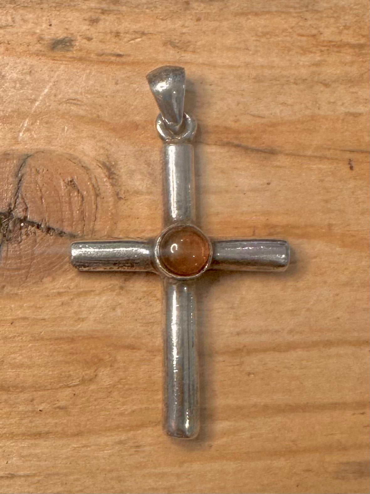 Vintage Orange Stone Cross 925 Silver Pendant